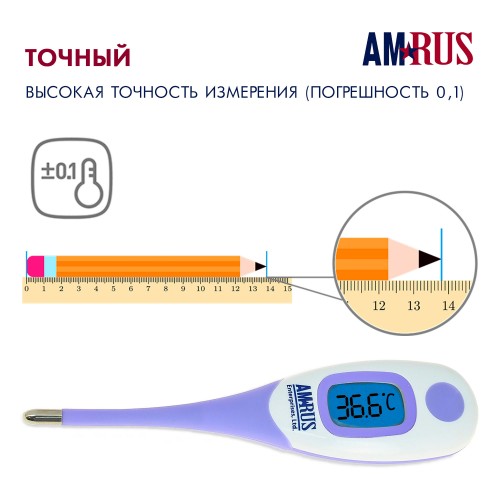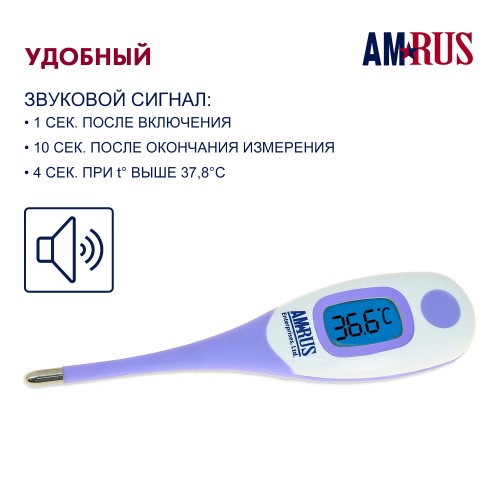 Термометр медицинский цифровой AMDT13 оснащен большим дисплеем с особо крупными, легко читаемыми символами, и стеклом специальной формы для удобства считывания показаний.
