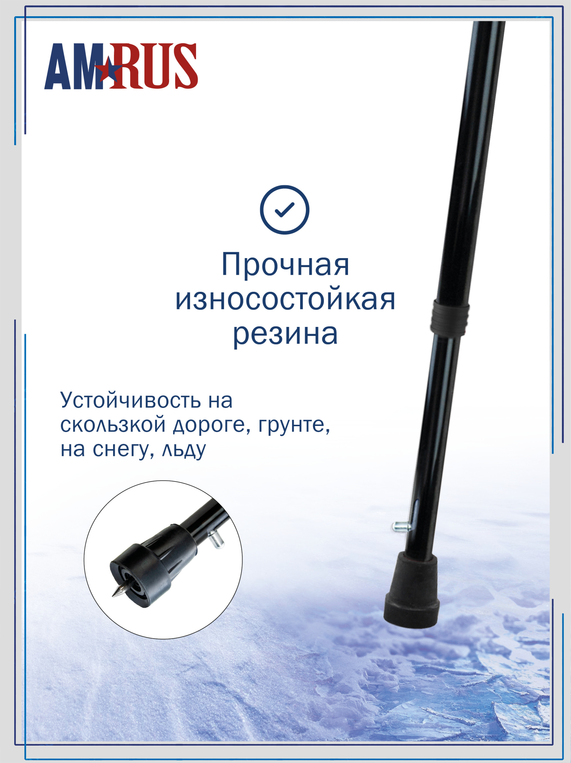 Наконечник c отверстием для тростей AMRUS, имеющим встроенное устройство против скольжения (модели AMCT 23, AMCC 33).