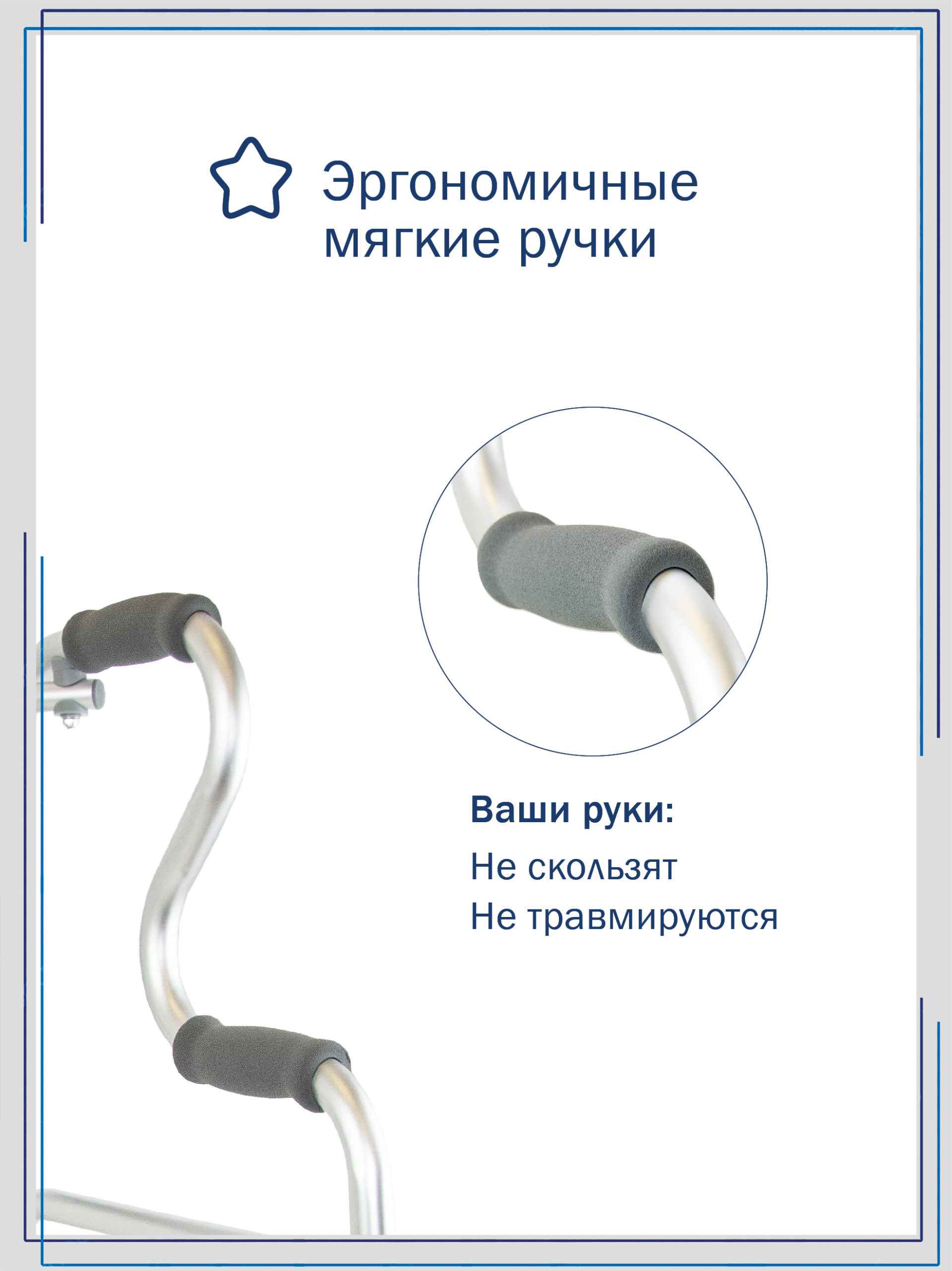 Двухуровневые шагающие ходунки с шарнирным механизмом позволяют передвигаться шагом, переставляя при этом то левую, то правую сторону ходунка в соответствии с движением ног. Такой эргономичный перенос центра тяжести поочерёдно с одной стороны на другую соответствует алгоритму перемещения здорового человека и стимулирует процесс реабилитации. Два уровня опоры облегчают процесс приседания и вставания с постели, стула или санитарного приспособления. Модель может работать как в «обычном» режиме, так и в режиме «шага».
