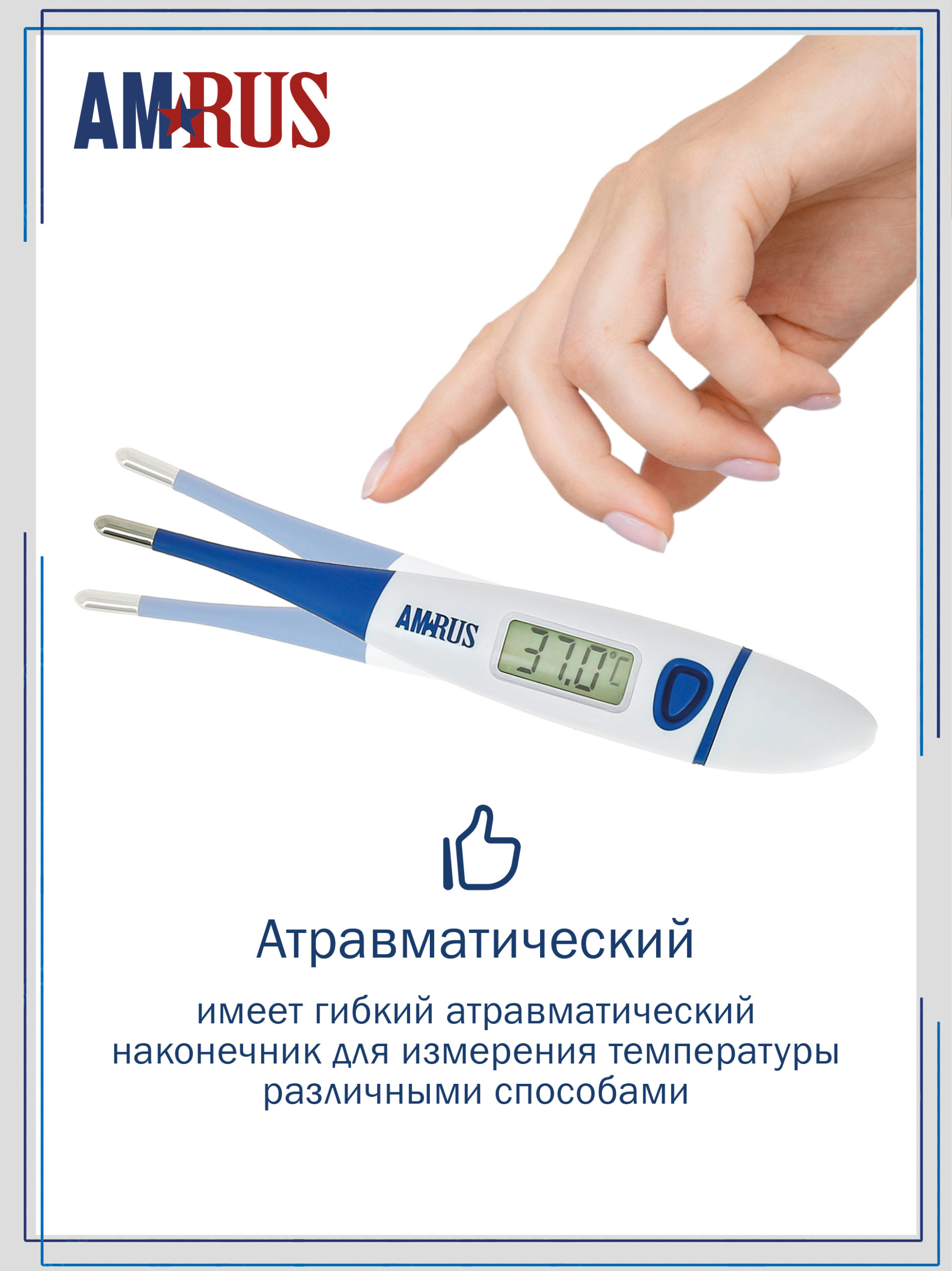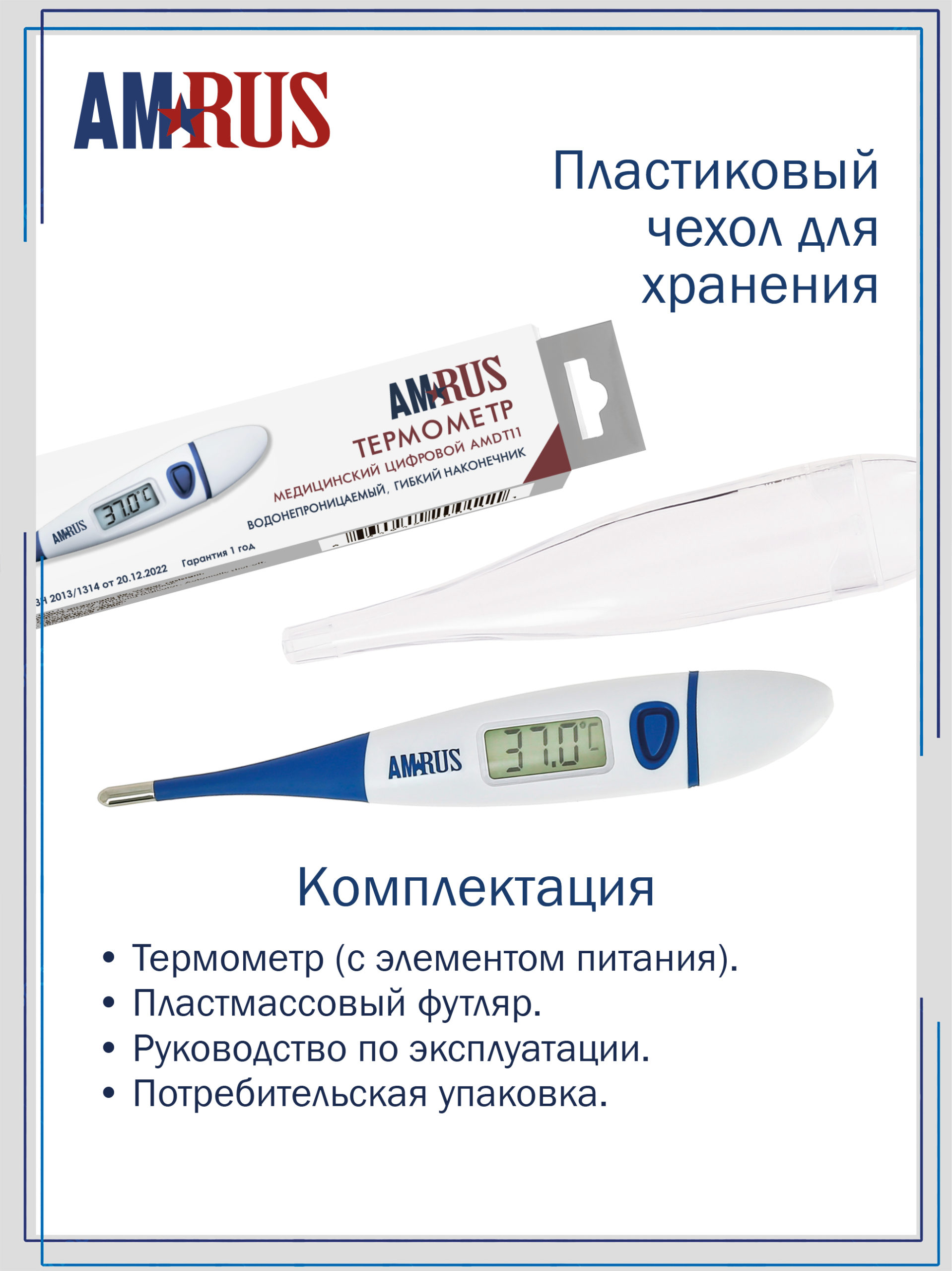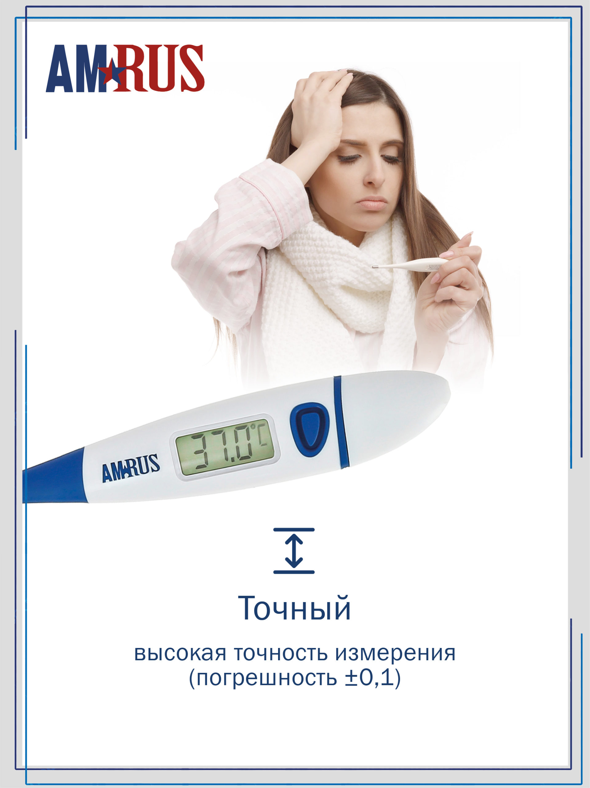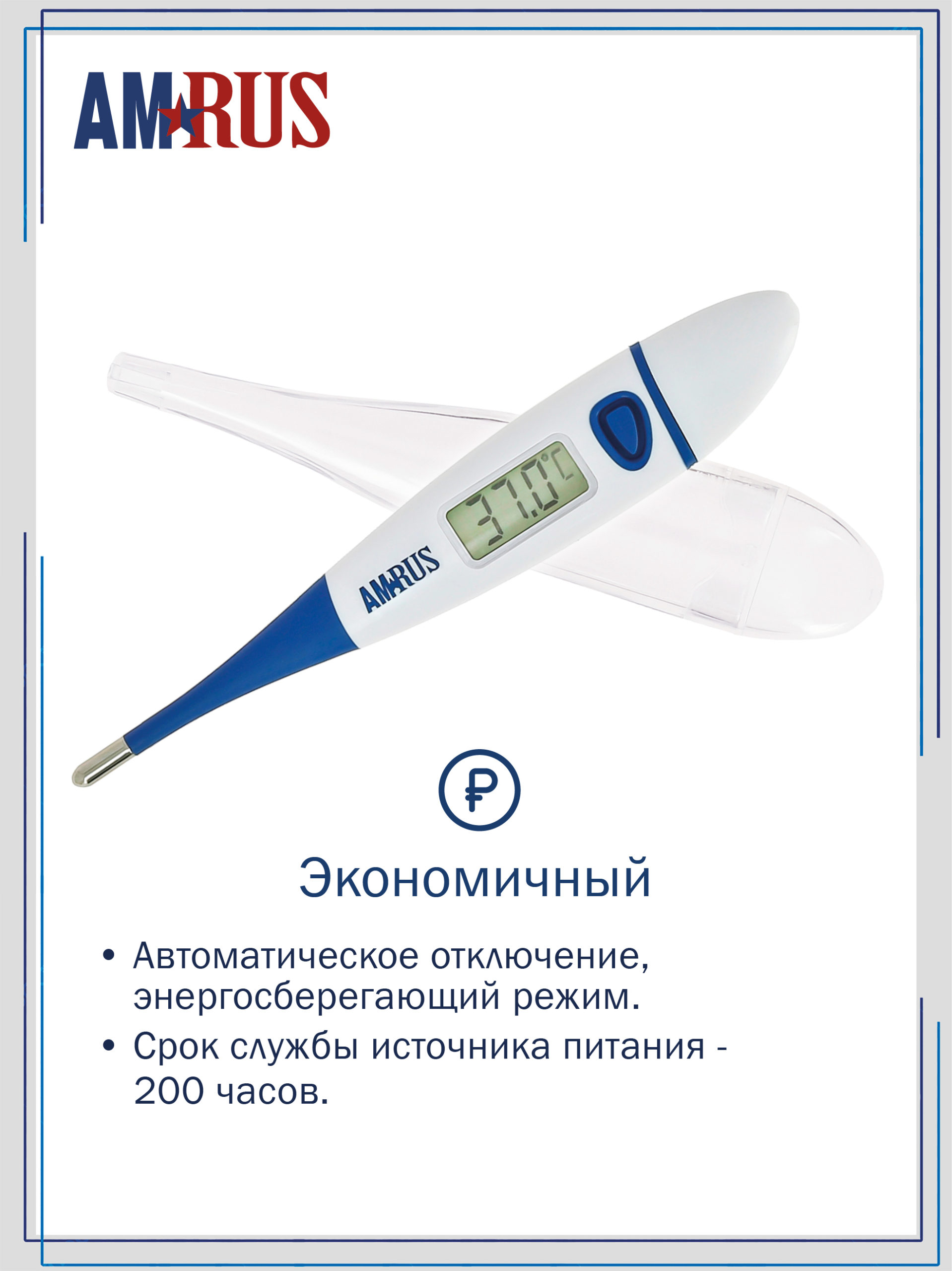 Термометр медицинский цифровой AMDT11 оснащен большим дисплеем с крупными легко читаемыми символами и стеклом специальной формы для удобства считывания показаний.