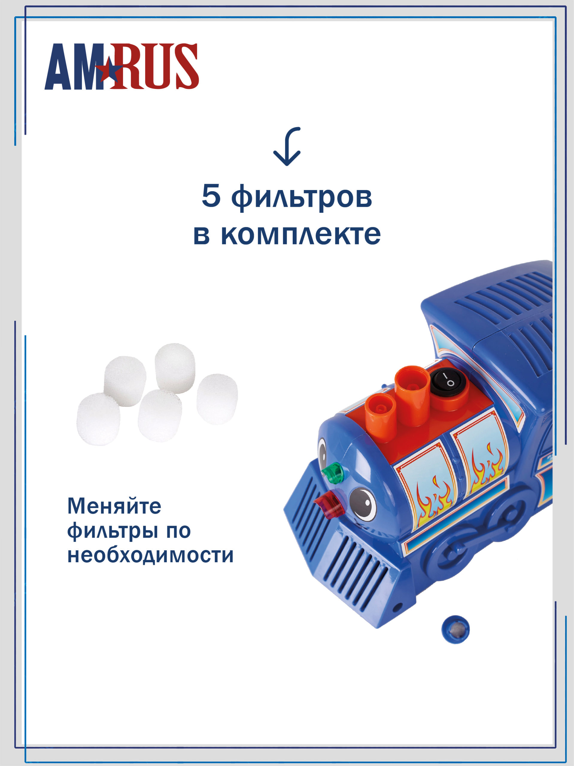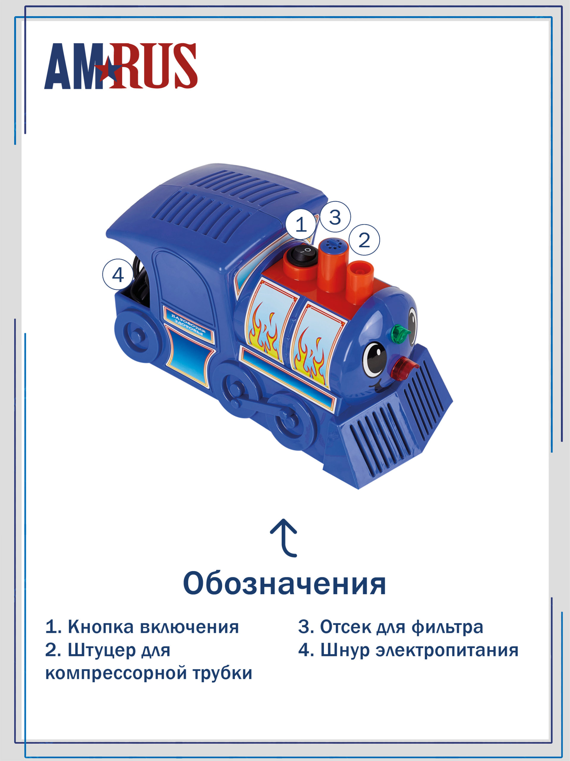 ребенка во время проведения процедуры. Ингалятор-паровозик имеет светящиеся фары. Шнур