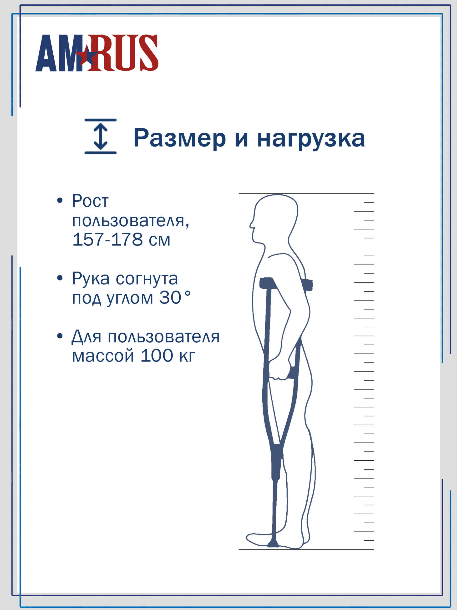 Подмышечные костыли облегчают самостоятельное передвижение и обеспечивают безопасность при ходьбе людям после операций и травм нижних конечностей. Костыли перераспределяют нагрузку с нижних конечностей и повышают устойчивость при ходьбе во время реабилитации. Костыль рассчитан на массу пользователя 100 кг.