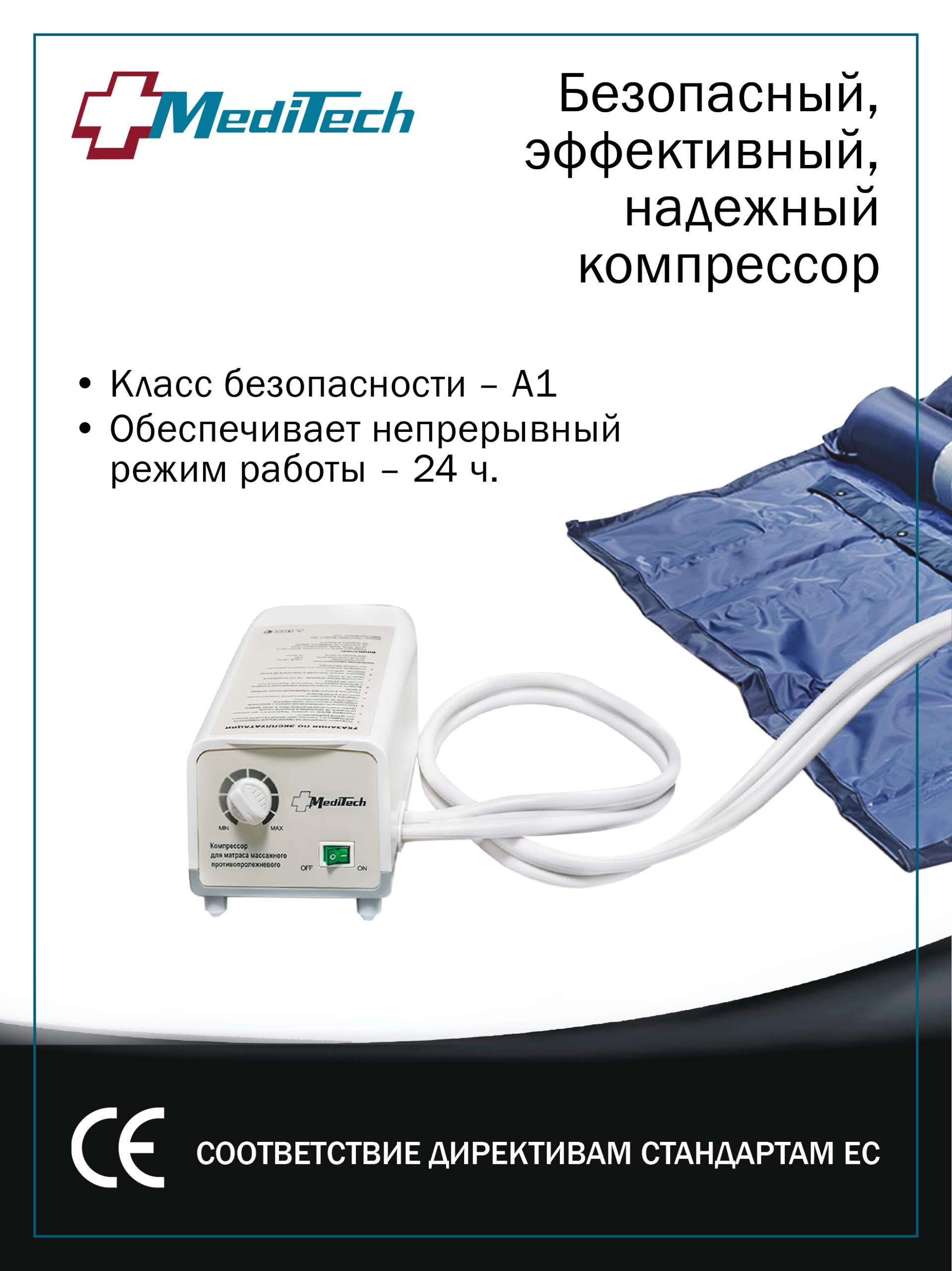 Время цикла (сдувание/надувание ячеек) – 12 минут. Изделие соответствует обязательным требованиям к безопасности, принятым в Едином Европейском Союзе.