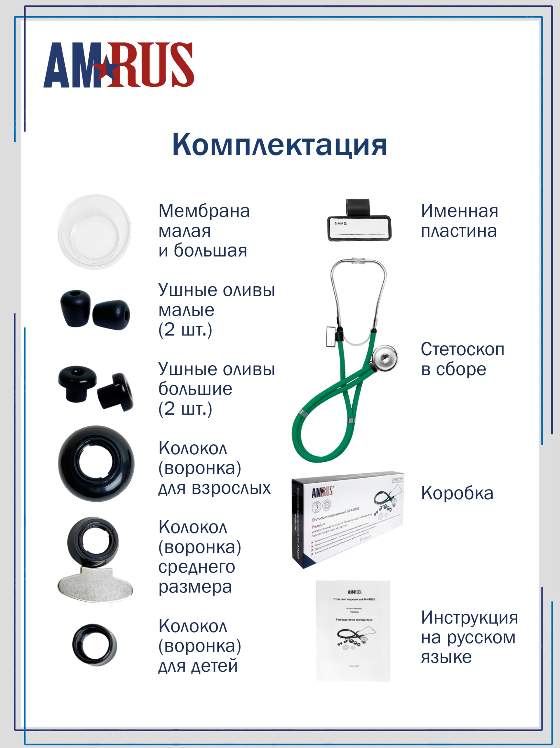 04AM-602_GR AMRUS Стетоскоп медицинский Раппопорта двусторонний