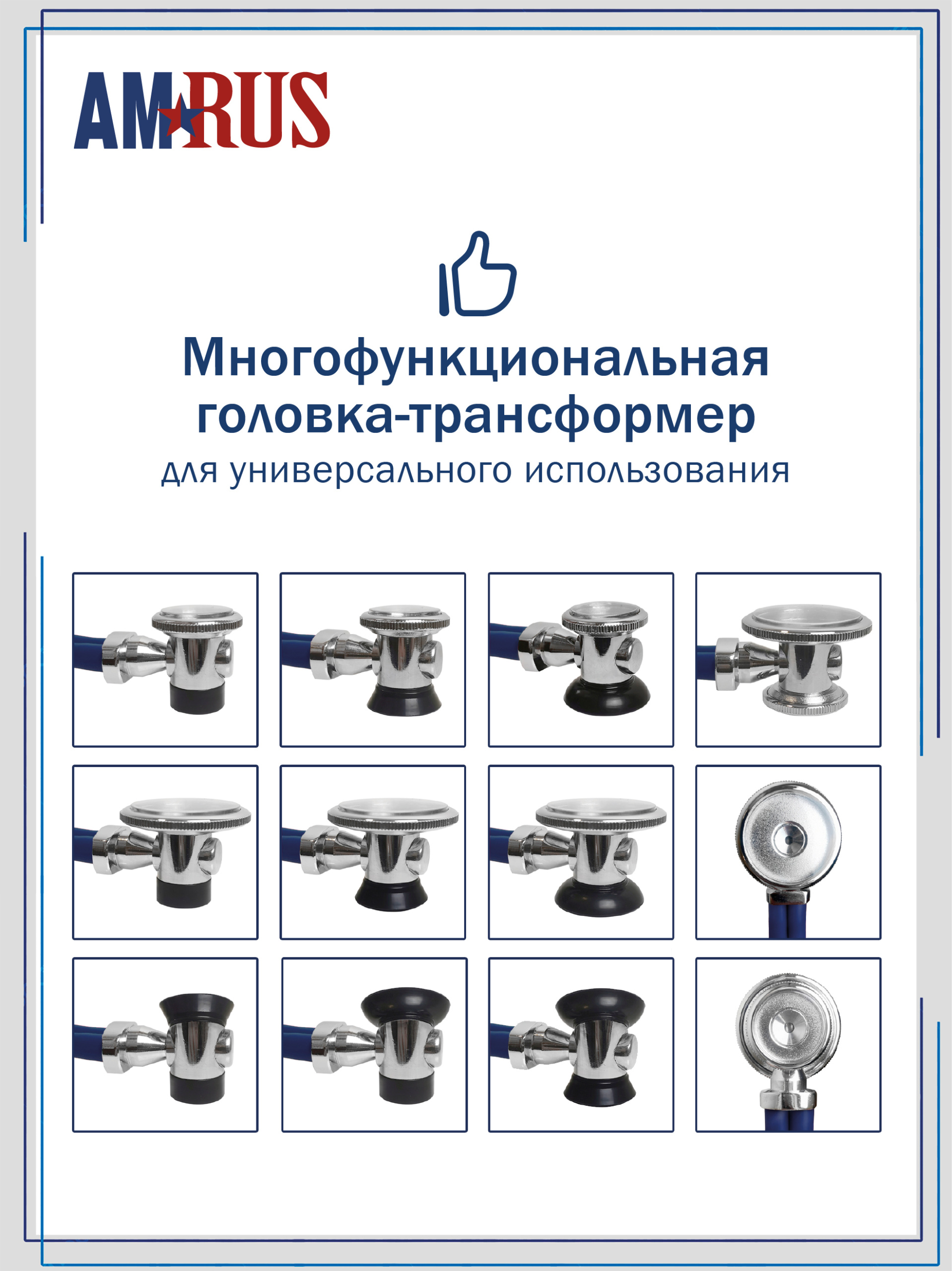 Многофункциональный прибор повышенной чувствительности для прослушивания сердца, легких, сосудов, перистальтики кишечника у детей и у взрослых пациентов. Конструкция двухсторонней вращающейся головки стетоскопа позволяет менять мембраны и воронки разной чувствительности и размера в соответствии с планом обследования и возрастом пациента. Благодаря пяти вариантам рабочей комплектации: большая или малая мембрана, воронка для взрослых, педиатрическая или неонатальная воронка, данный прибор заменяет собой 5 стетоскопов различного назначения.