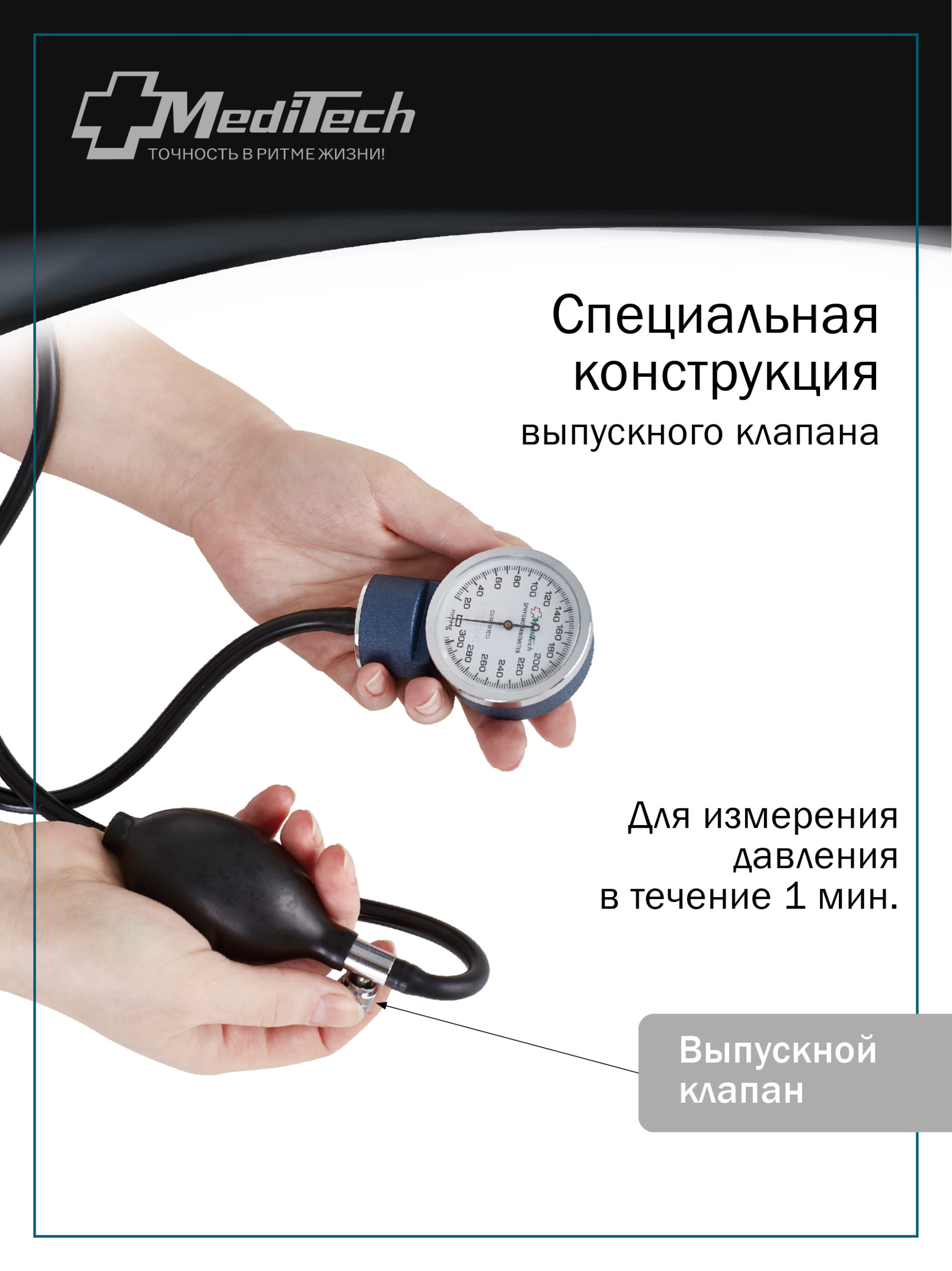 — Специальная конструкция выпускного клапана позволяет измерять давление в течение 1 мин.,
