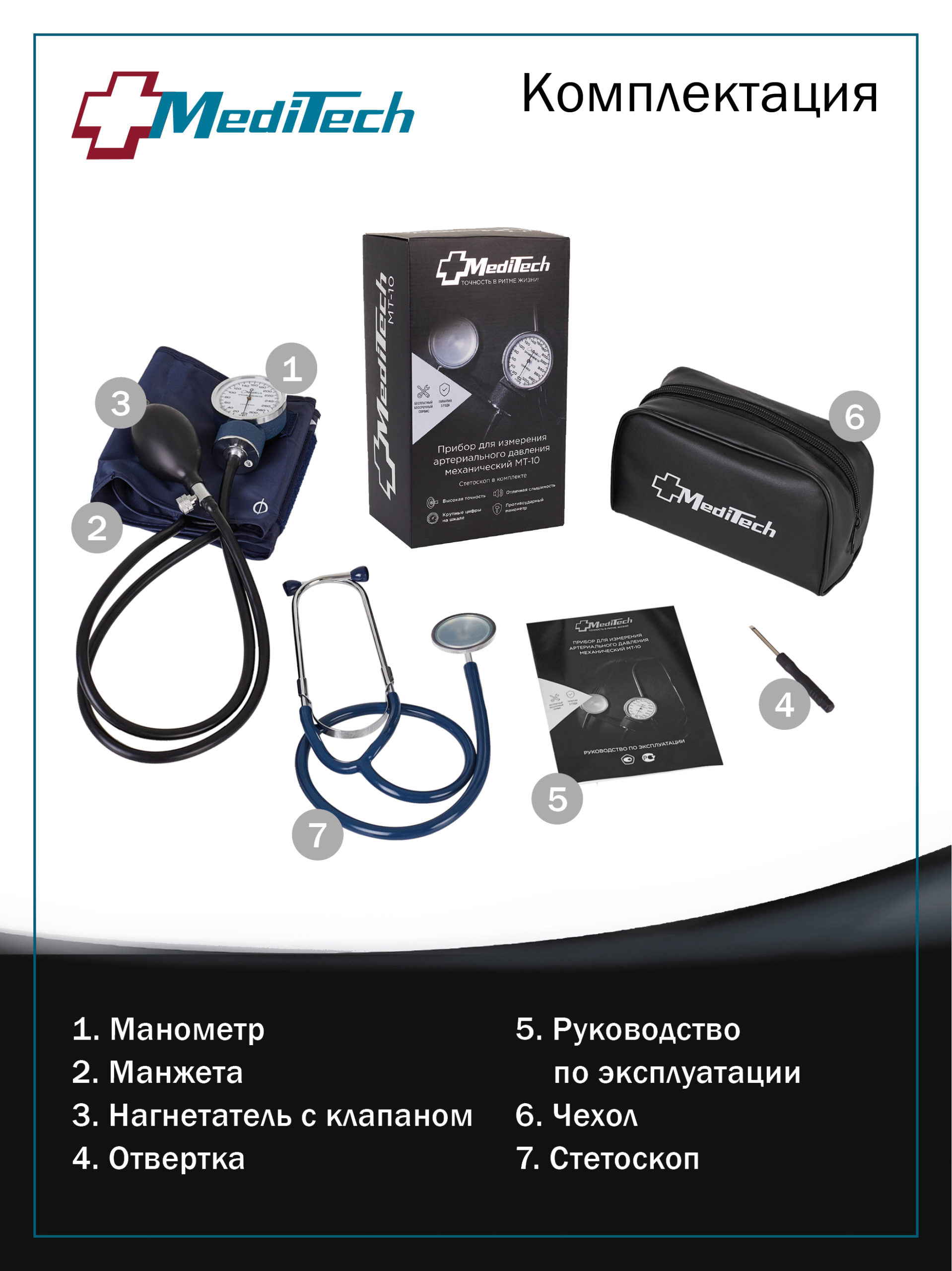 Механический тонометр МТ-10 со стетоскопом предназначен для измерения артериального