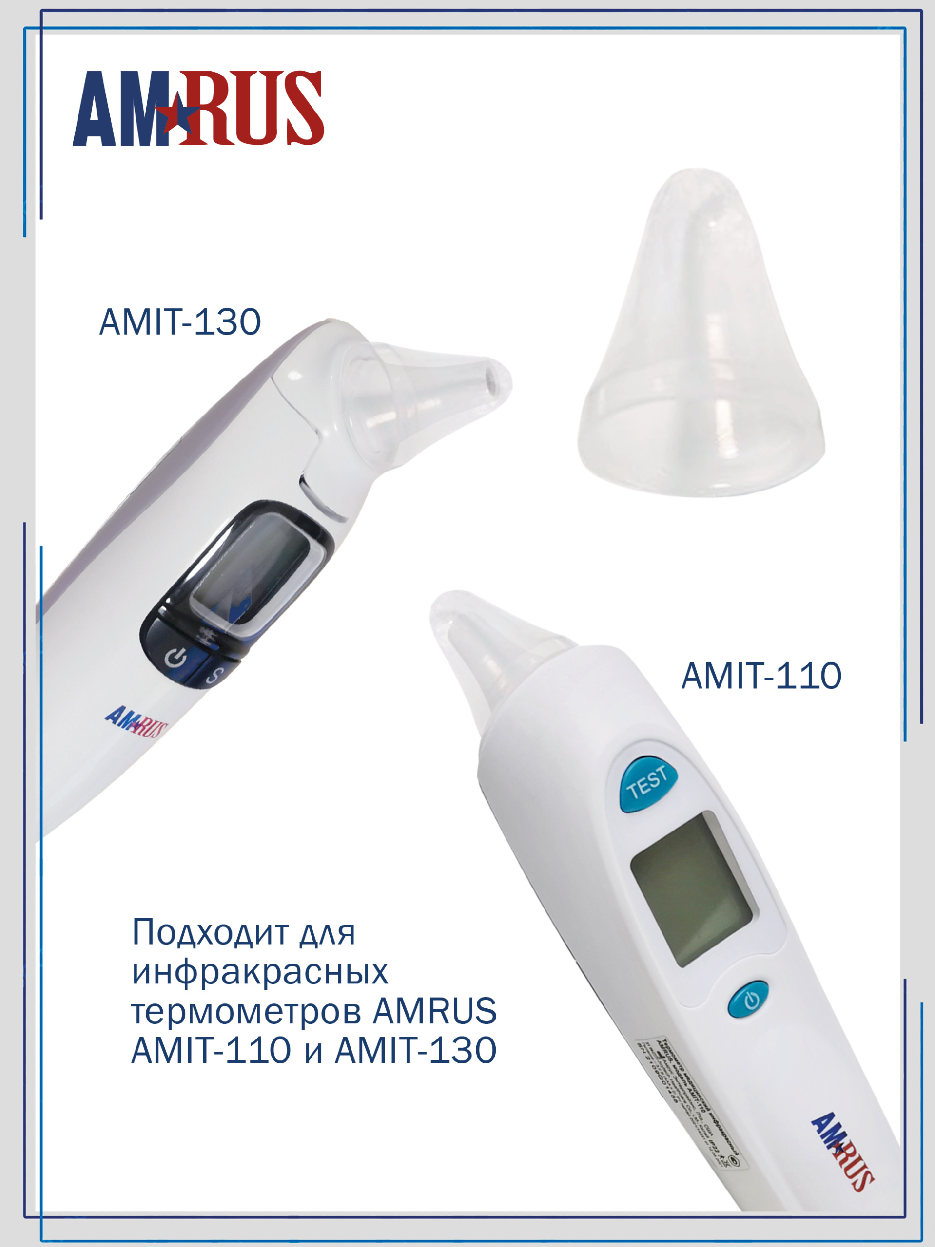 Насадки одноразовые AMIT предназначены для измерения температуры в ухе у детей и взрослых, подходят для инфракрасных термометров AMRUS AMIT-110 и AMIT-130.