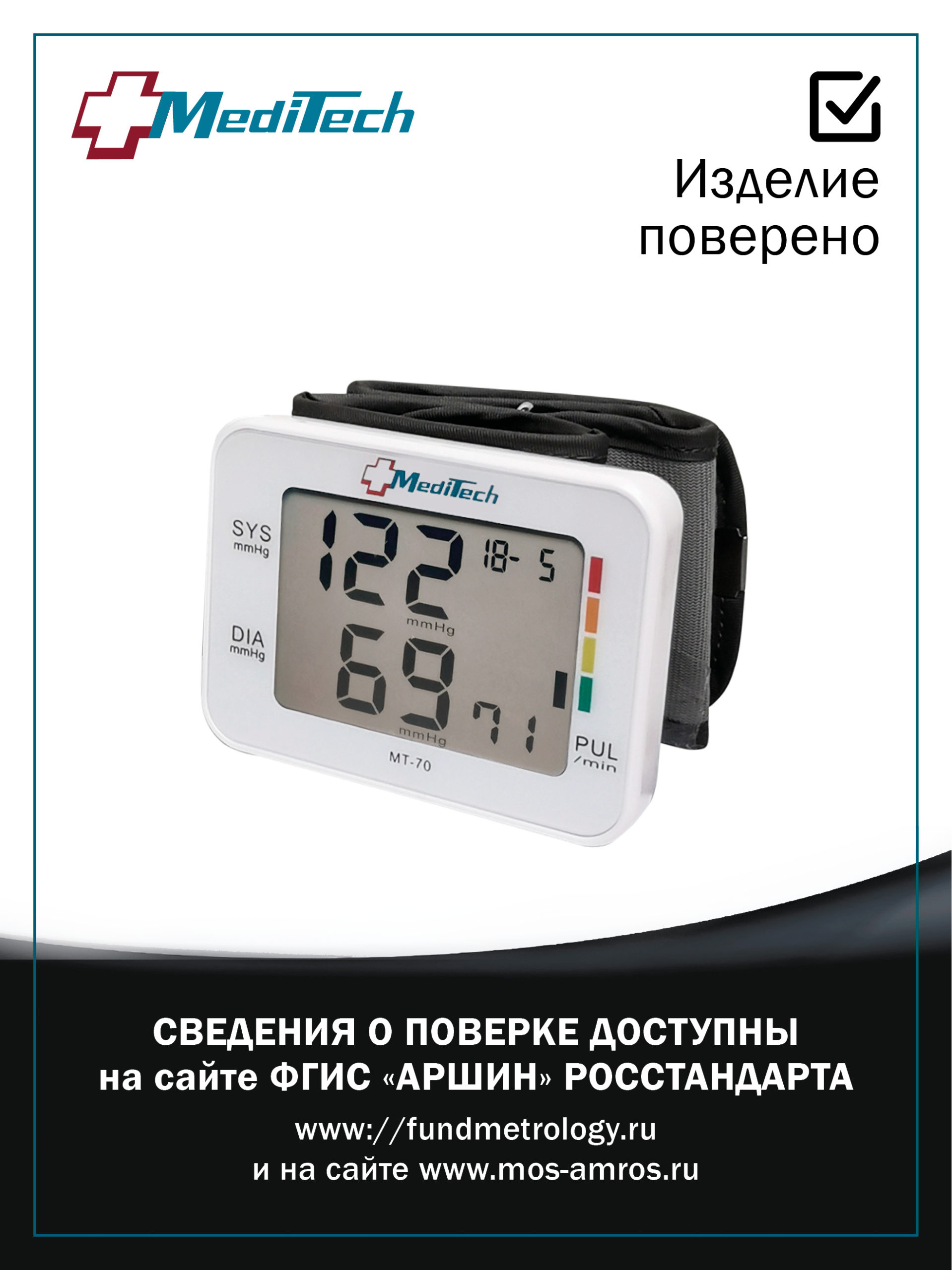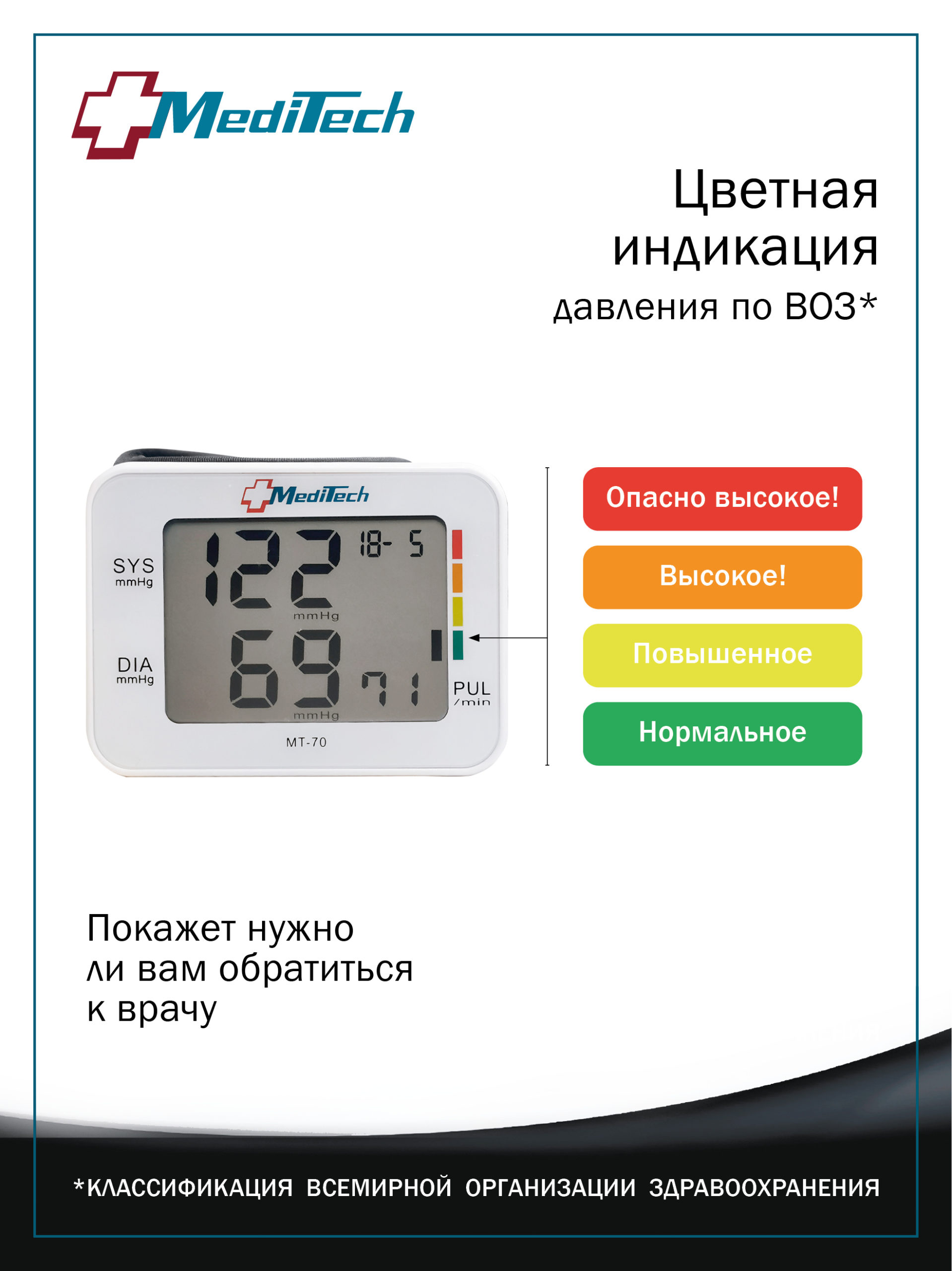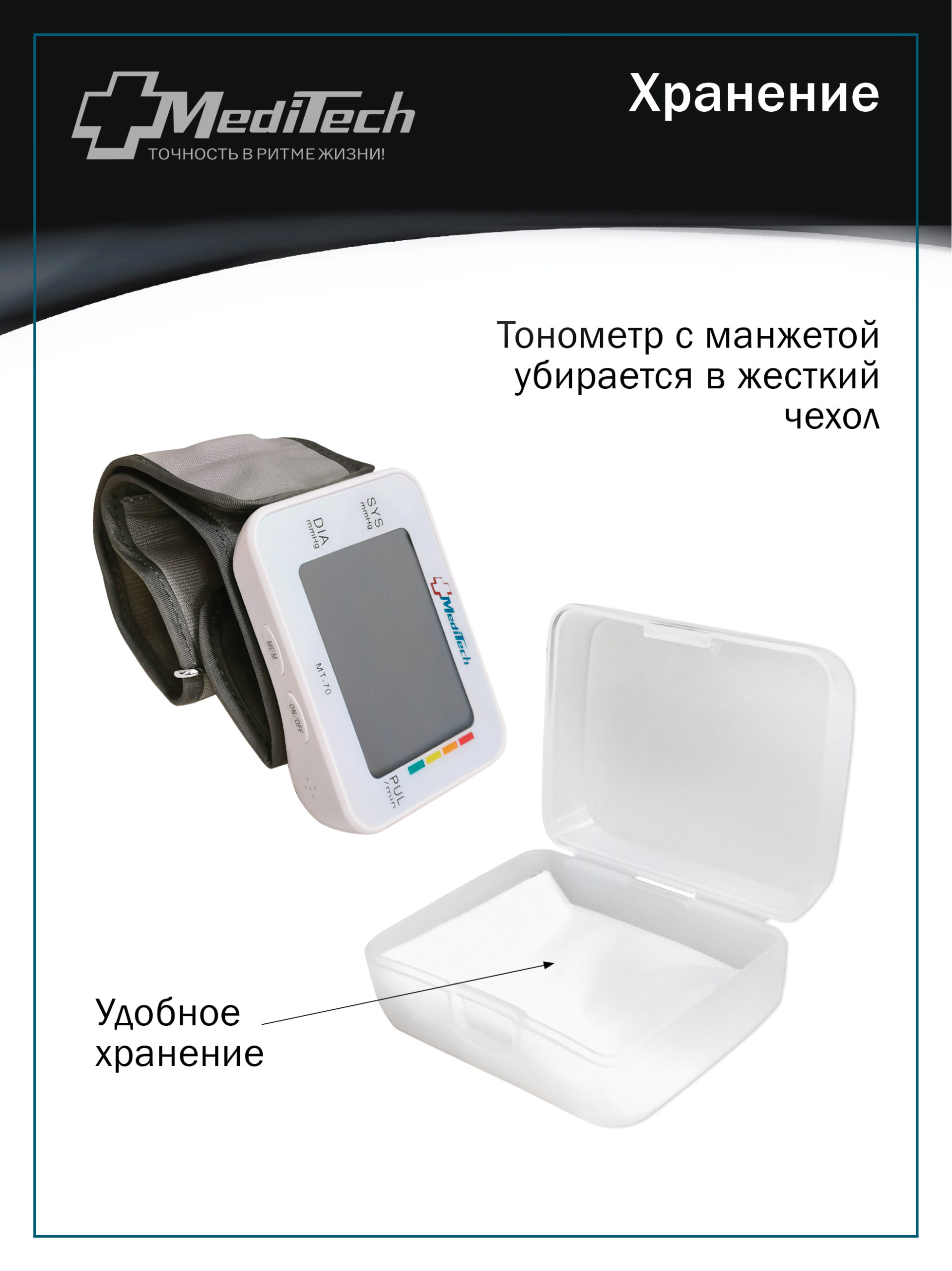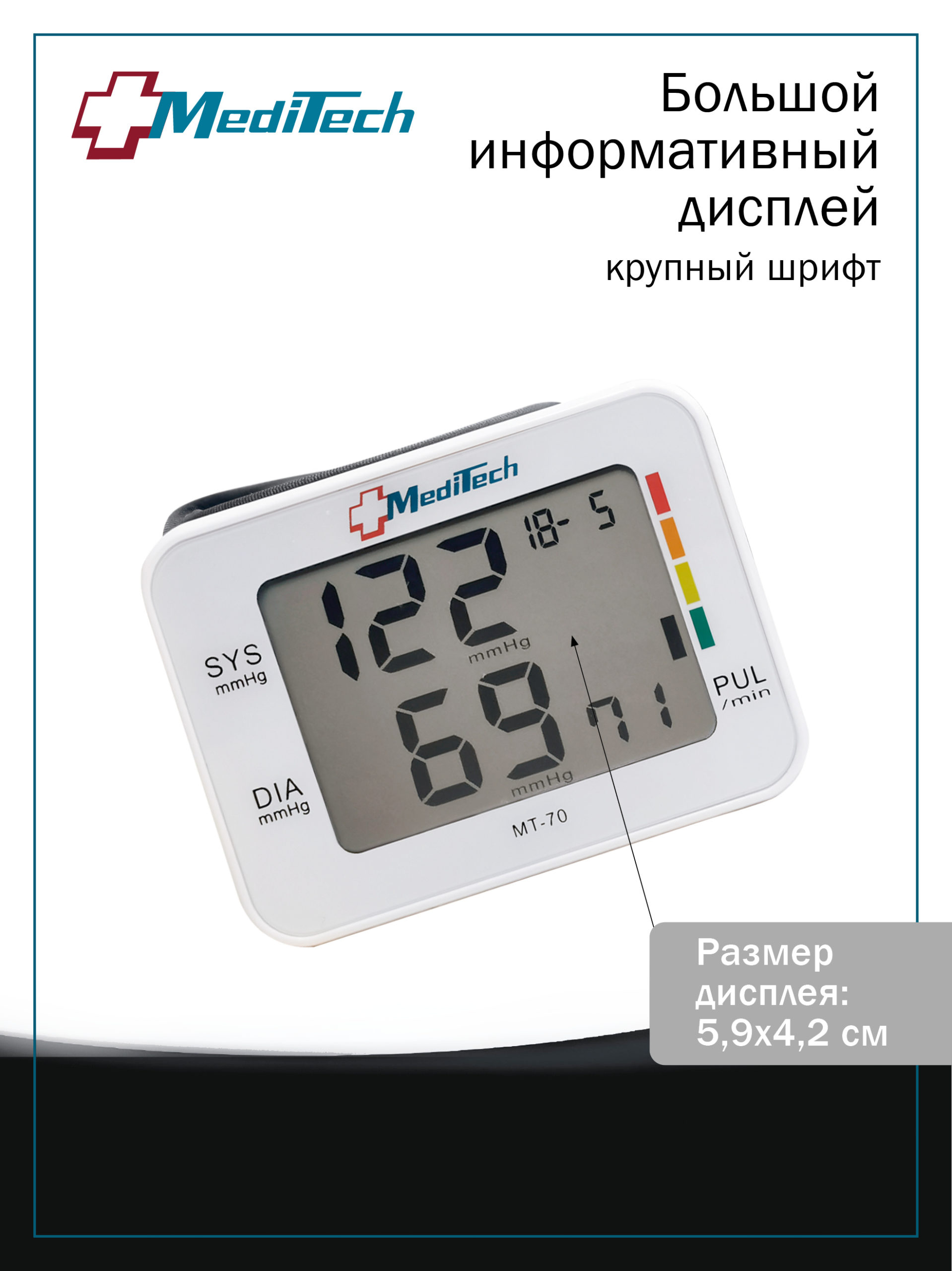 Компактный автоматический тонометр на запястье MediTech МТ-70 серии VISION, с большим