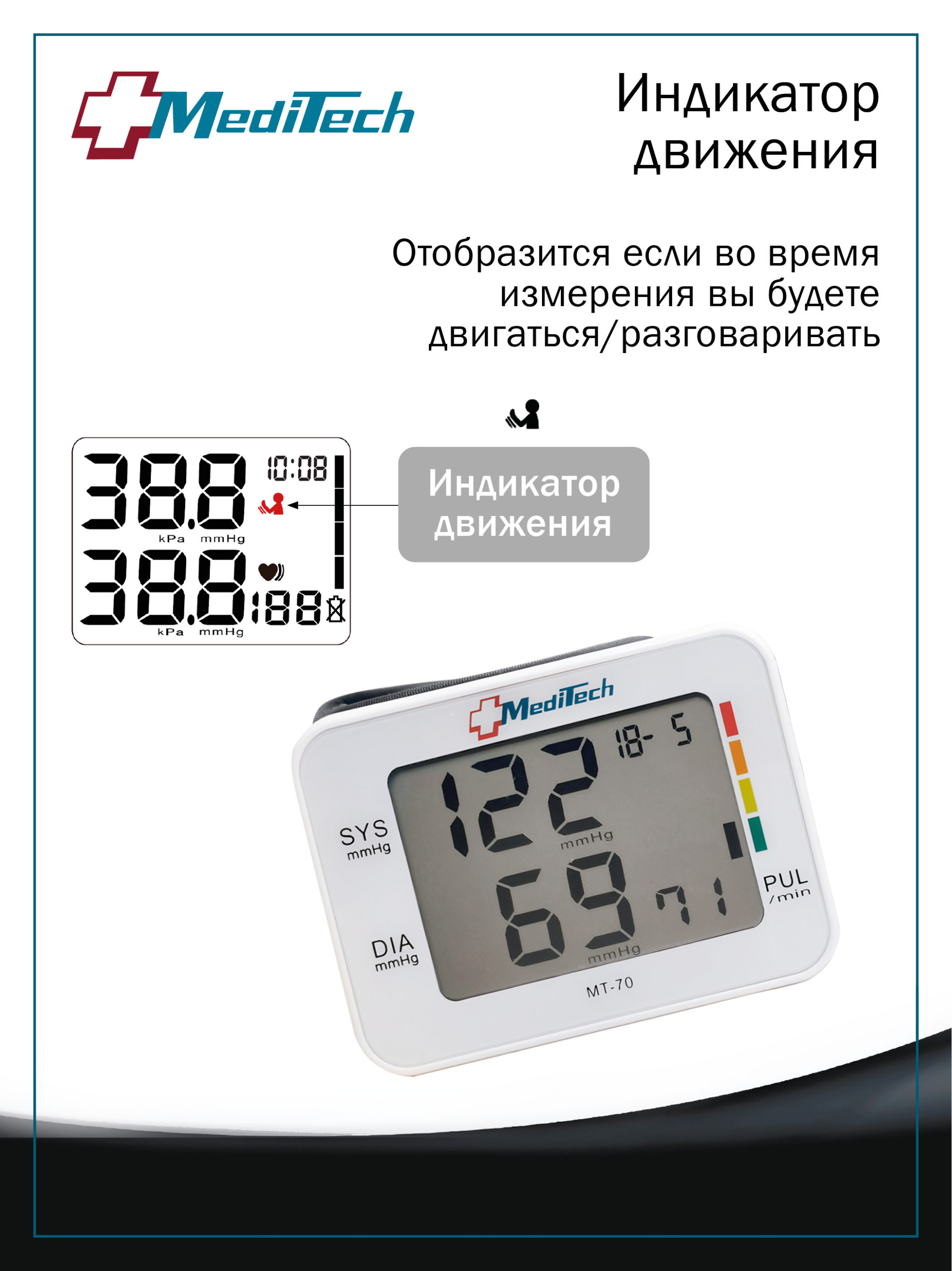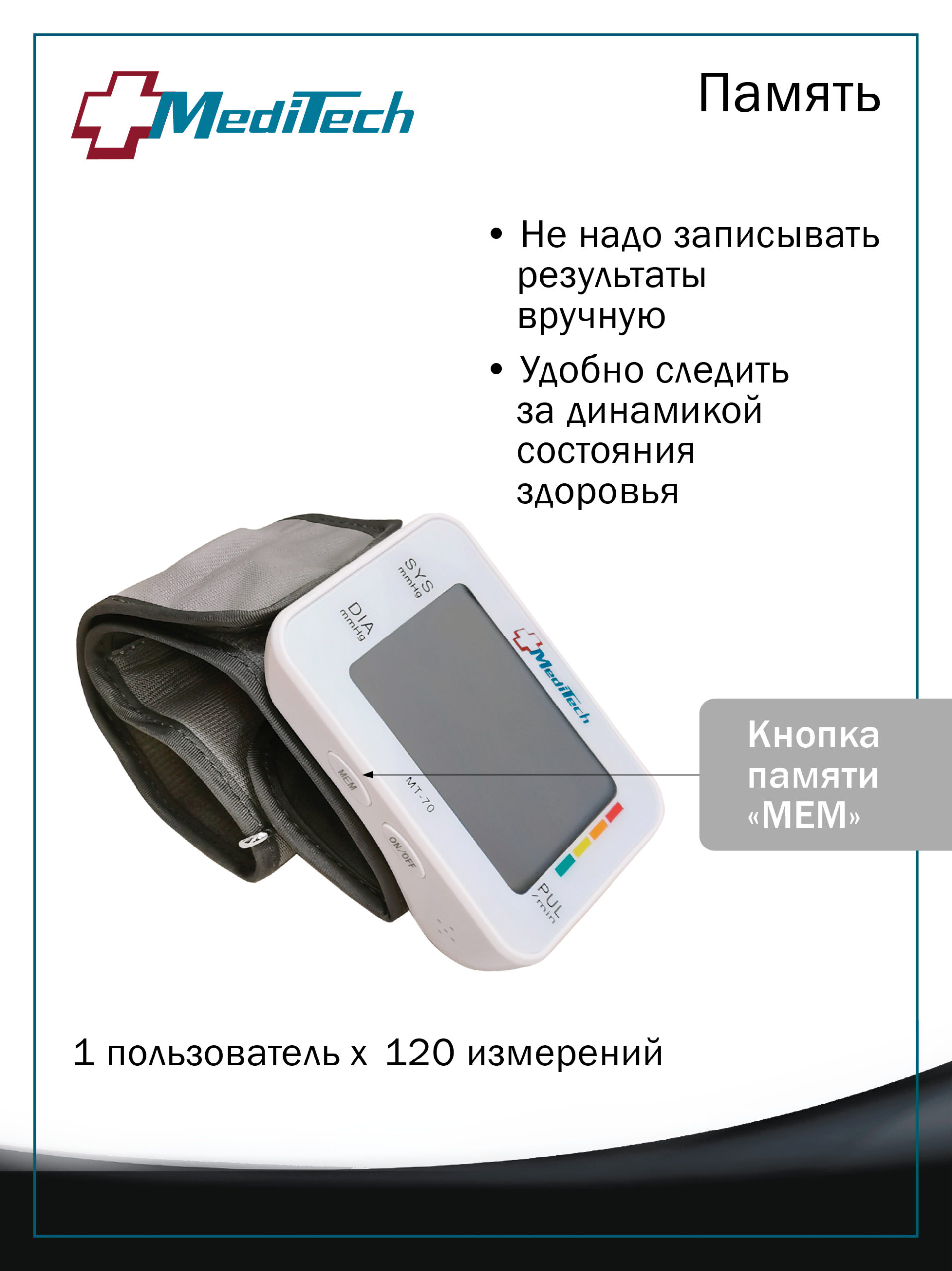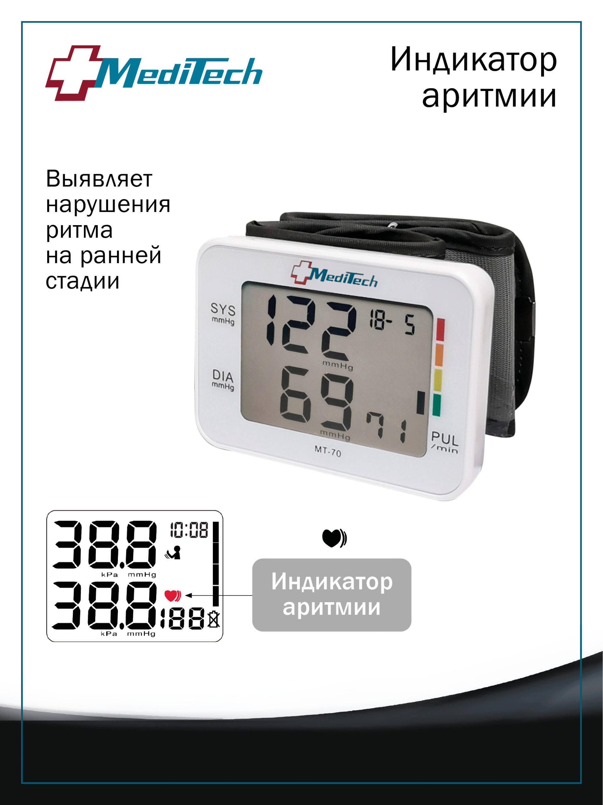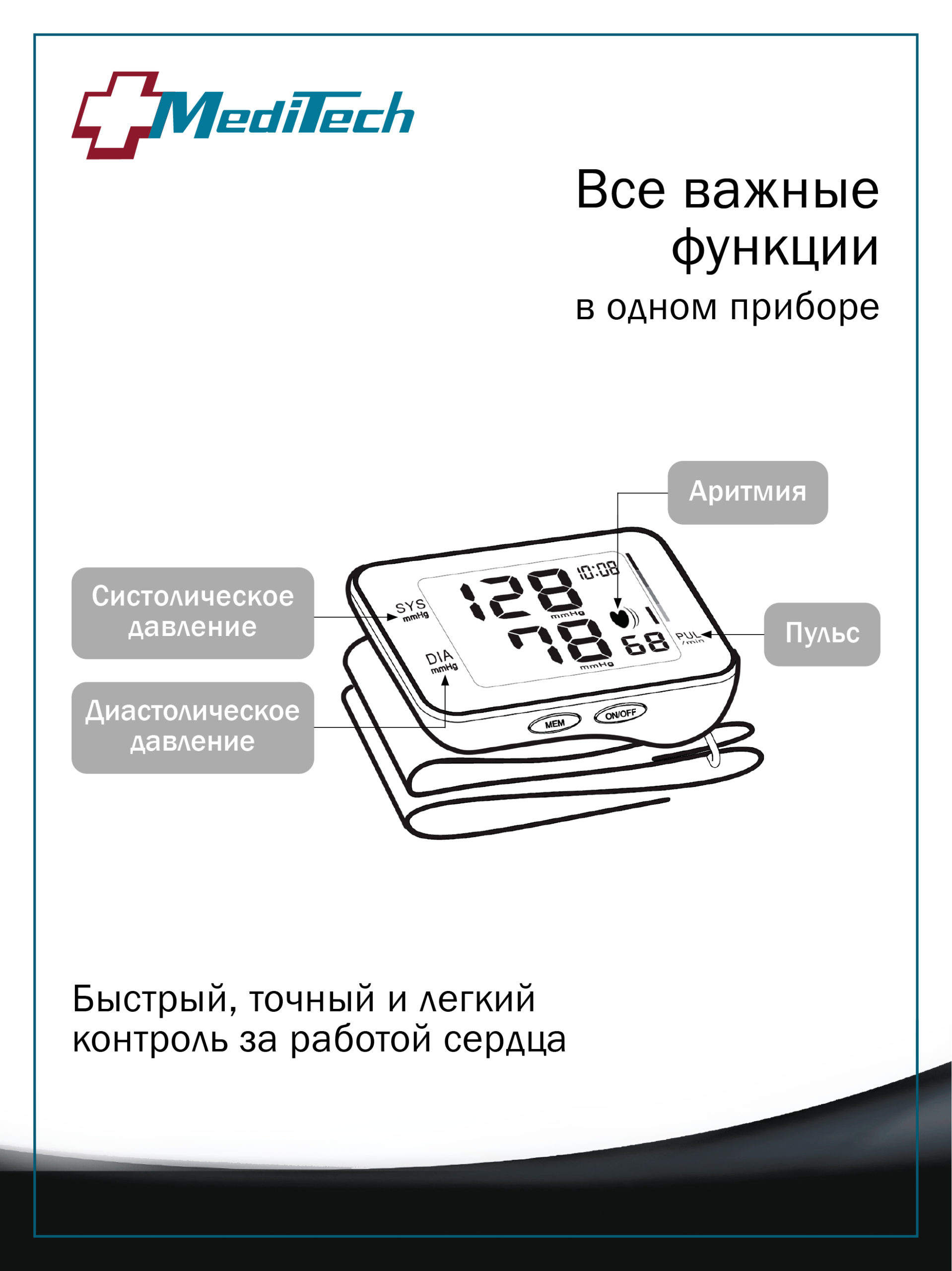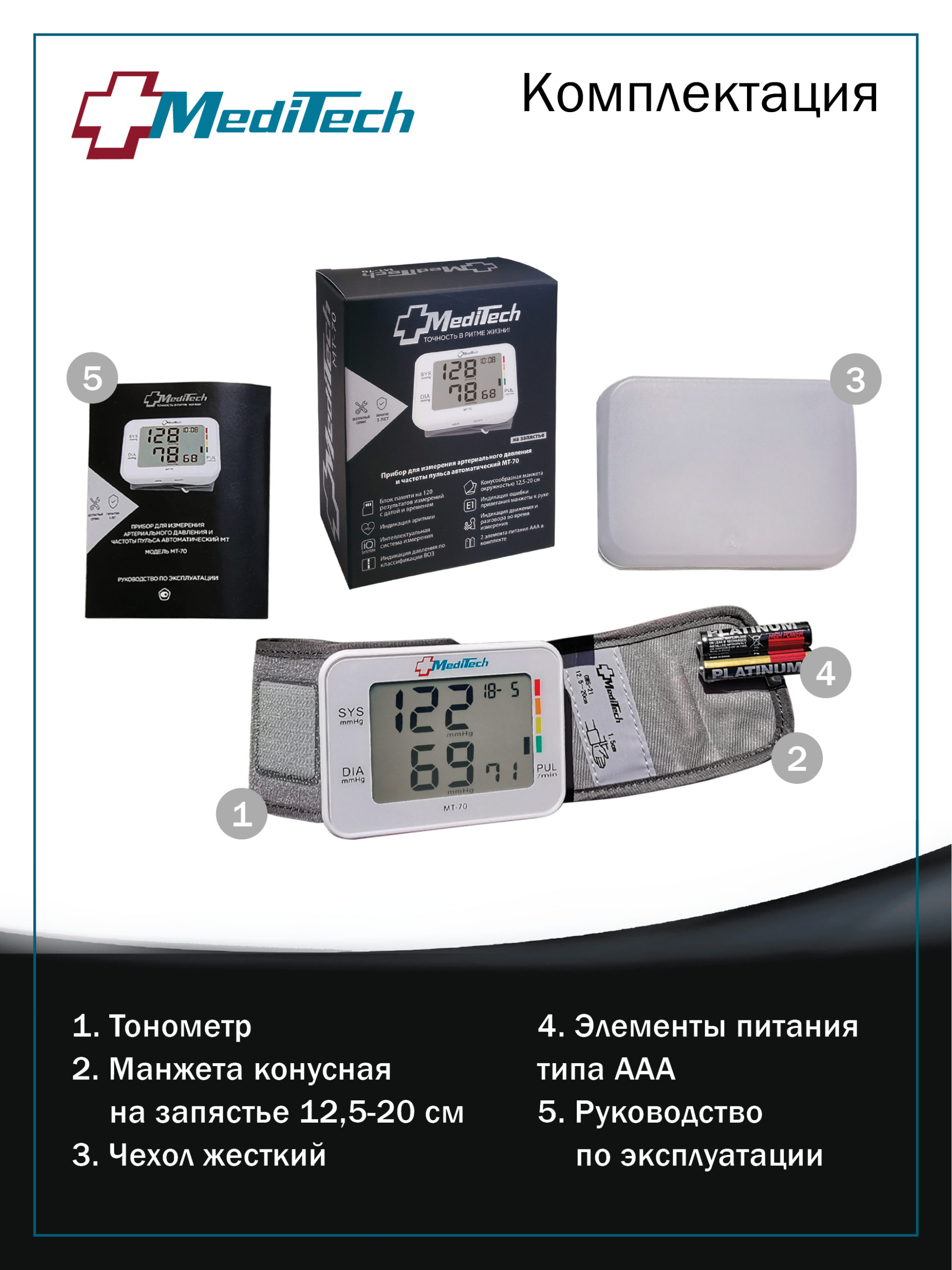 Компактный автоматический тонометр на запястье MediTech МТ-70 серии VISION, с большим