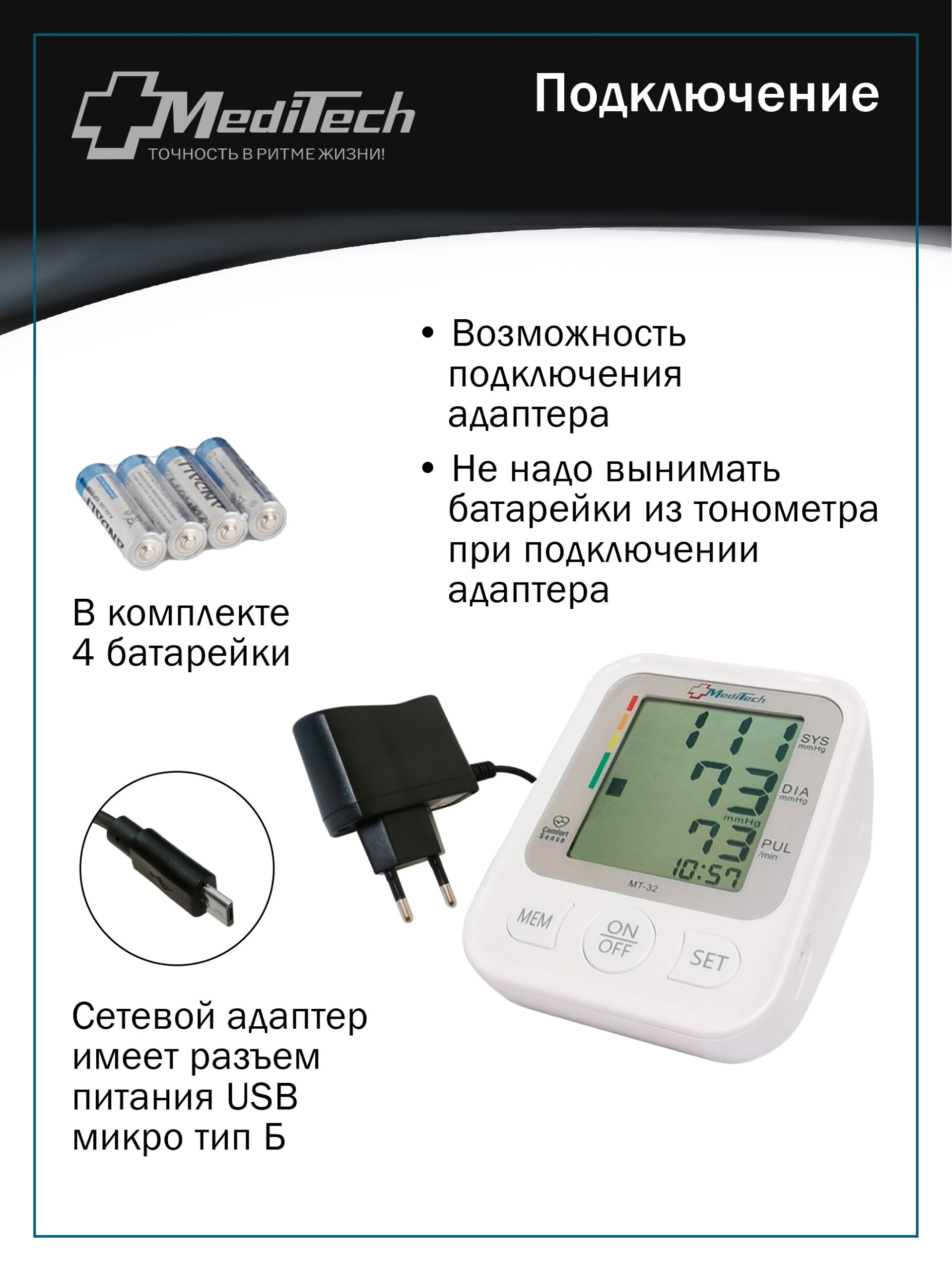 • Возможность подключения манжет разного размера, дополнительные манжеты приобретаются