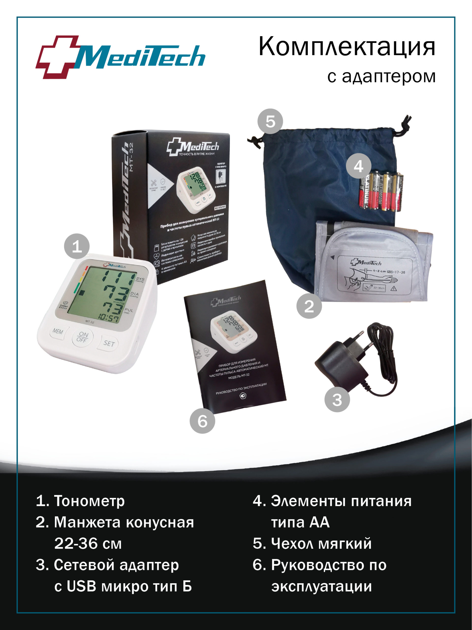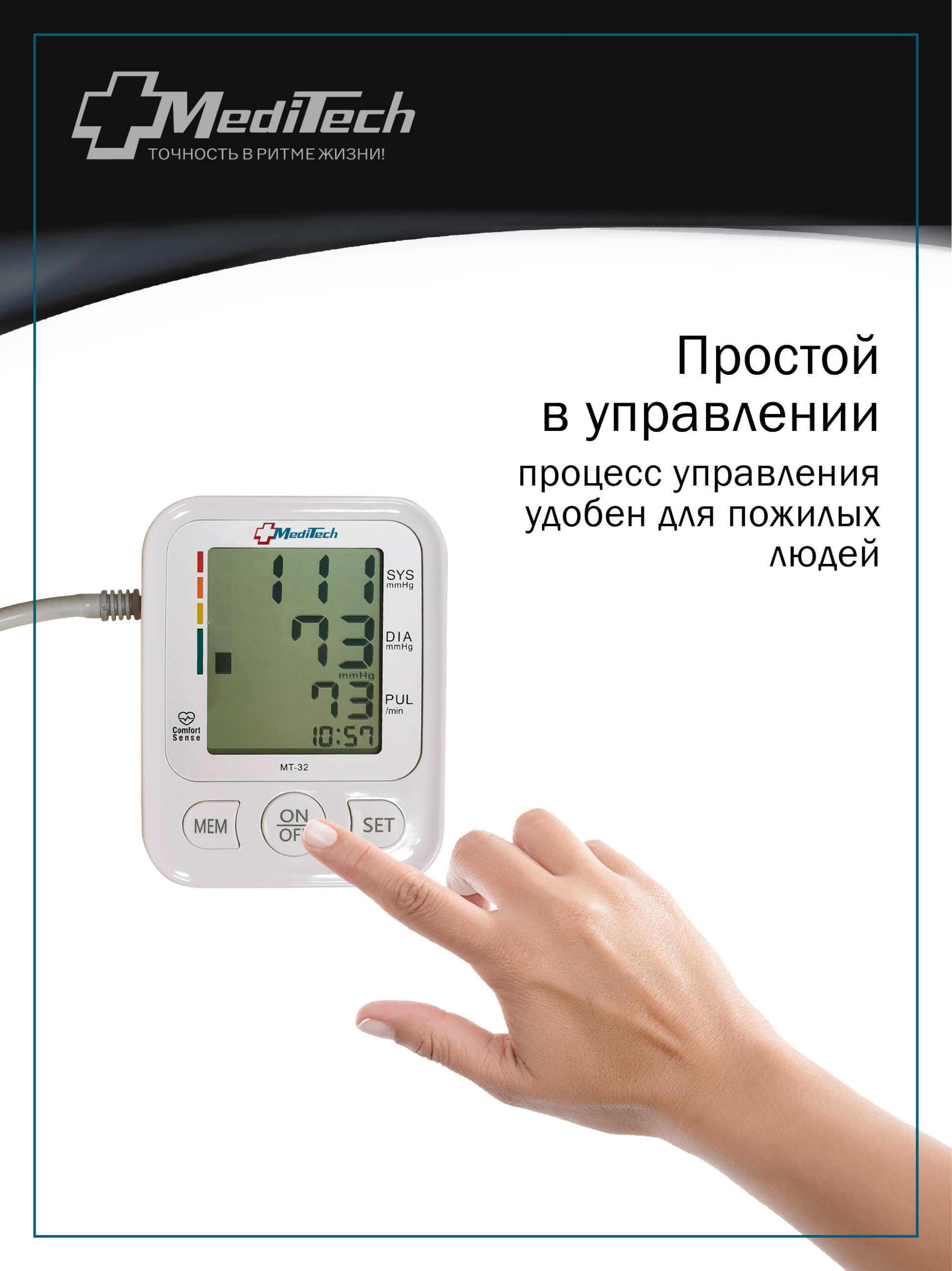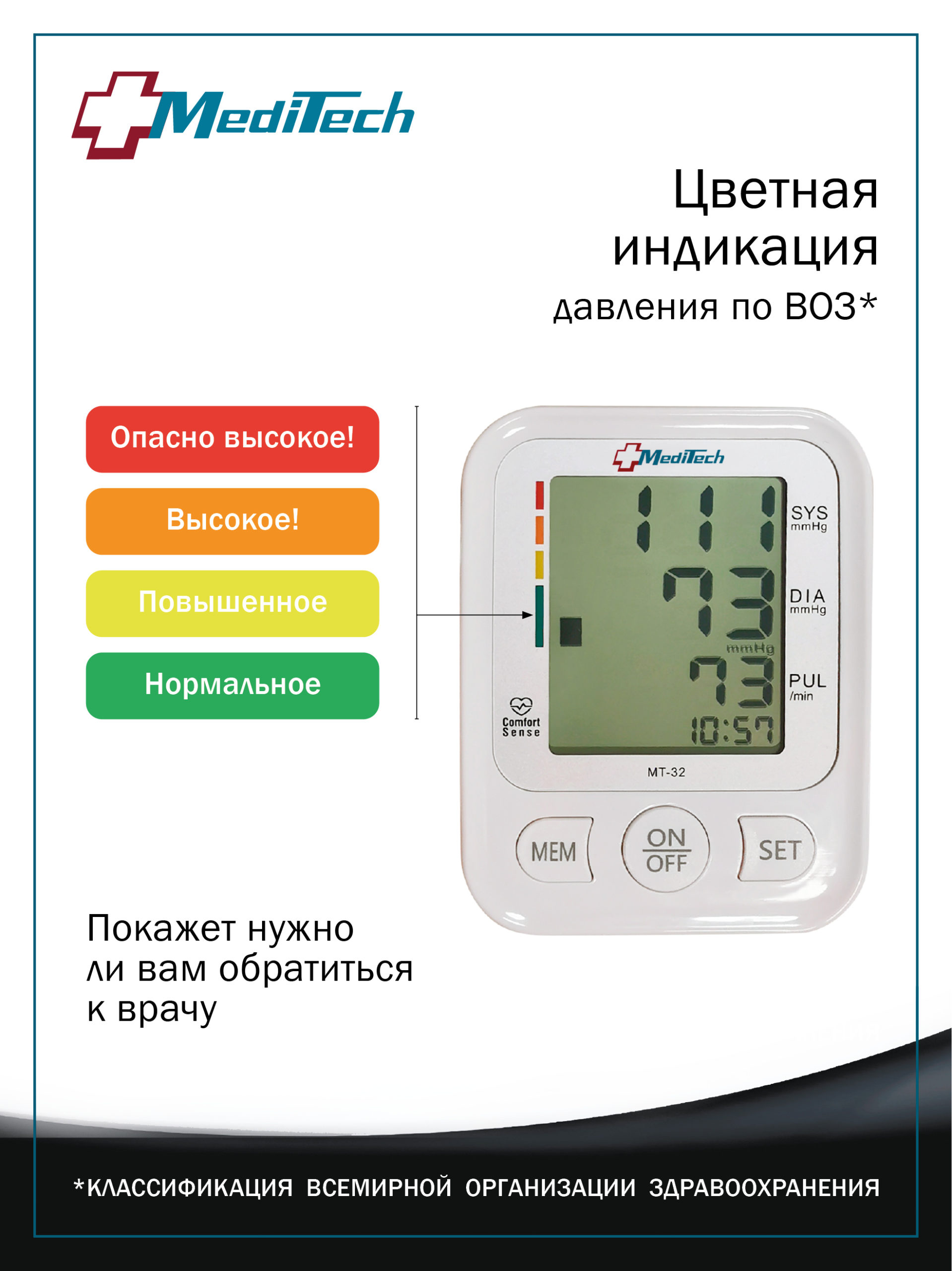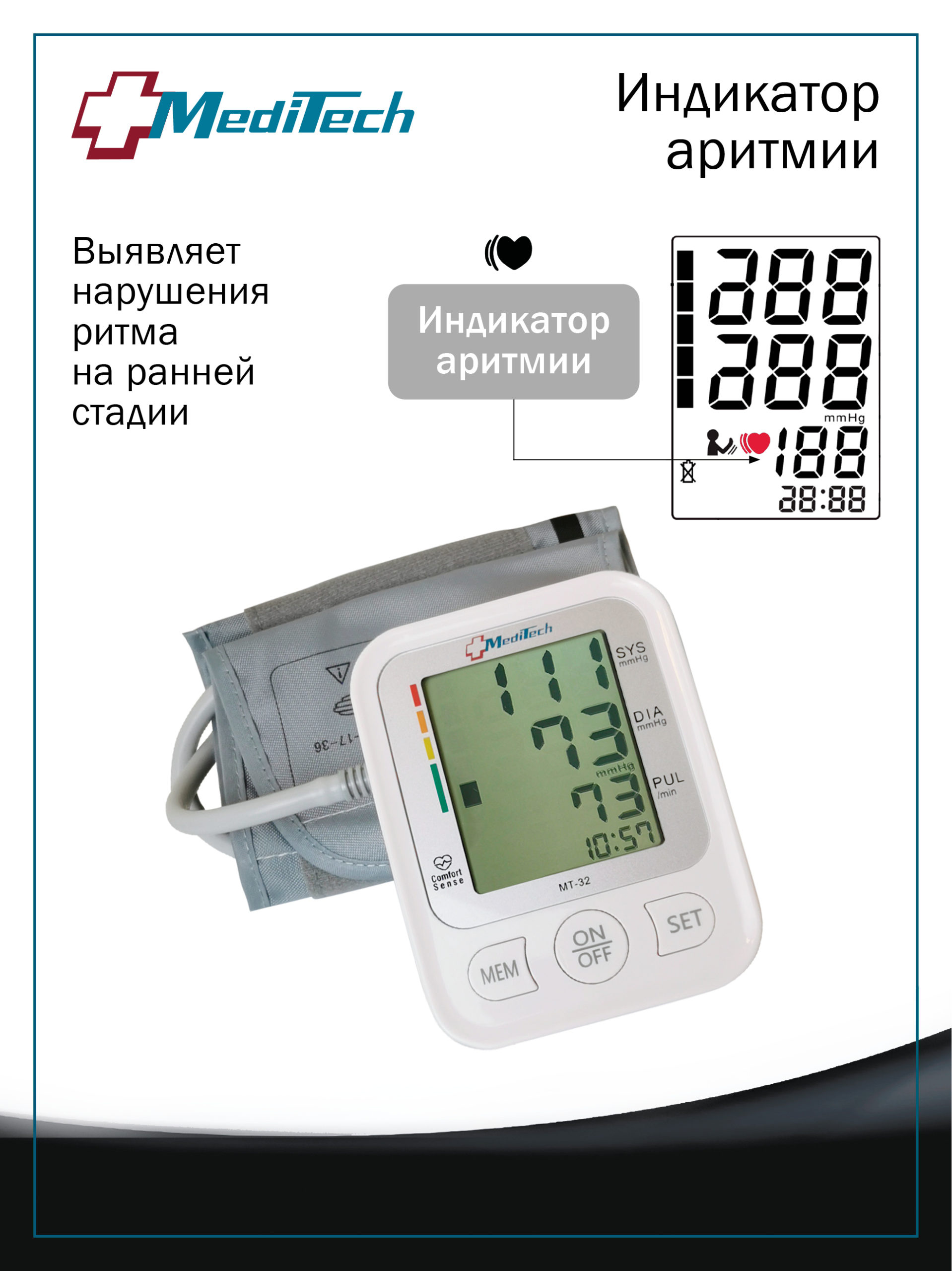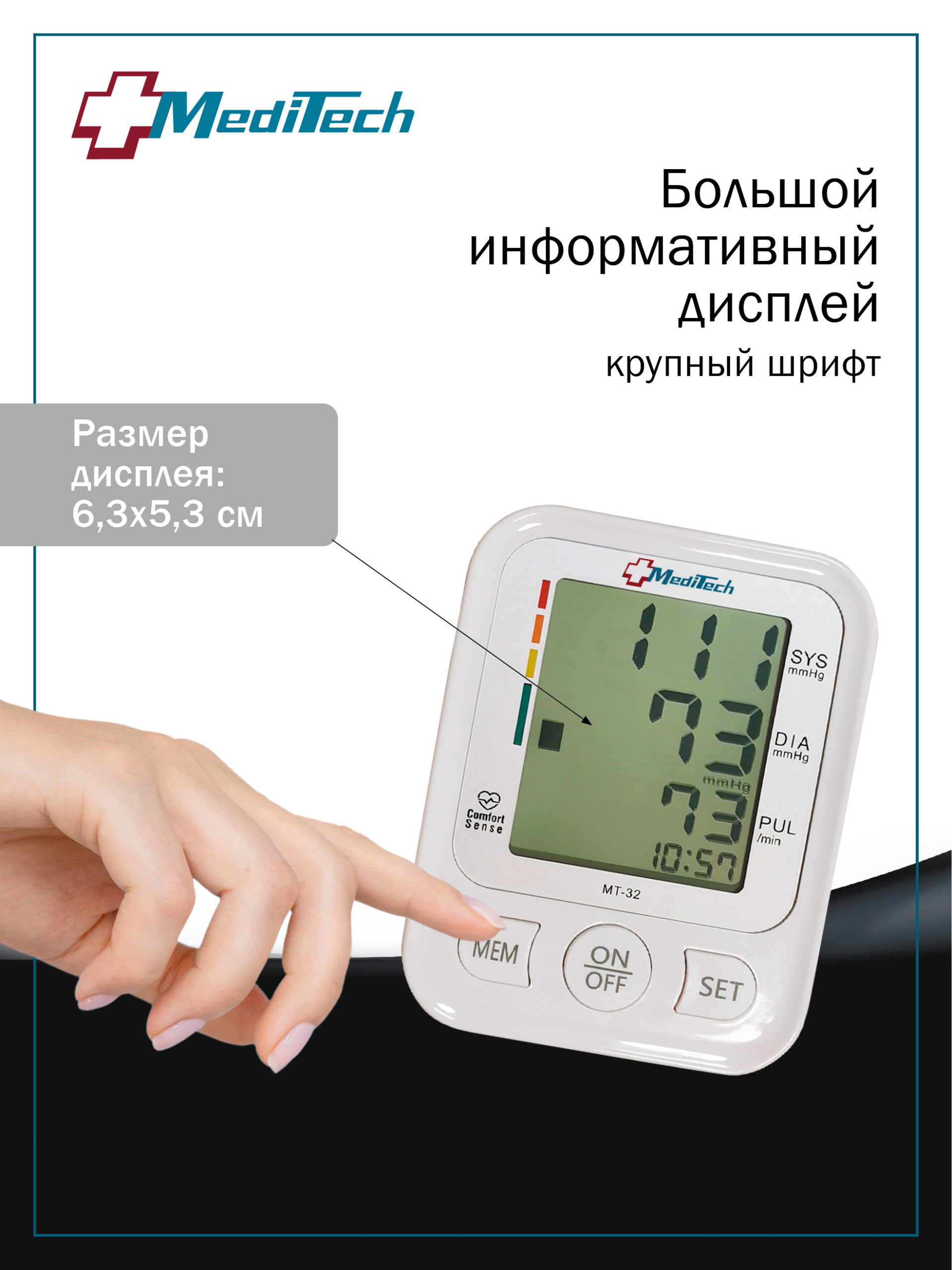 Компактный автоматический тонометр на плечо MediTech МТ-32 серии VISION, с большим