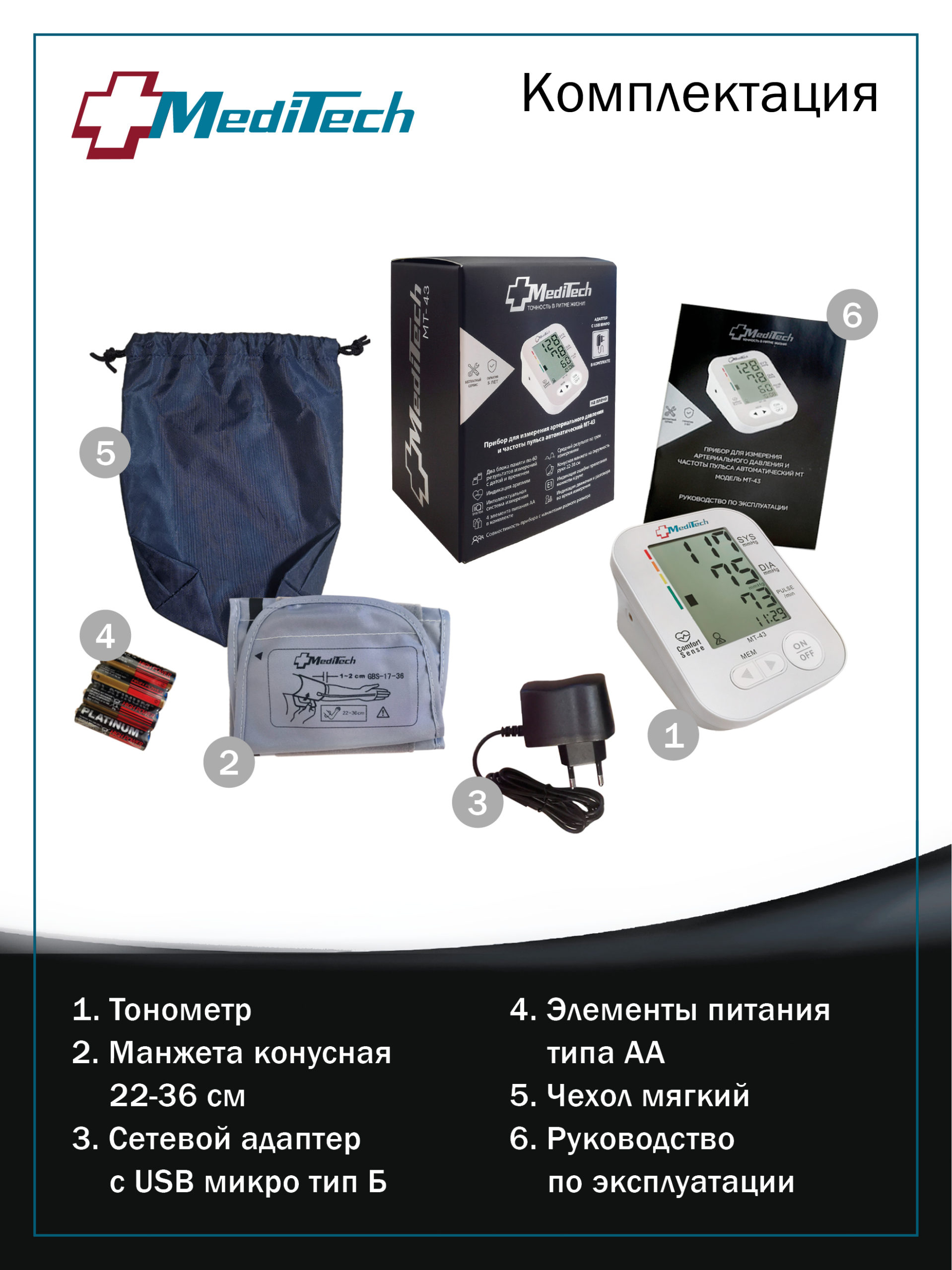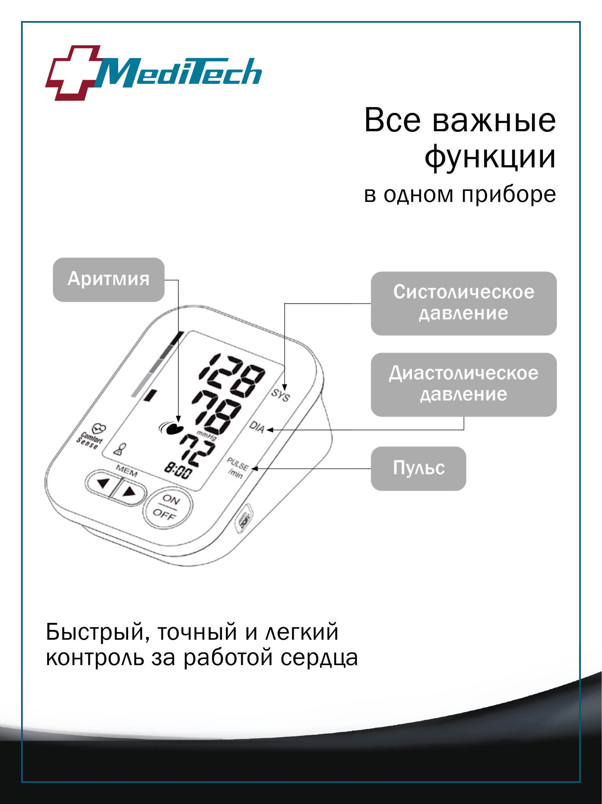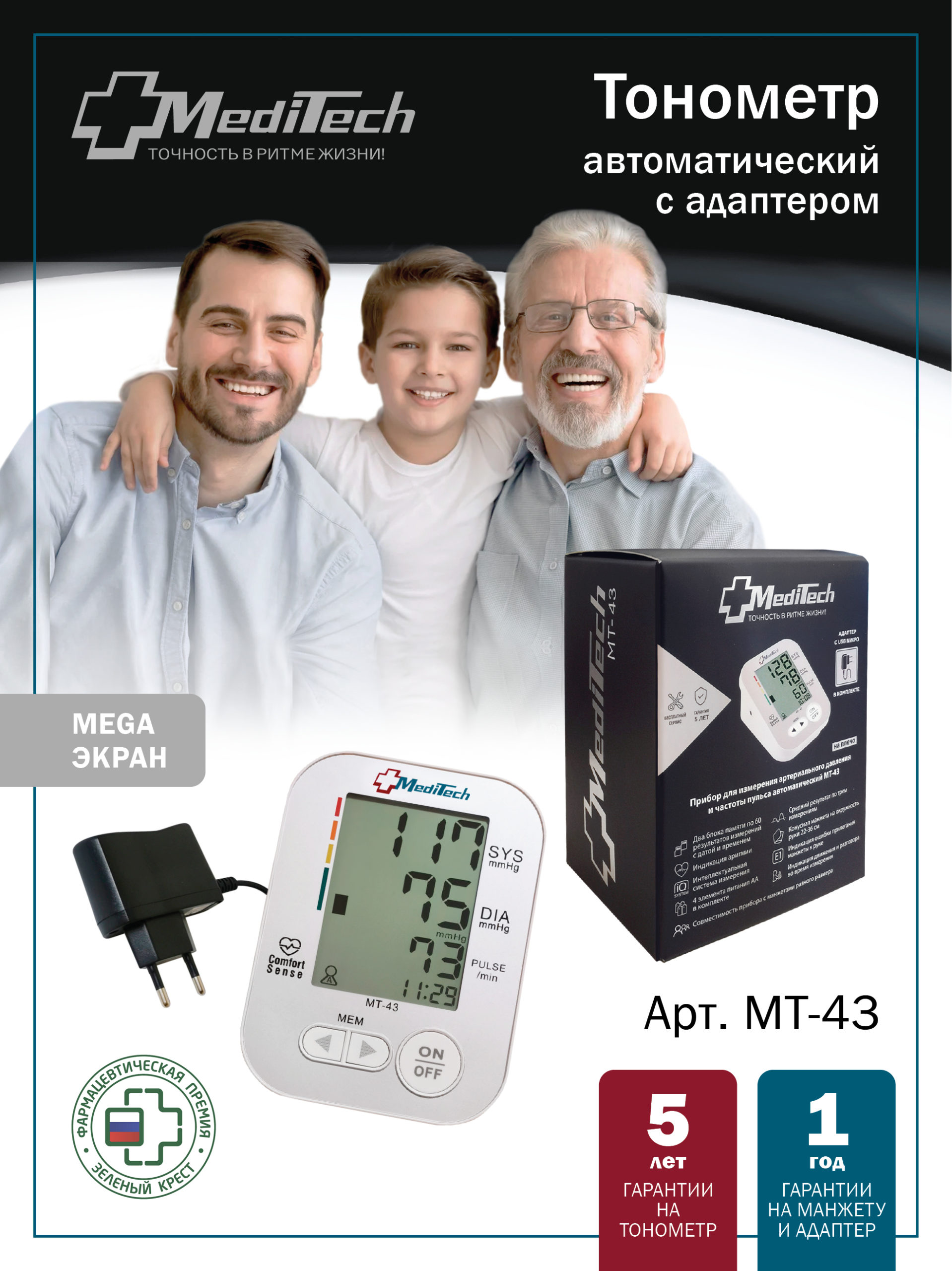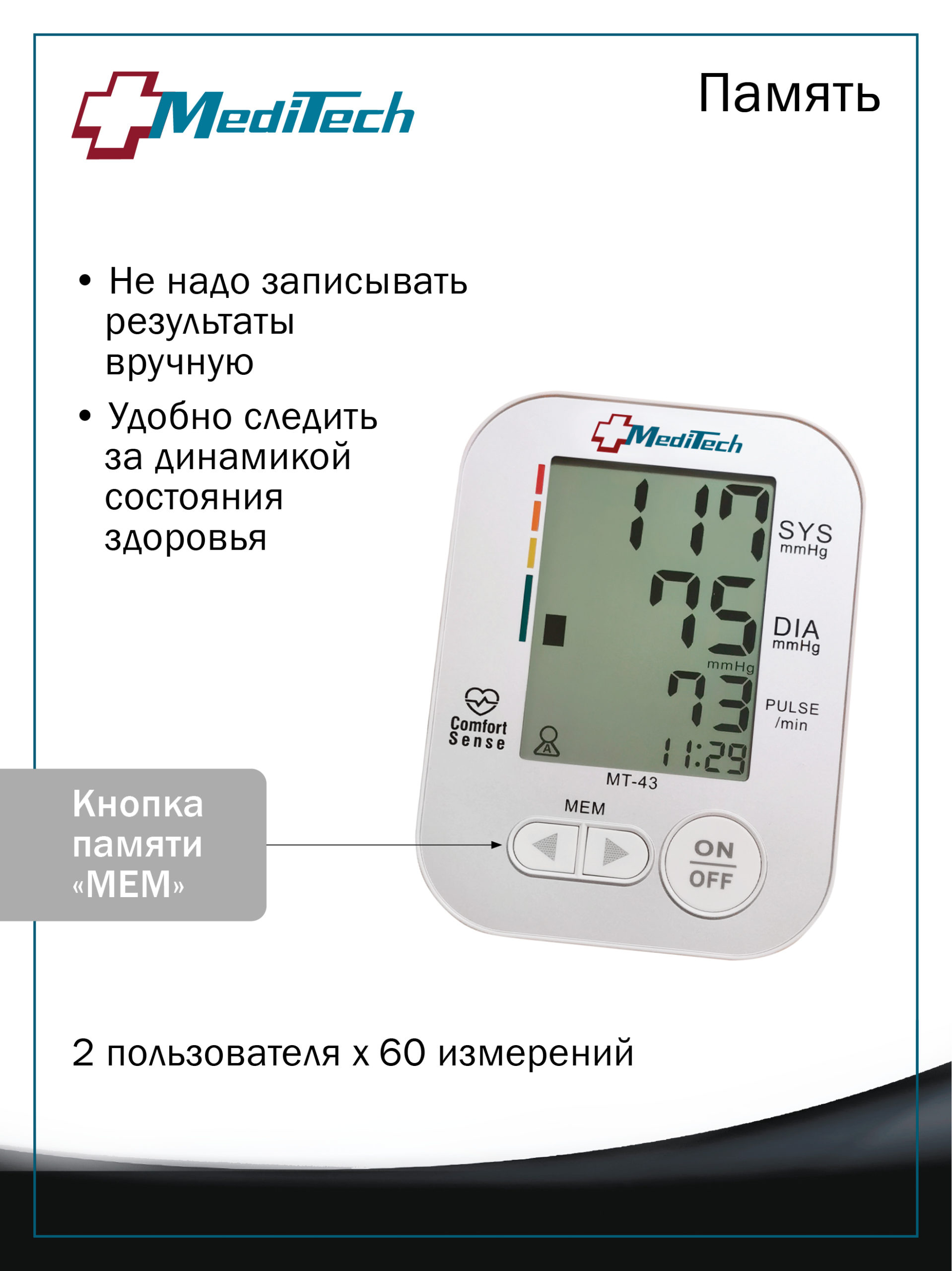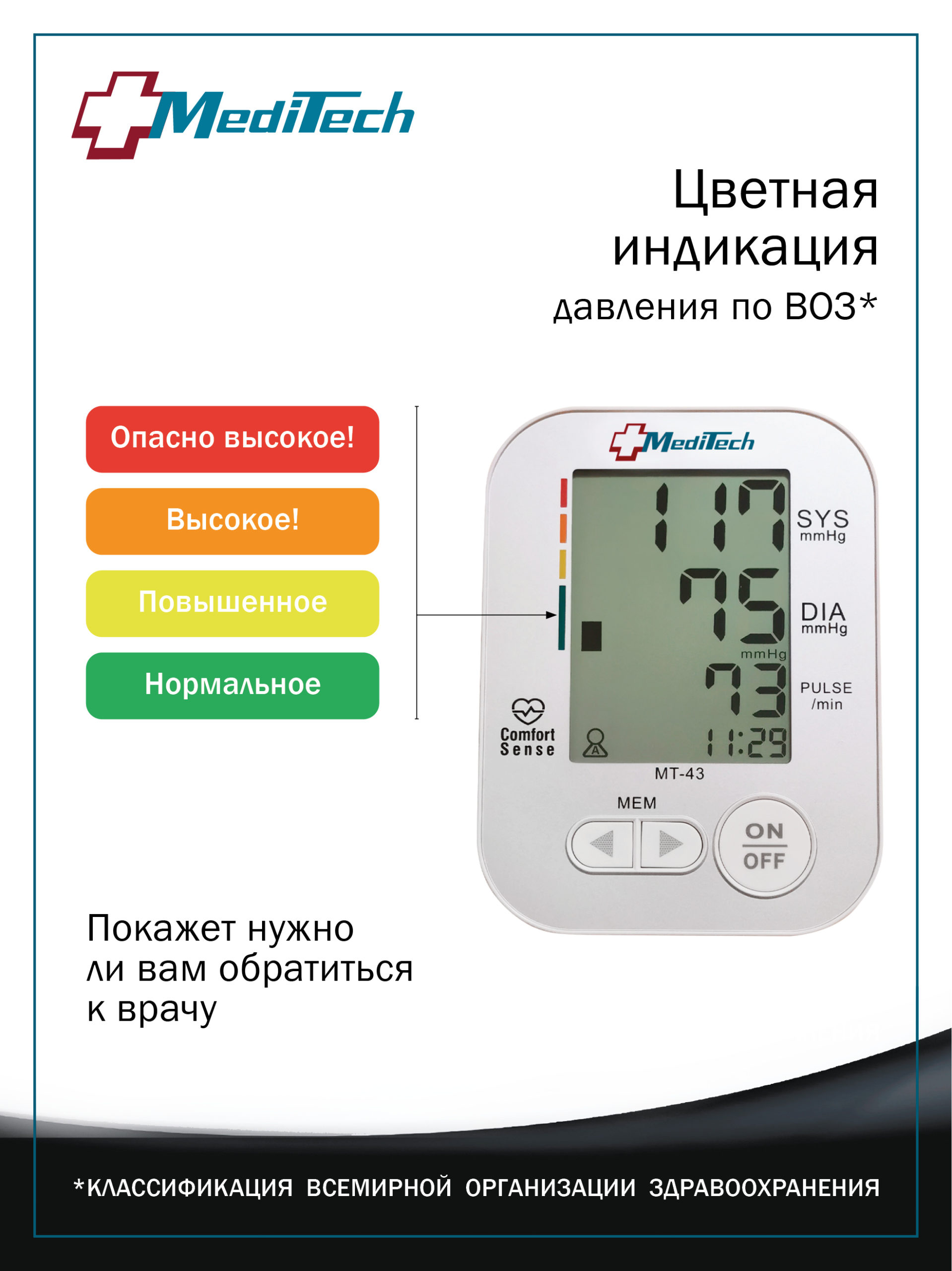 Компактный автоматический тонометр на плечо MediTech МТ-43 серии VISION, с большим