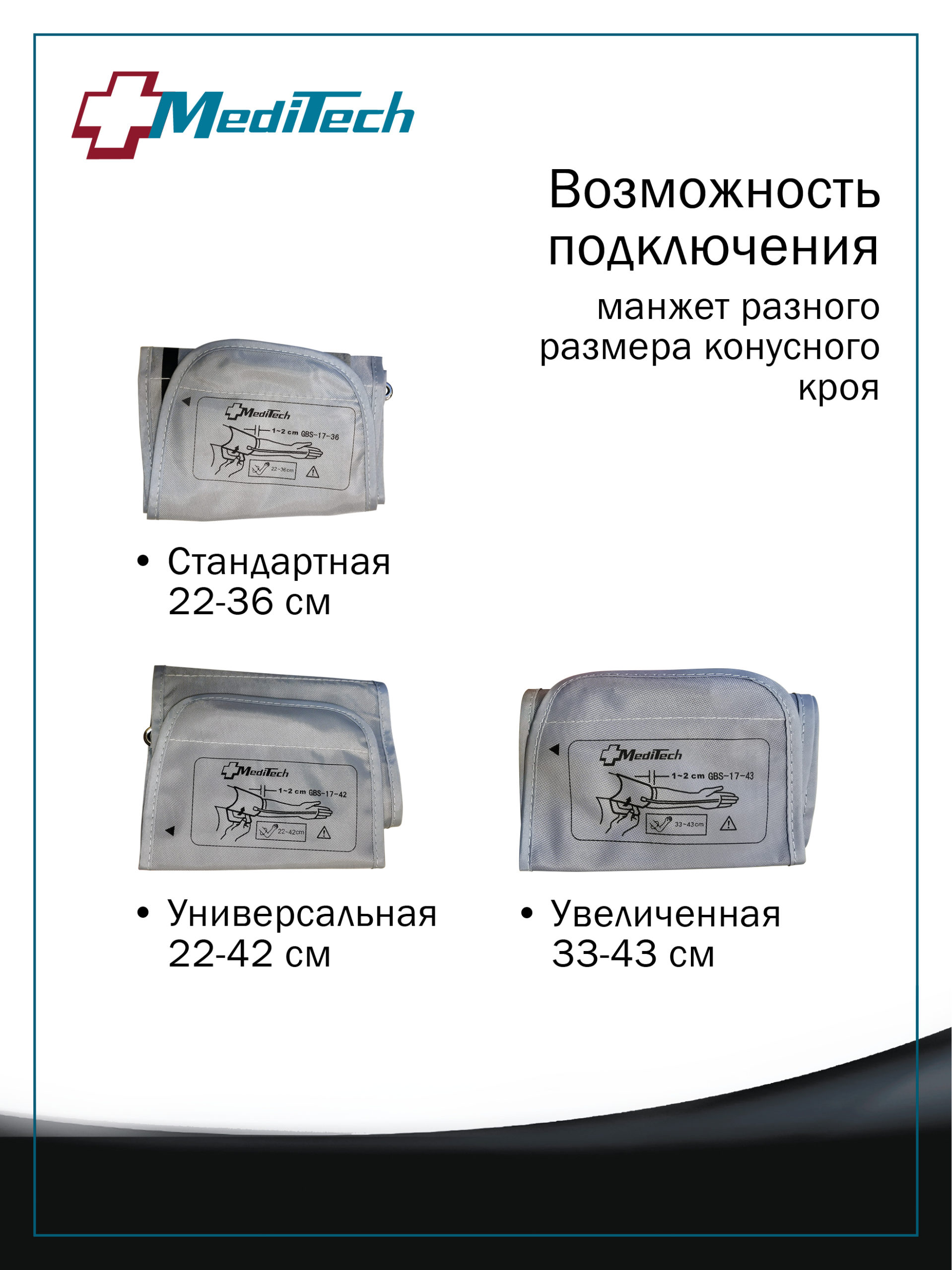 • Возможность подключения манжет разного размера, дополнительные манжеты приобретаются