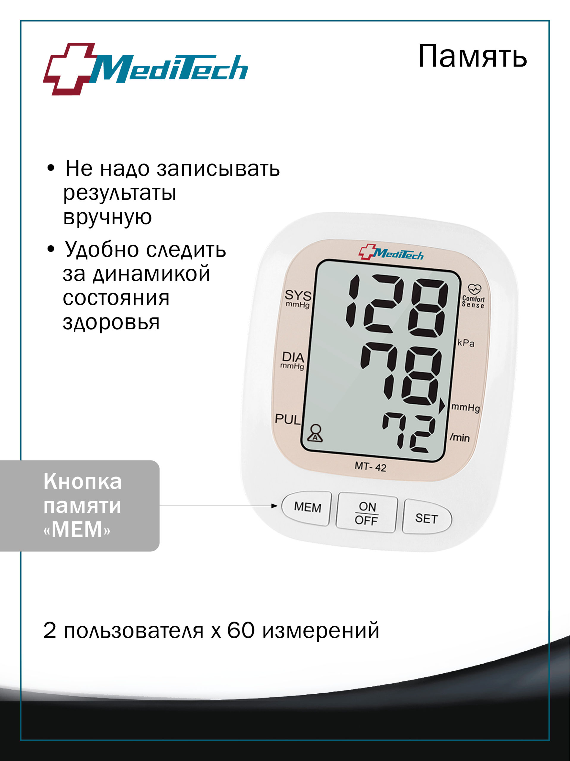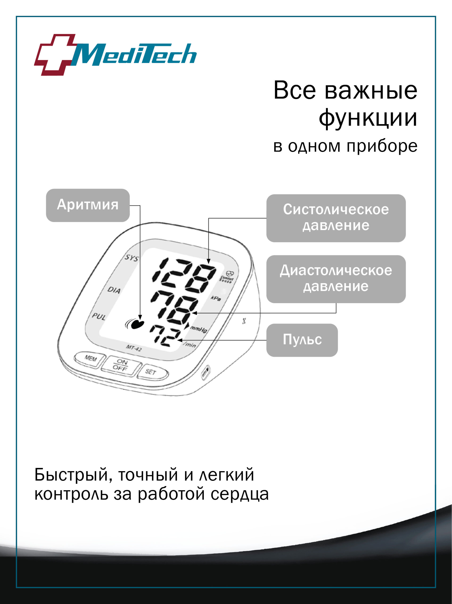 Компактный автоматический тонометр на плечо MediTech МТ-42 серии VISION, с большим