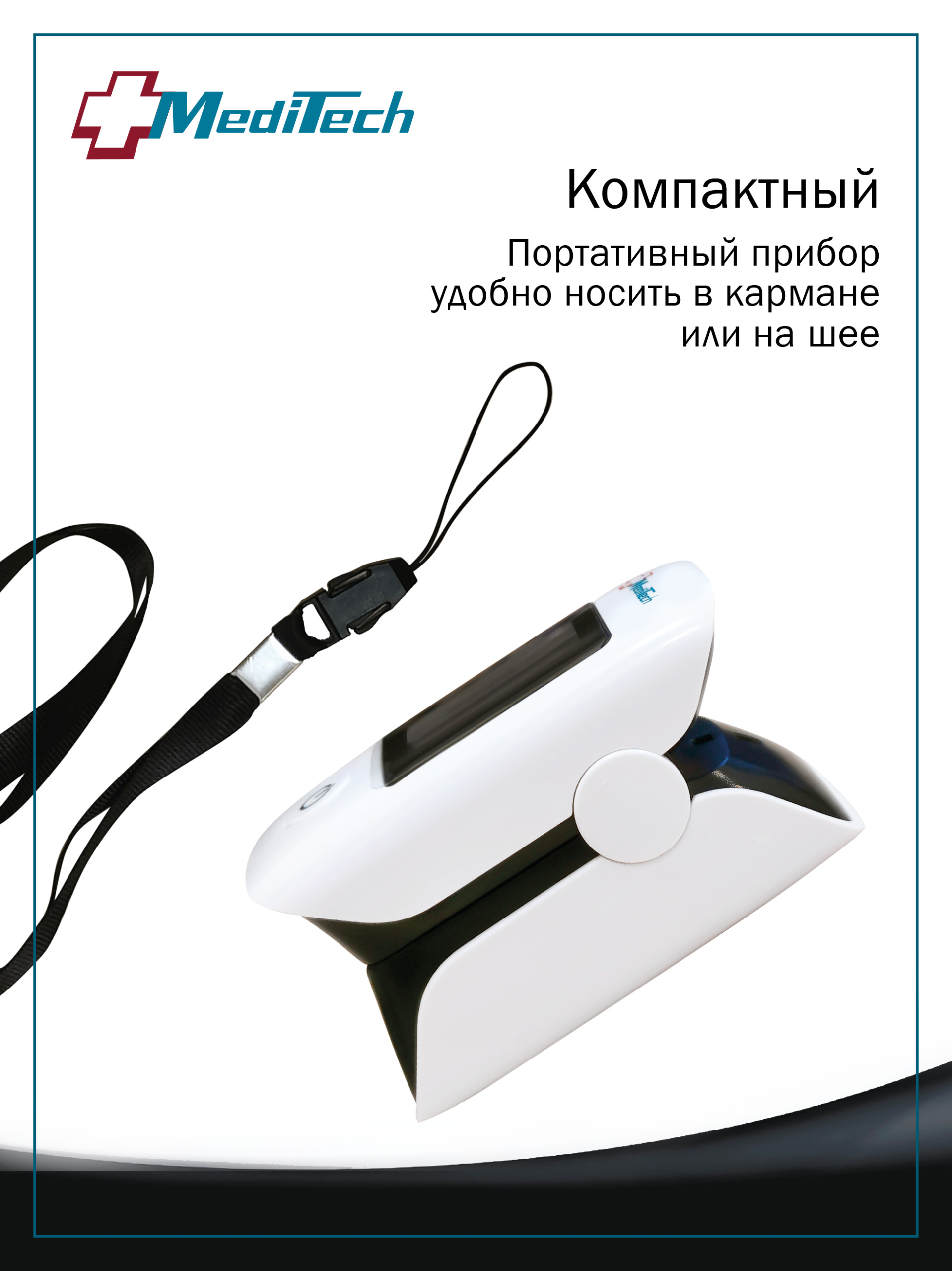 • Компактный прибор помещается в карман одежды. Для удобства в комплекте есть ремешок для ношения на руке или шее.
