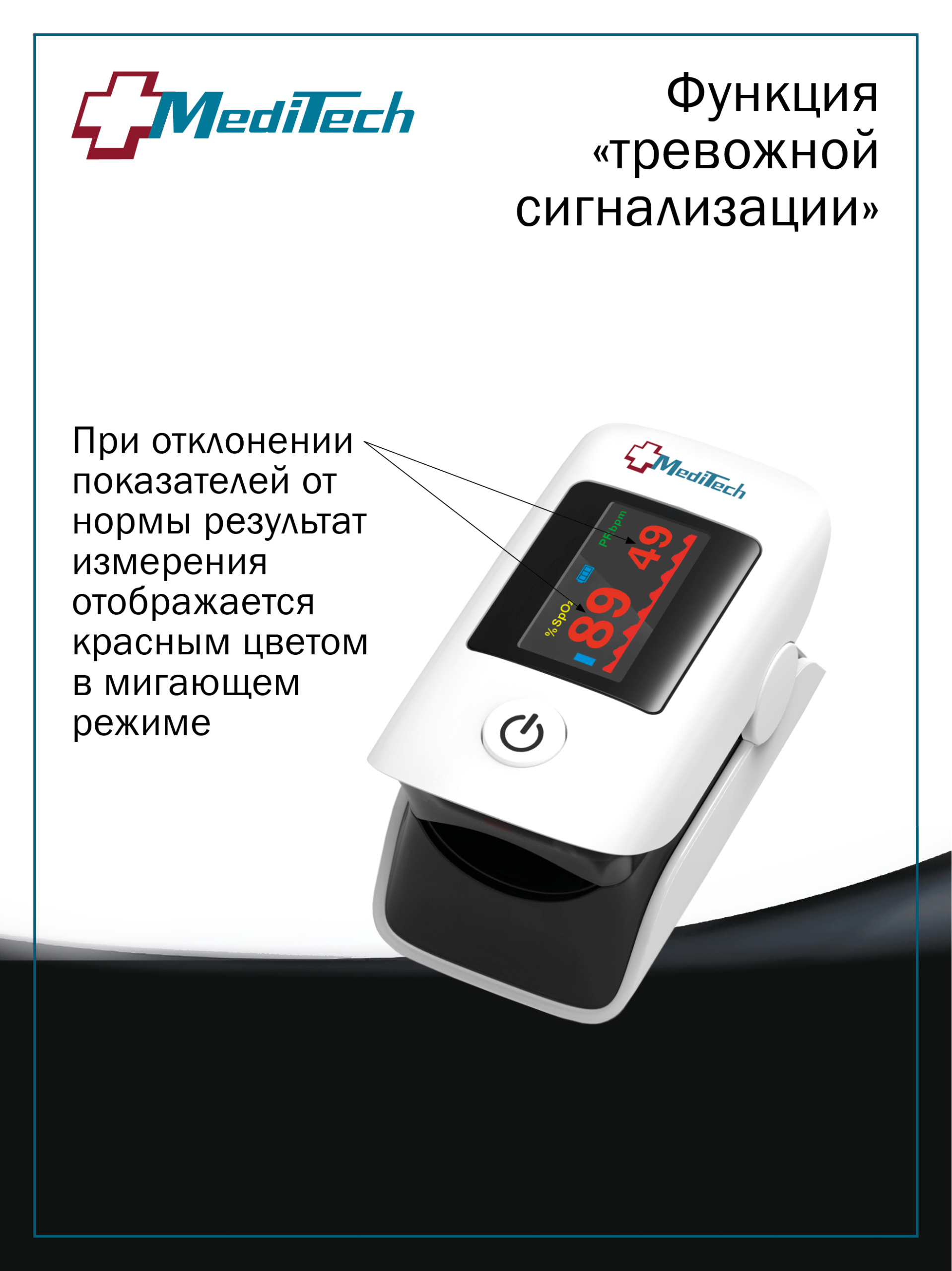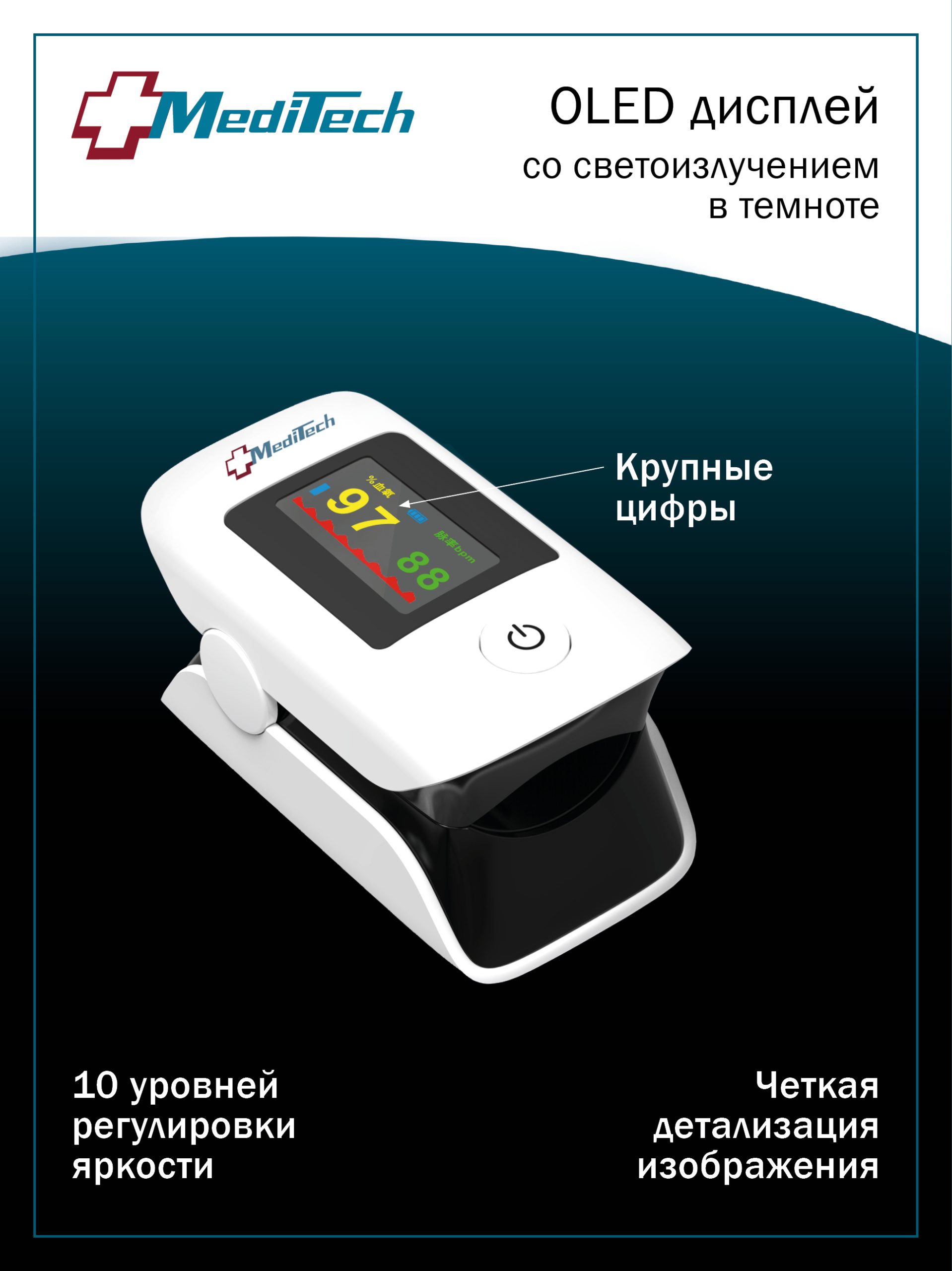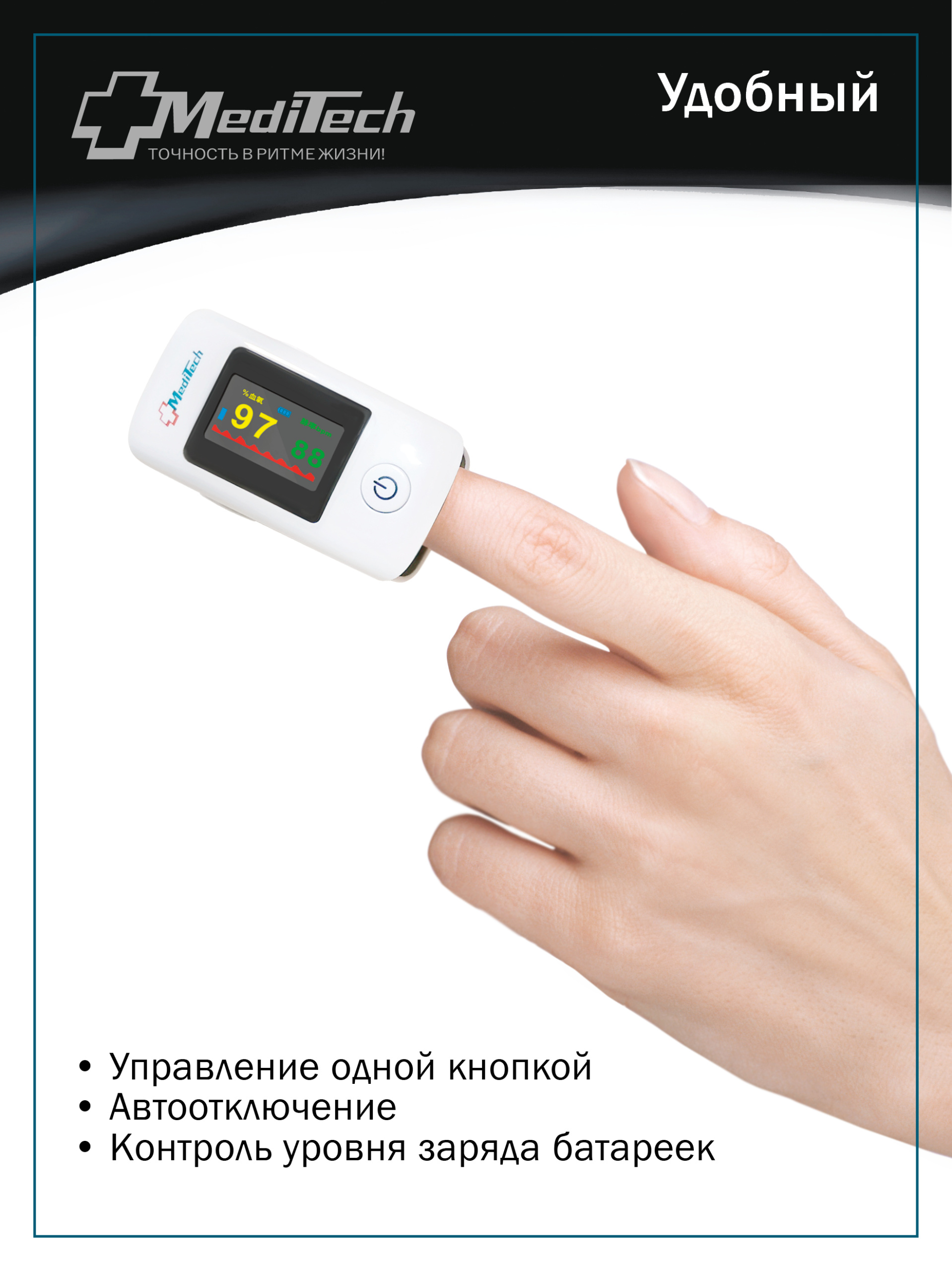 Пульсоксиметр портативный МТ-01 MediTech предназначен для быстрого измерения пульса и уровня насыщения кислородом гемоглобина артериальной крови человека у взрослых и детей в медицинских учреждениях и в домашних условиях.