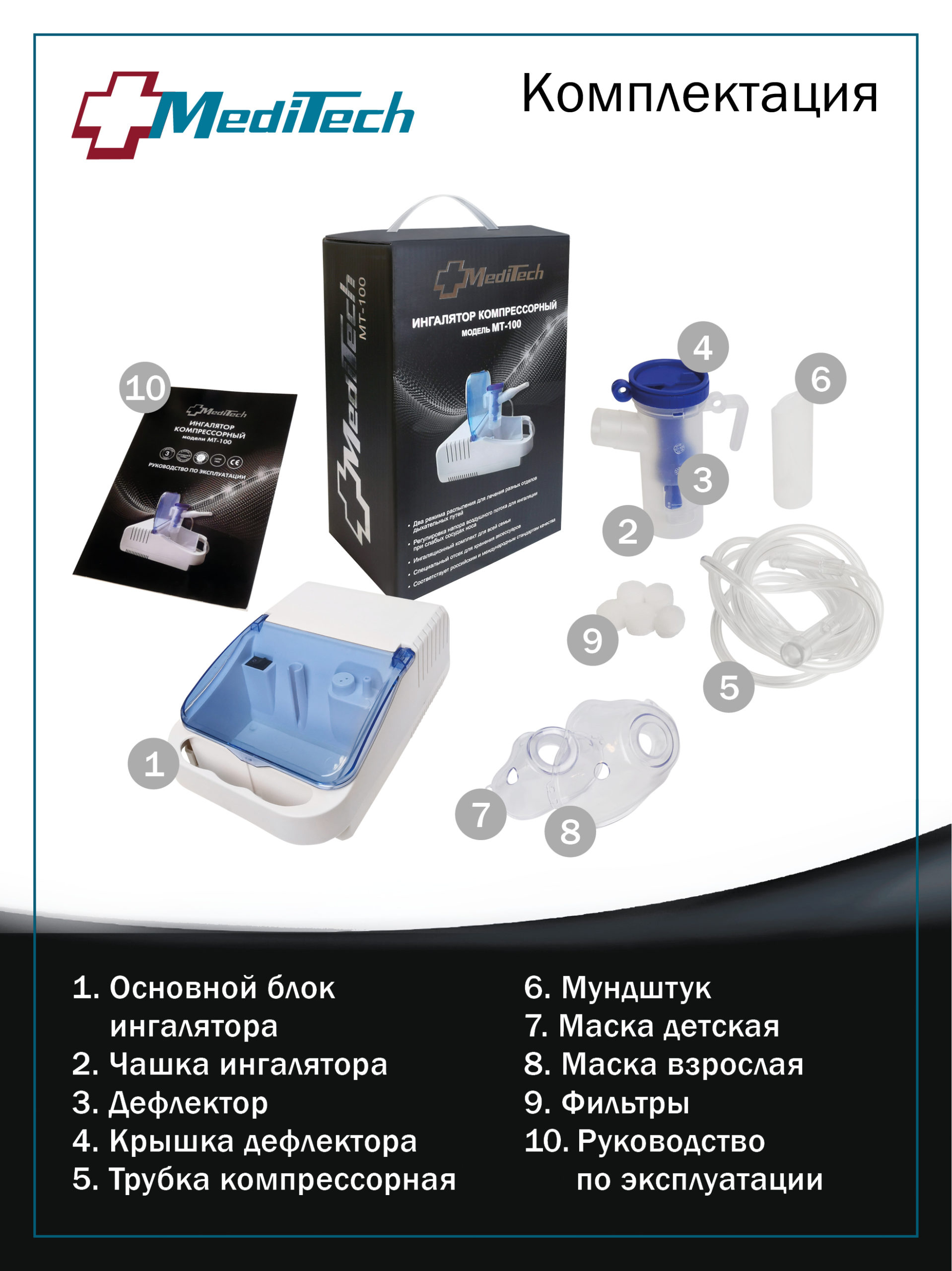 входят: детская маска, маска для взрослых, мундштук, компрессорная (воздуховодная)