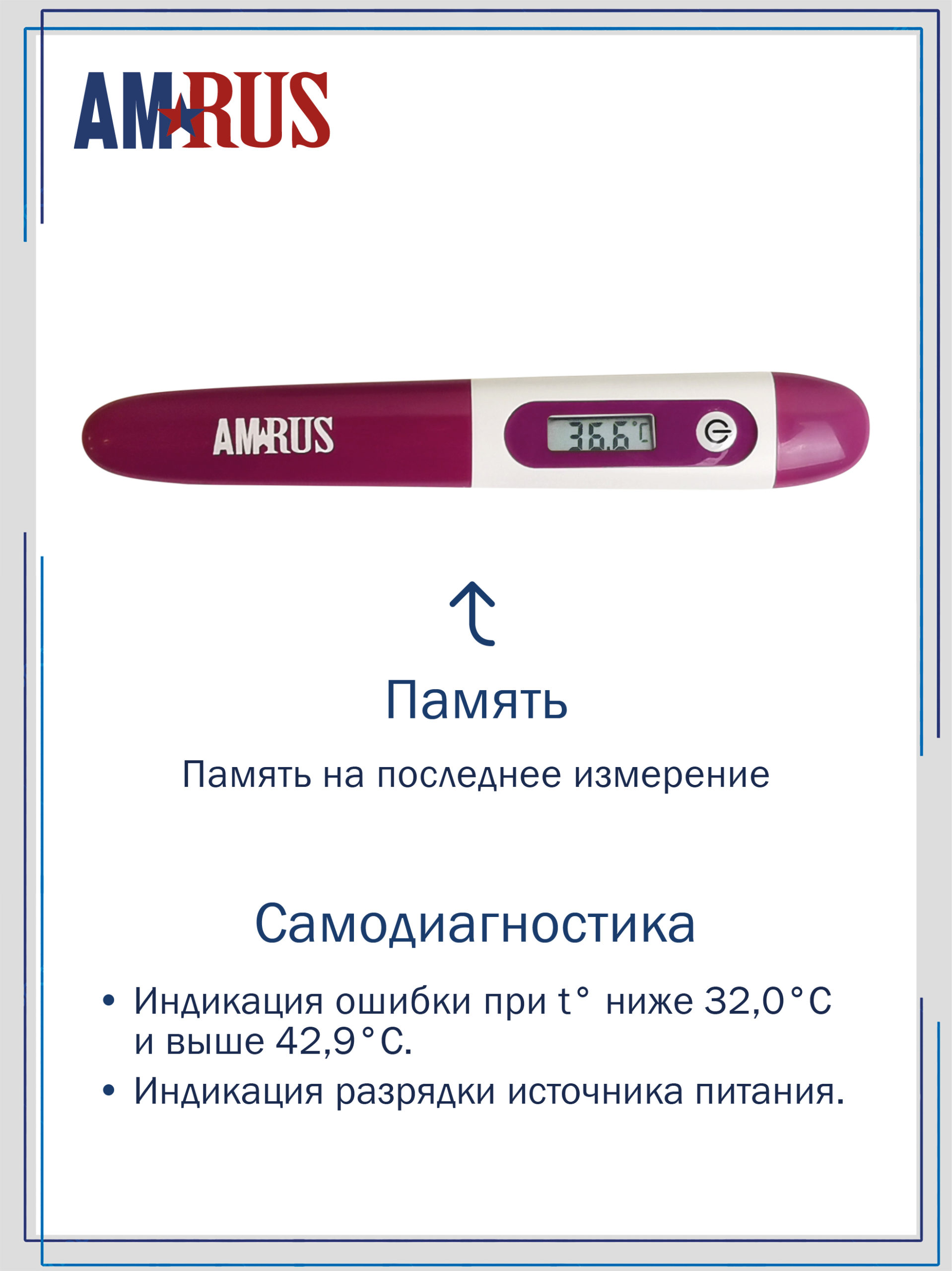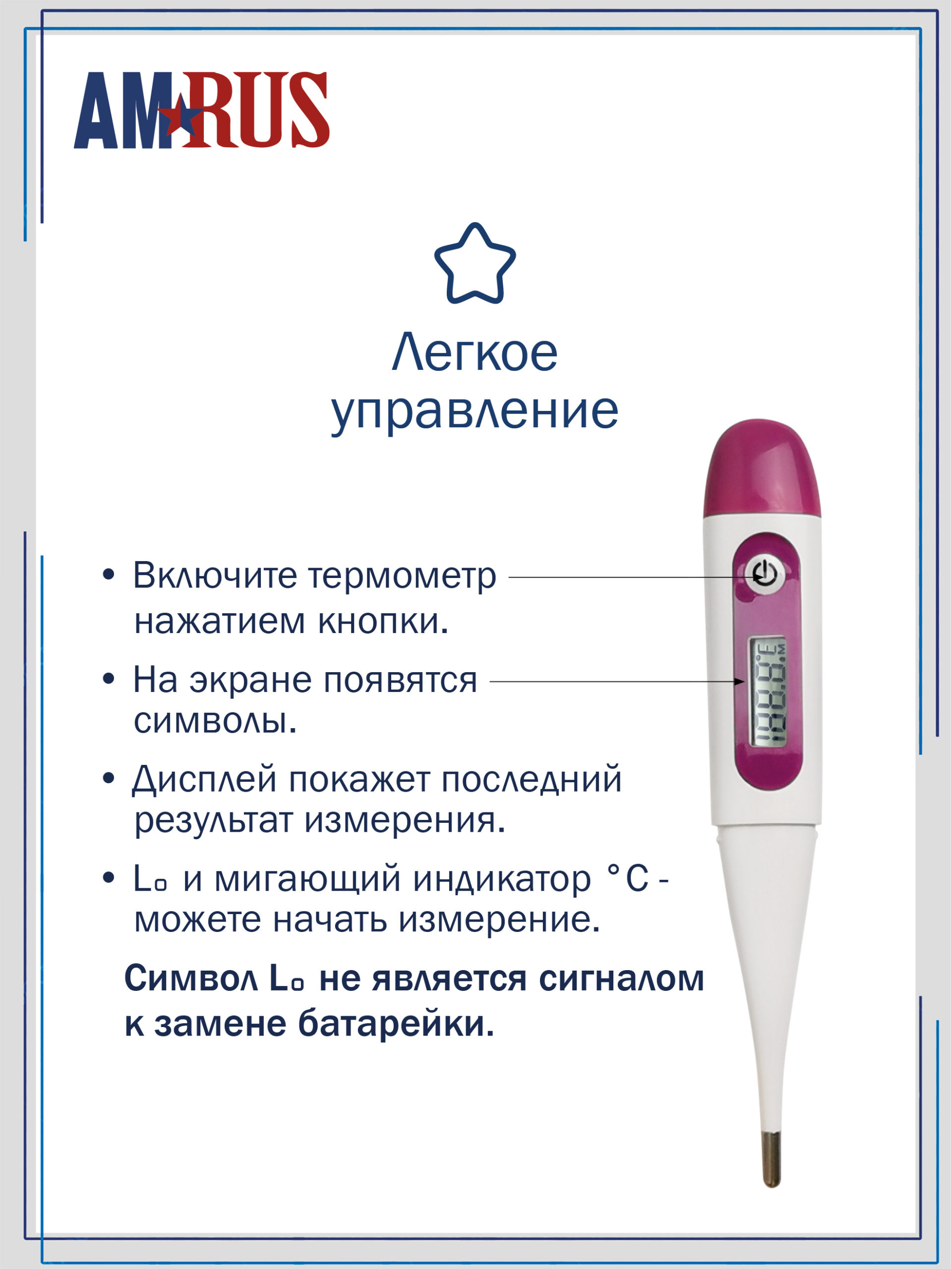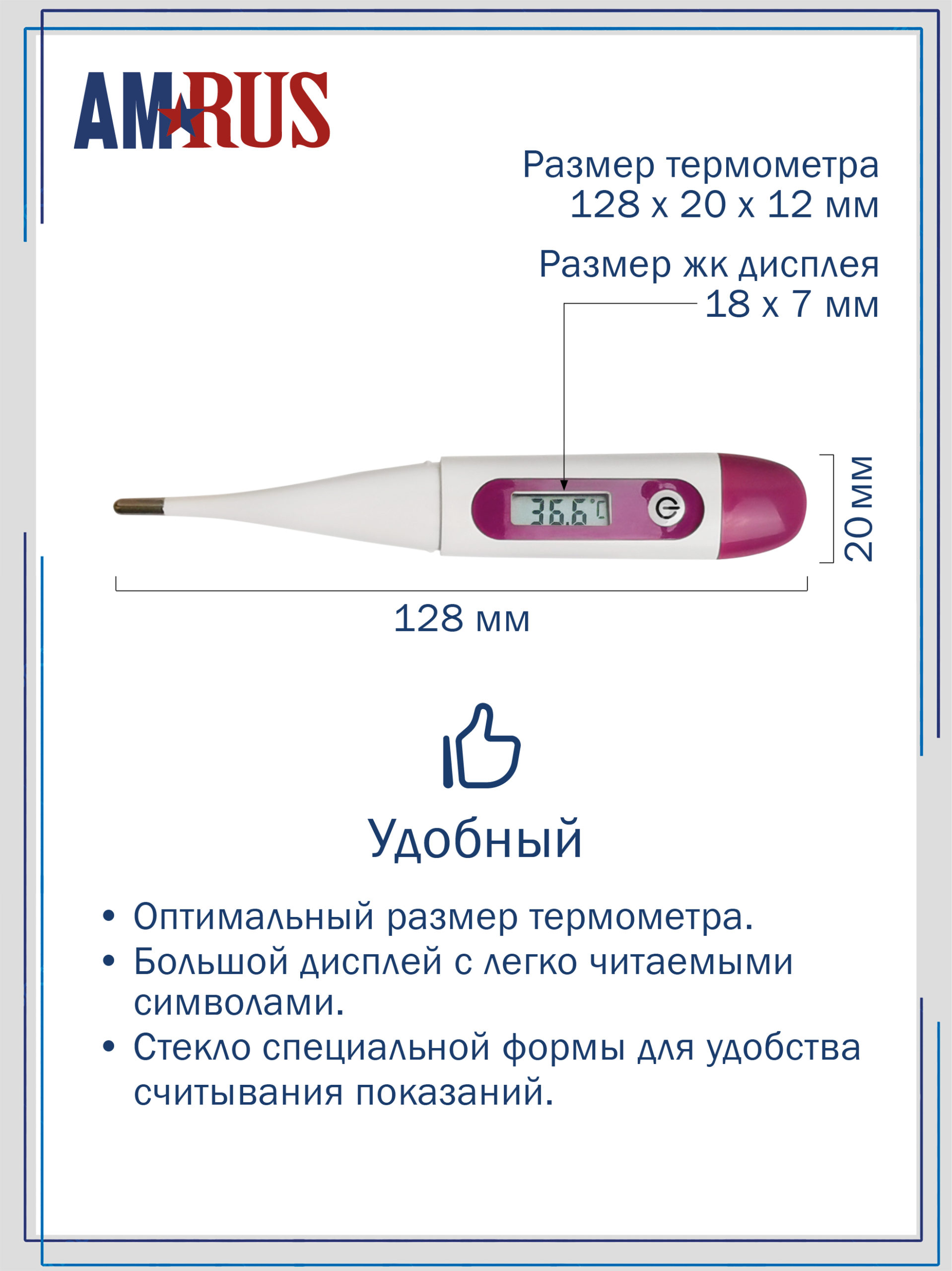 Термометр медицинский цифровой AMDT16 оснащен большим дисплеем с крупными легко читаемыми символами и стеклом специальной формы для удобства считывания показаний.