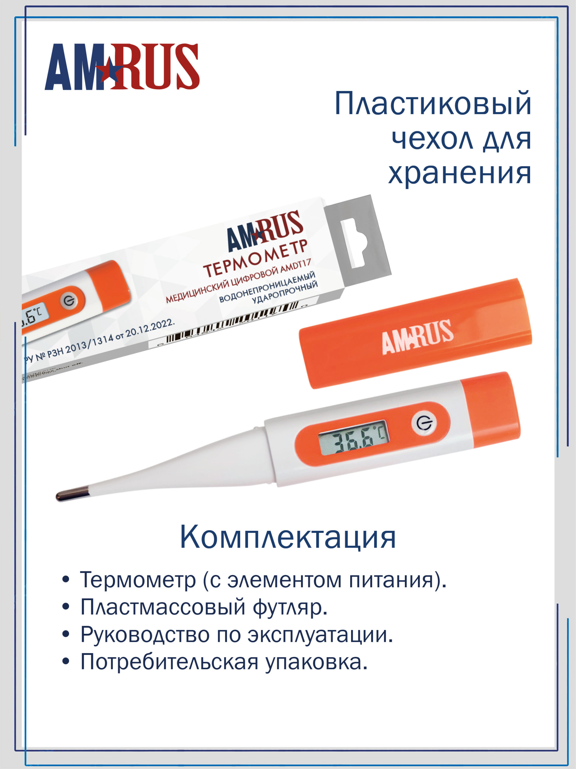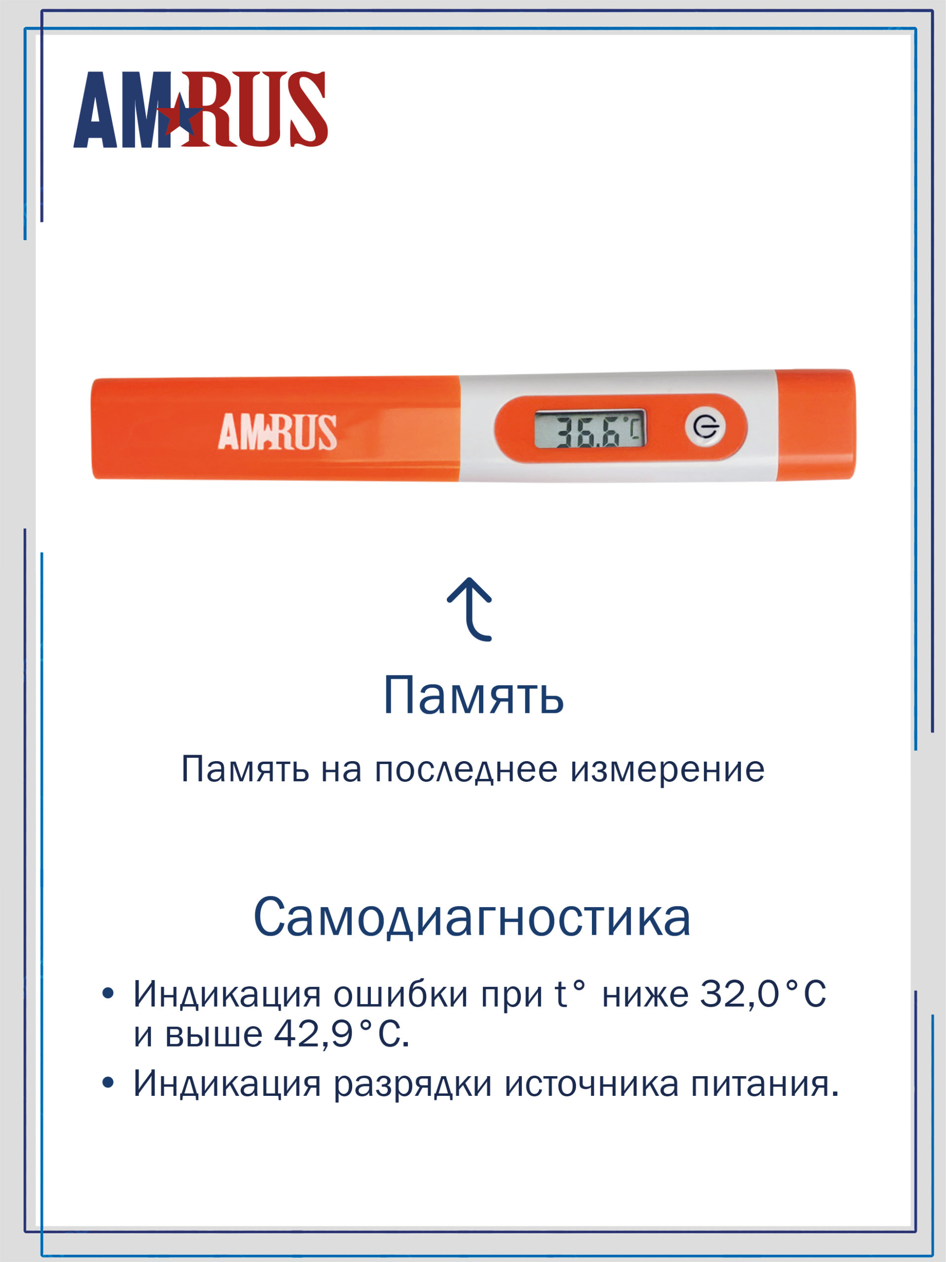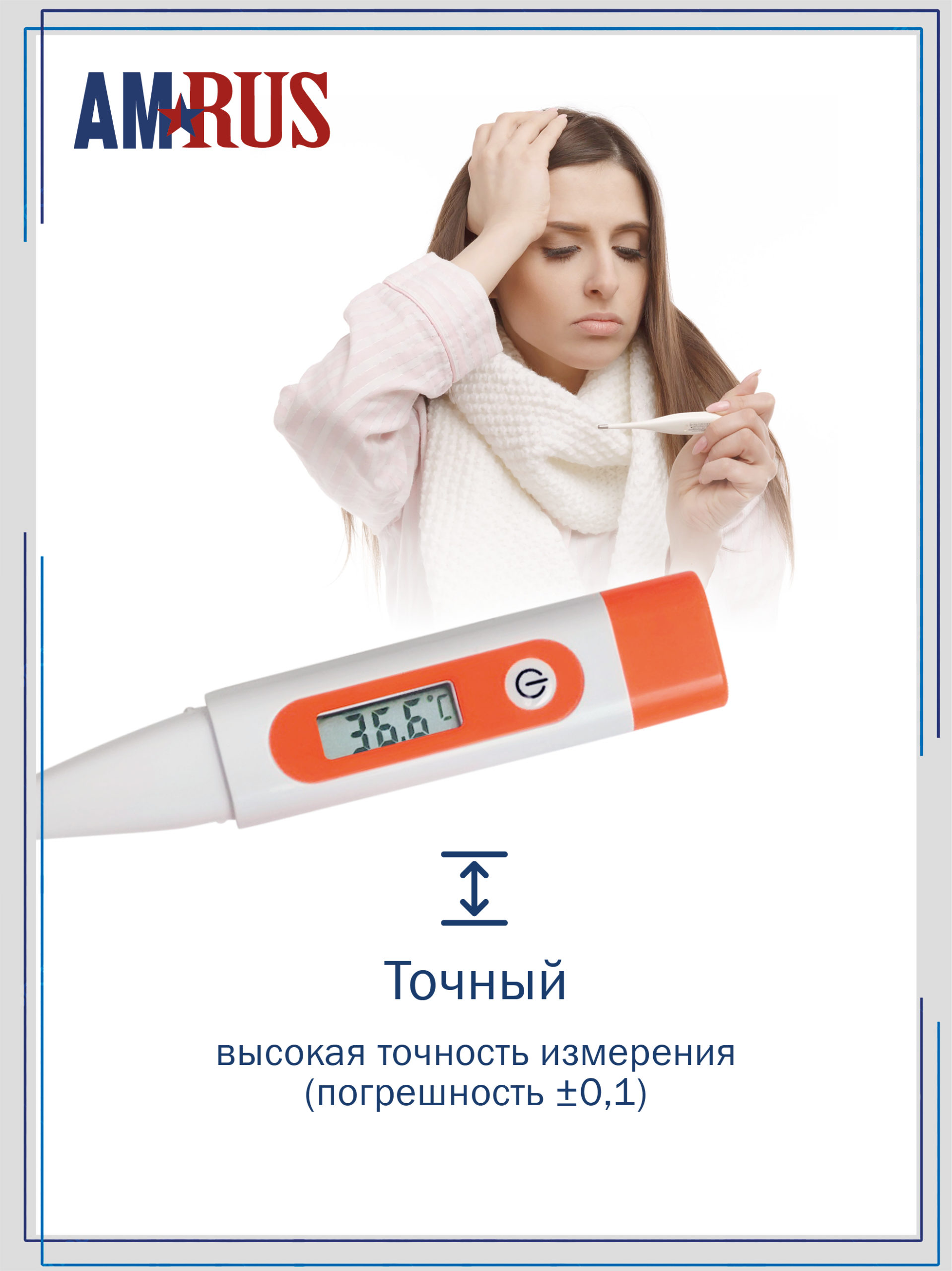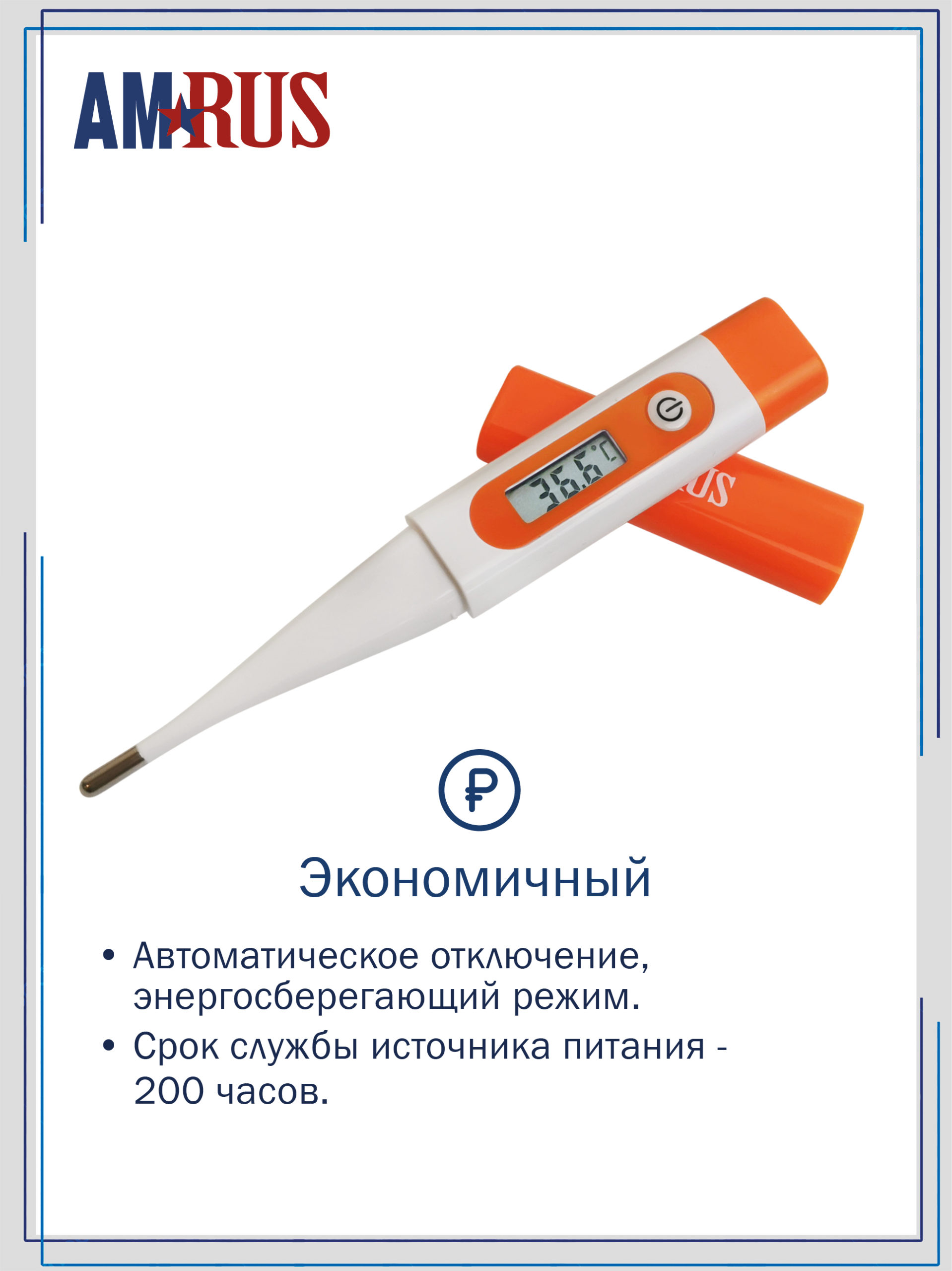 Термометр медицинский цифровой AMDT17 оснащен большим дисплеем с крупными легко читаемыми символами и стеклом специальной формы для удобства считывания показаний.