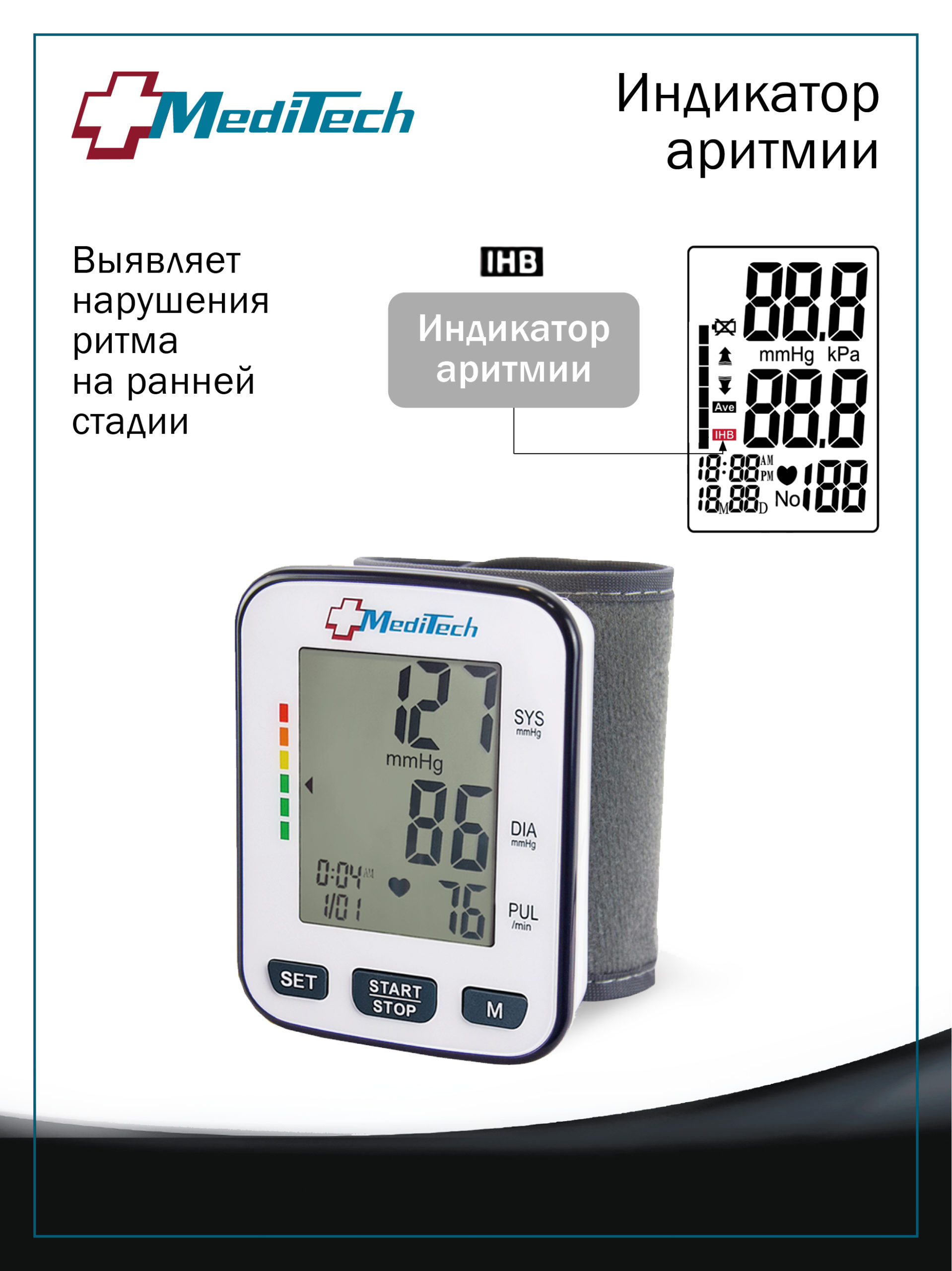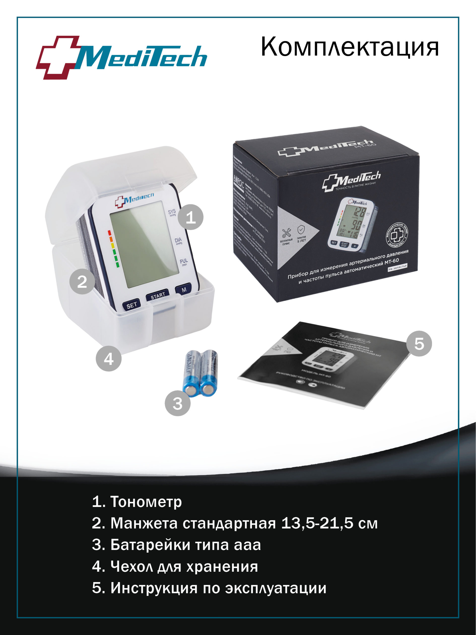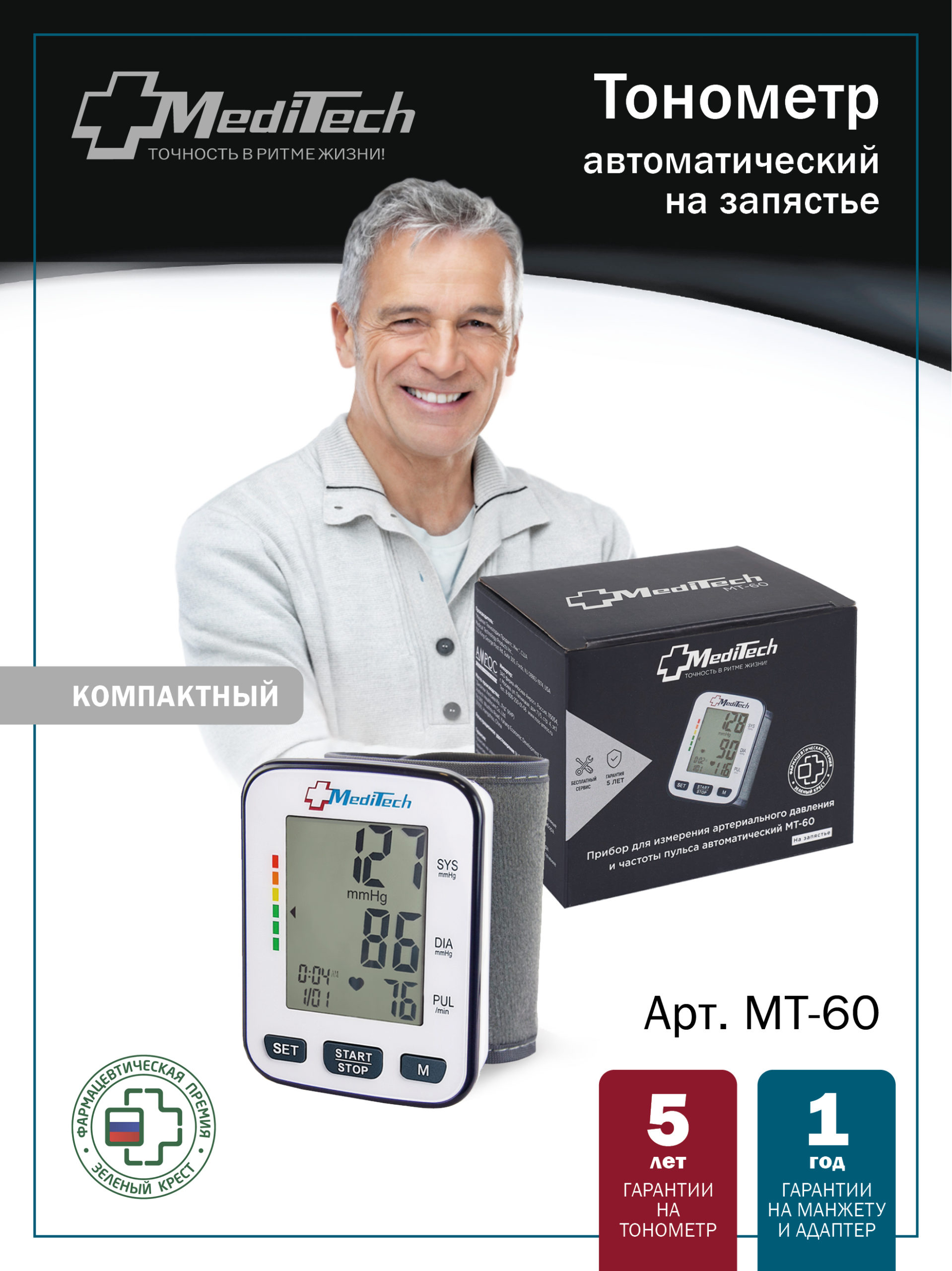 Автоматический тонометр на запястье MediTech МТ-60 серии FAMILY, с классической манжетой