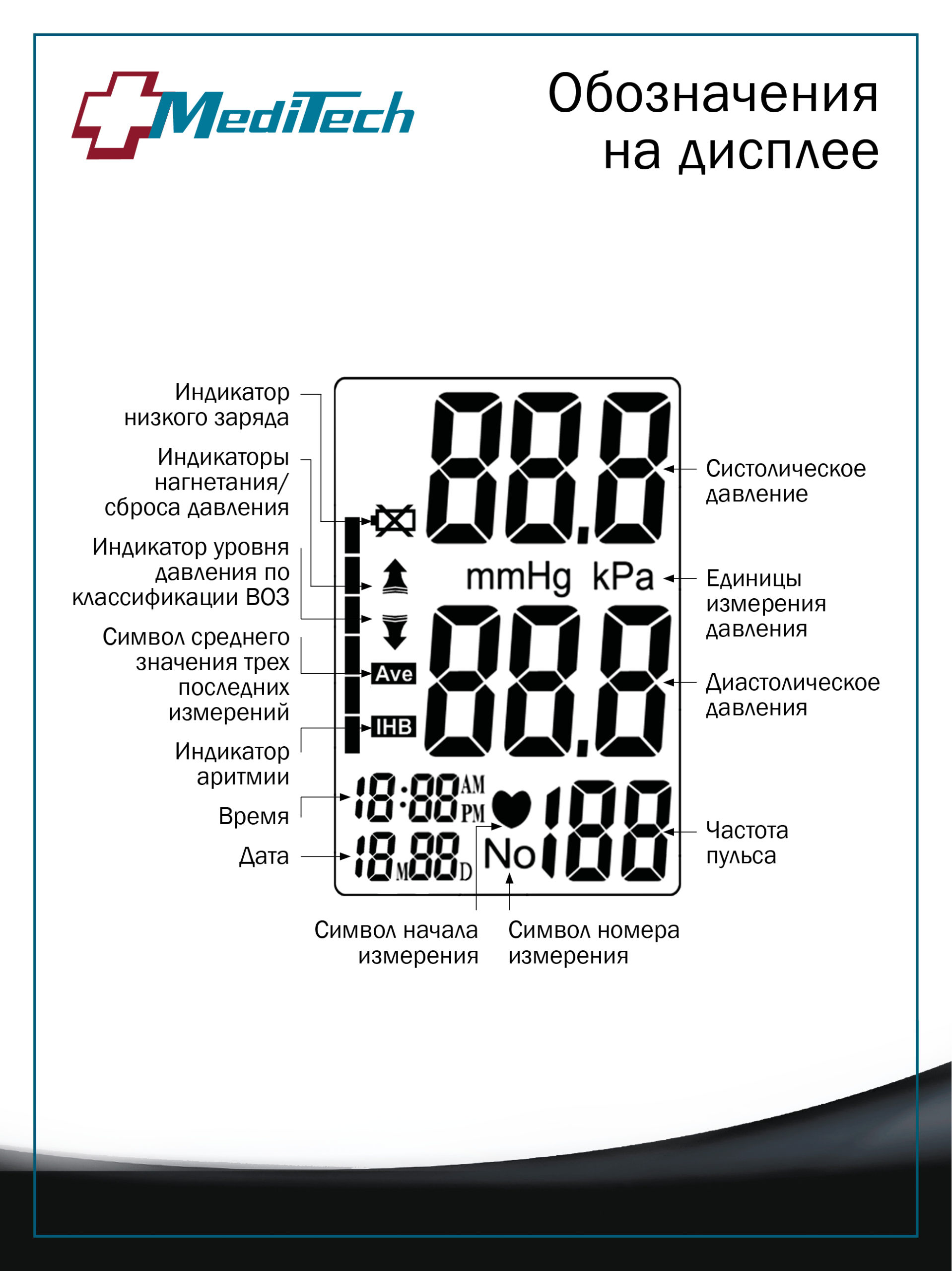 результата прибор рассчитывает среднее давление из 3 последних измерений;