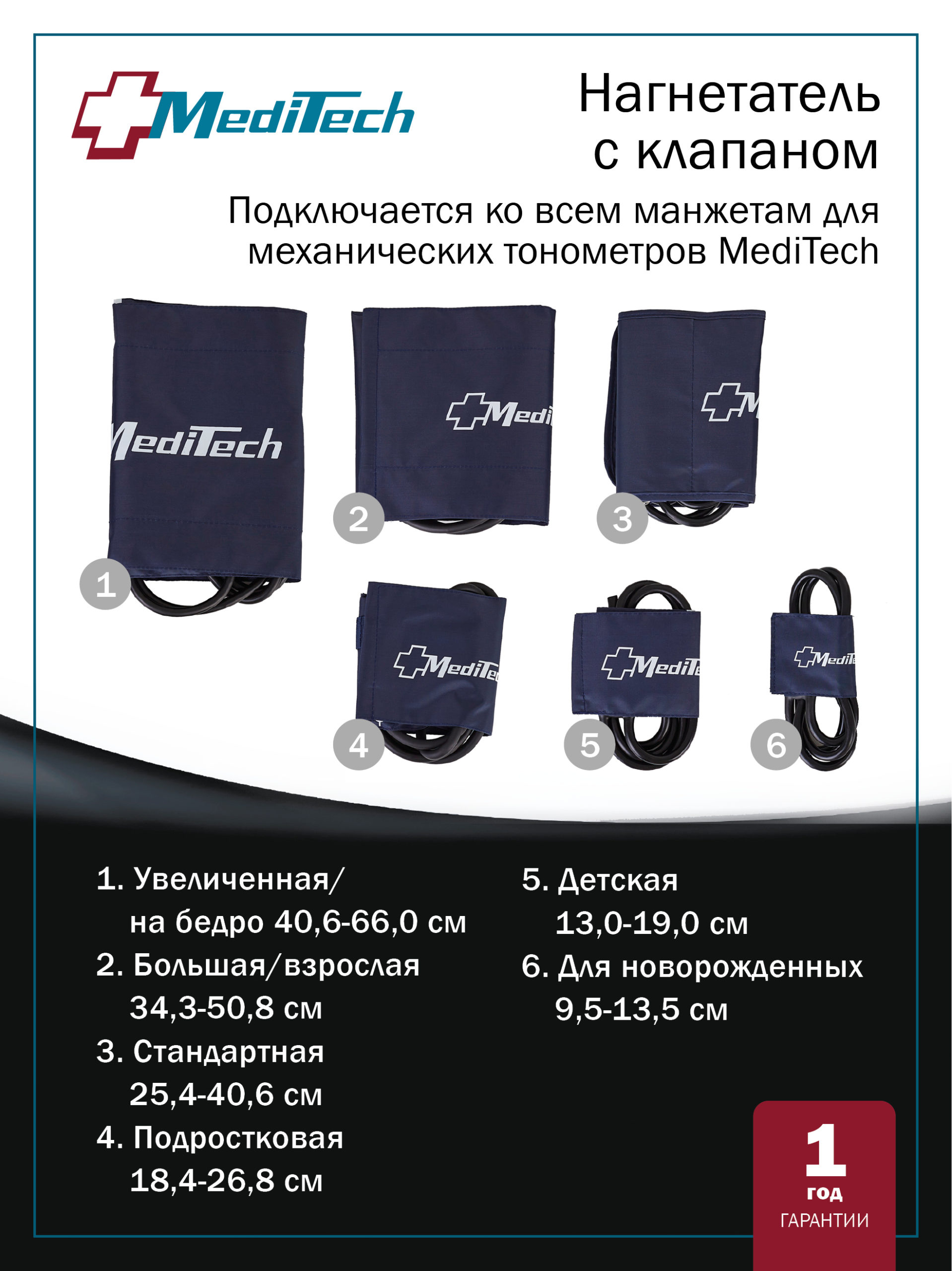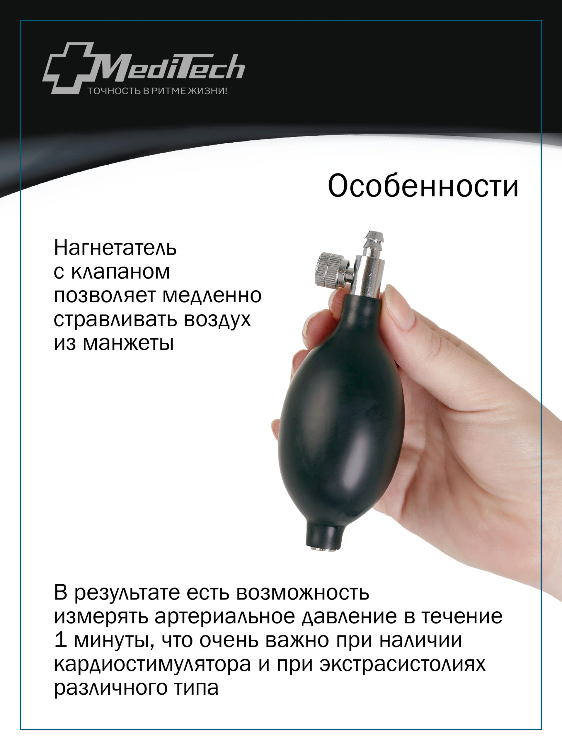 Подходит для всех моделей механических тонометров MediTech, имеющих нагнетатель (МТ-