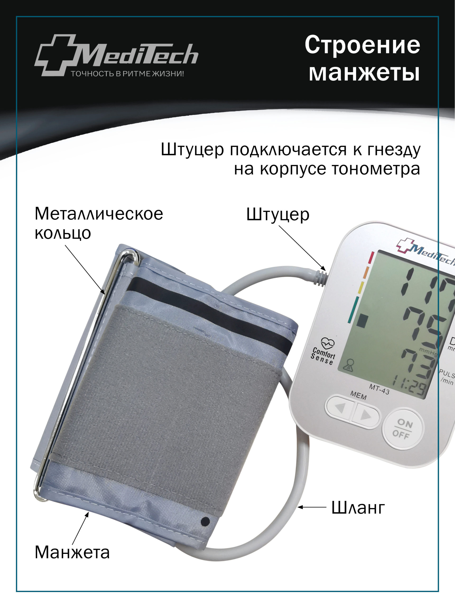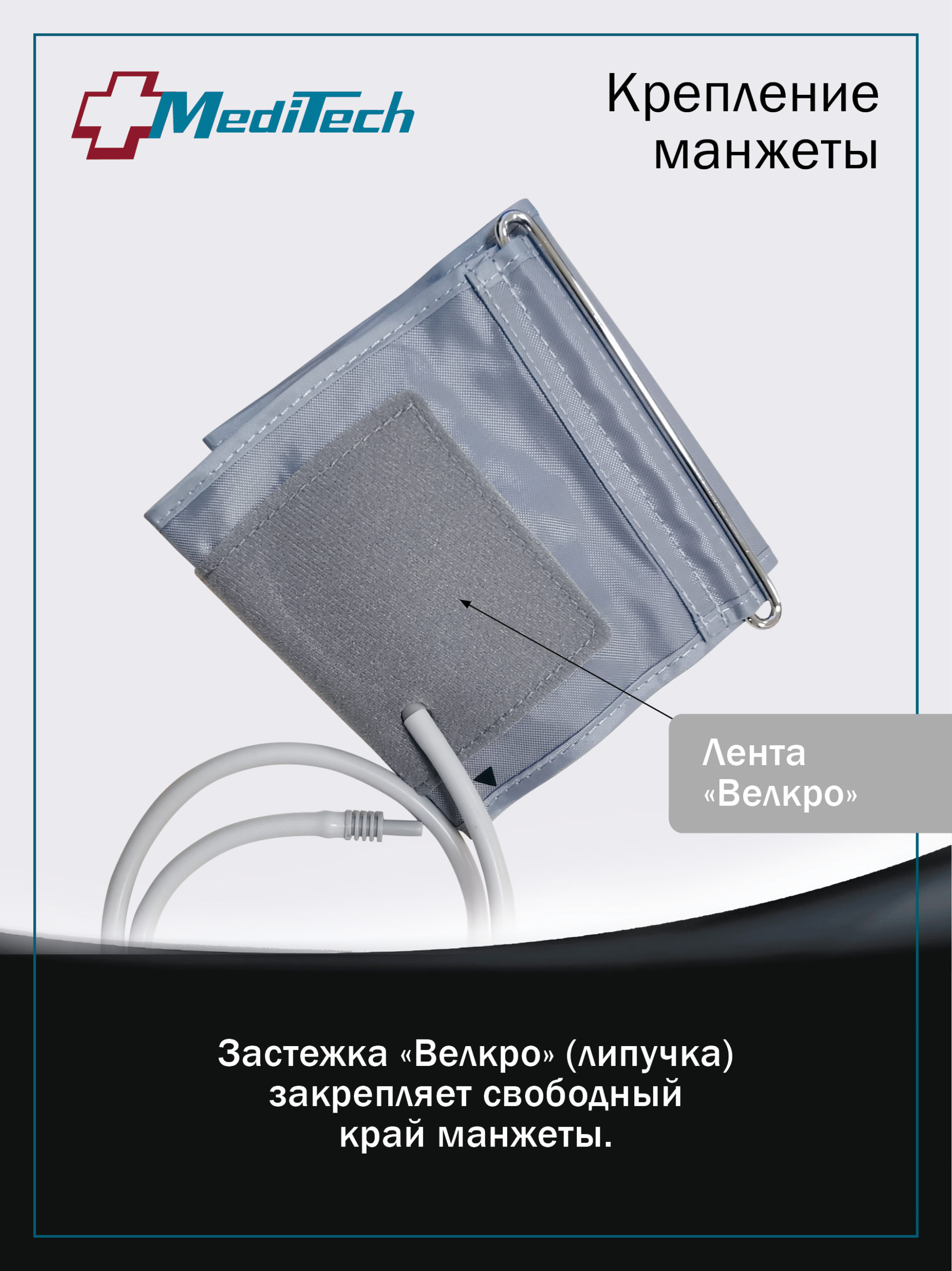 Манжеты компрессионные MediTech предназначены для автоматических тонометров моделей MT-32, MT-42, MT-43 и используются для измерения артериального давления и частоты пульса осциллометрическим способом.