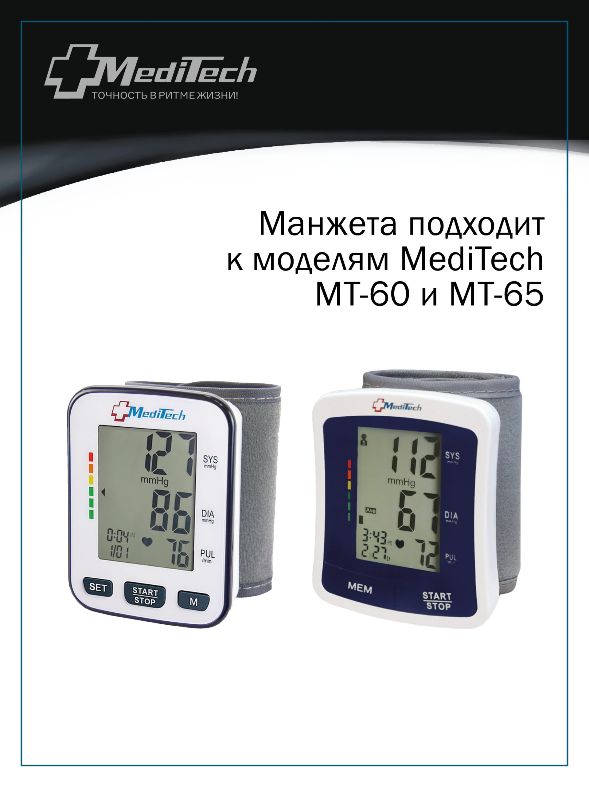 MediTech серии FAMILY (модели МТ-60 и МТ-65). Пневмокамера вложена в нейлоновую манжету с
