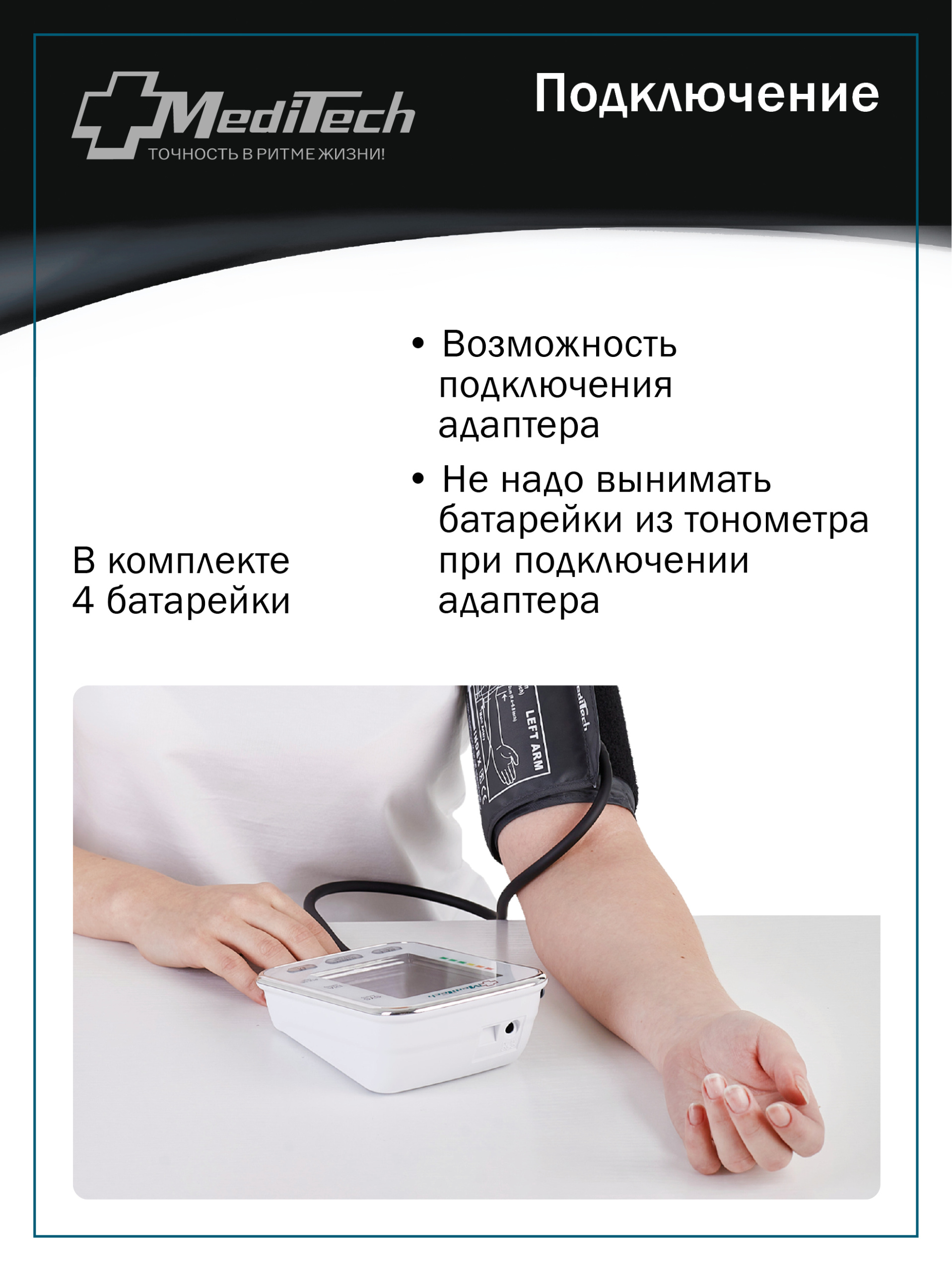 • Возможность подключения манжет разного размера, дополнительные манжеты приобретаются