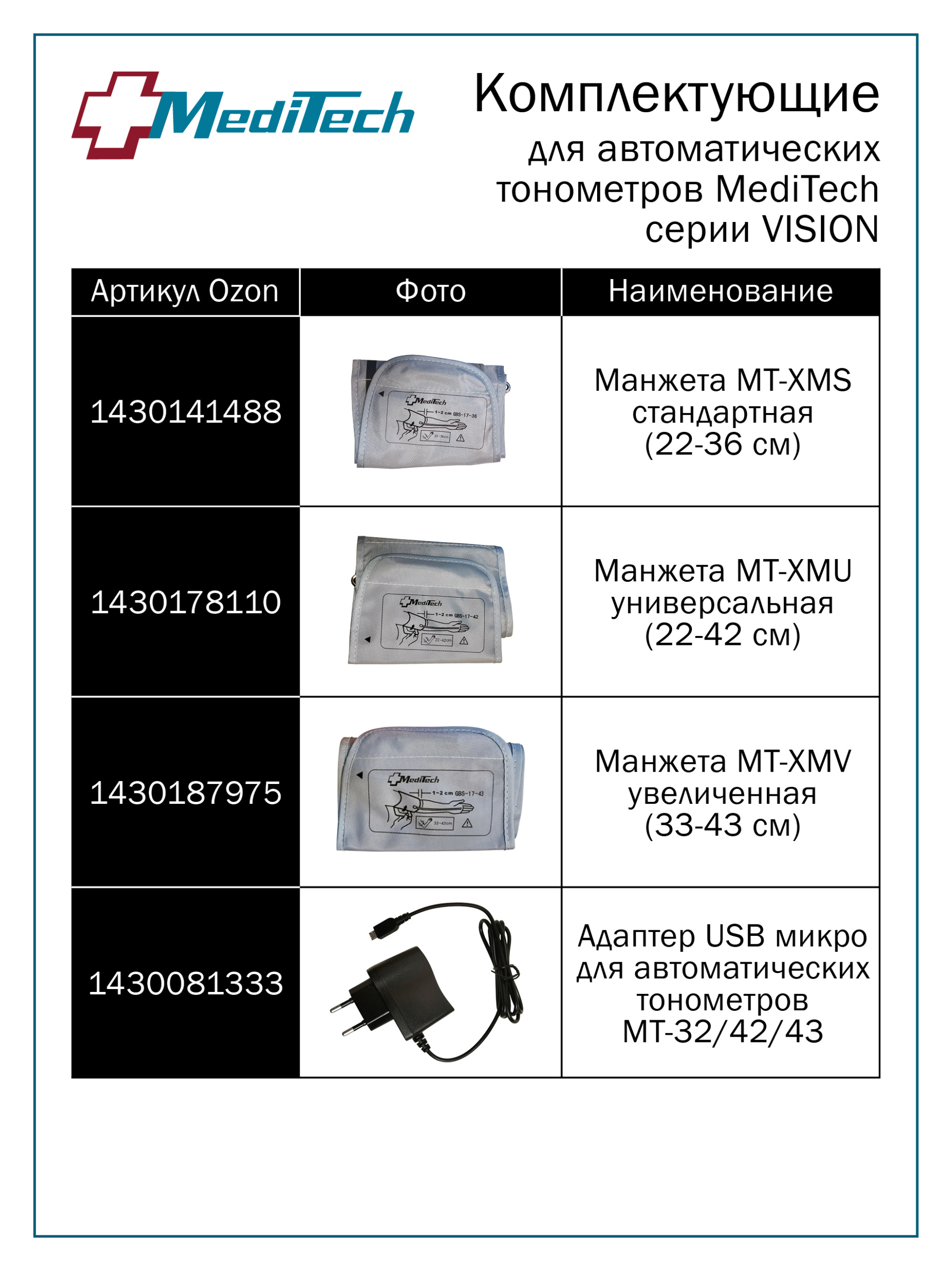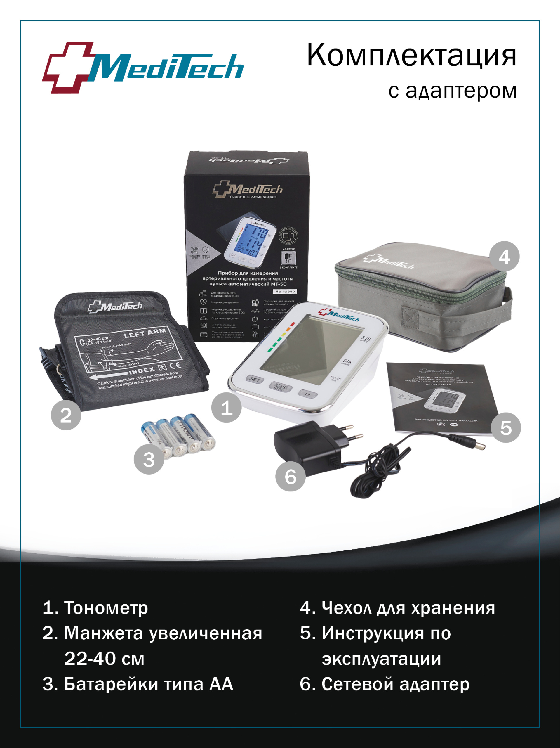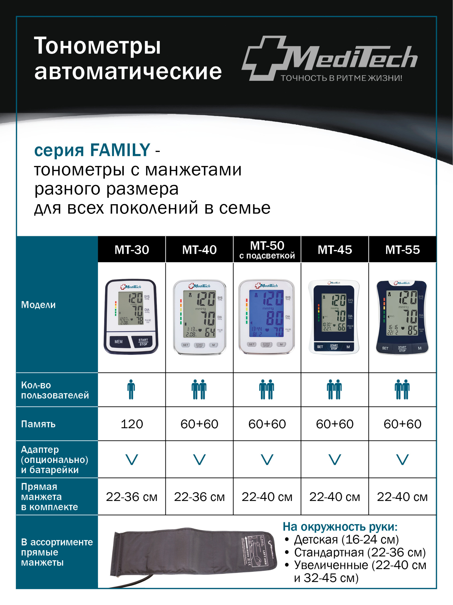 • В комплект входит увеличенная манжета прямого кроя на окружность руки 22-40 см.
