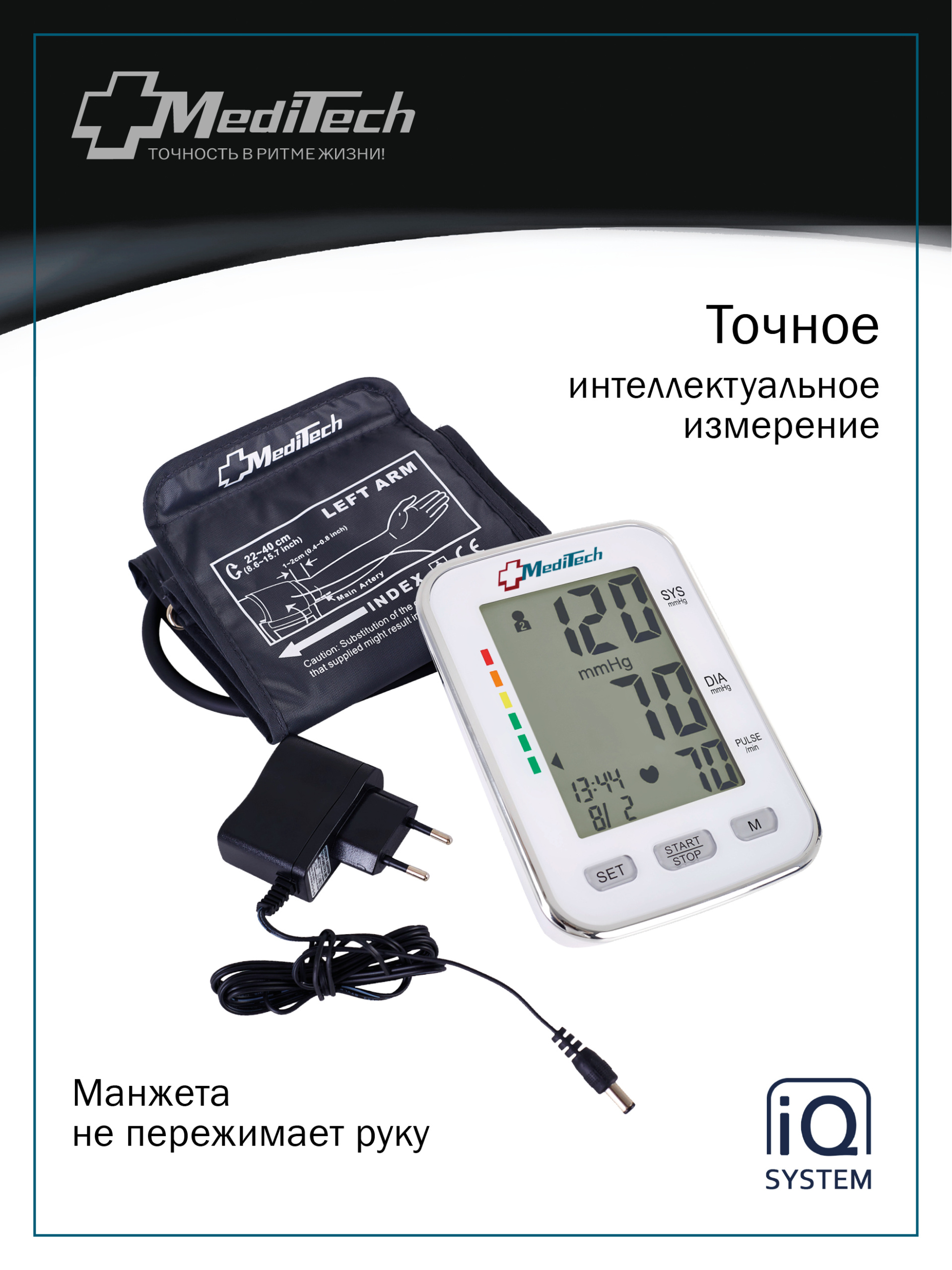 снабжен интеллектуальной системой измерения IQ System и предназначен для измерения систолического,