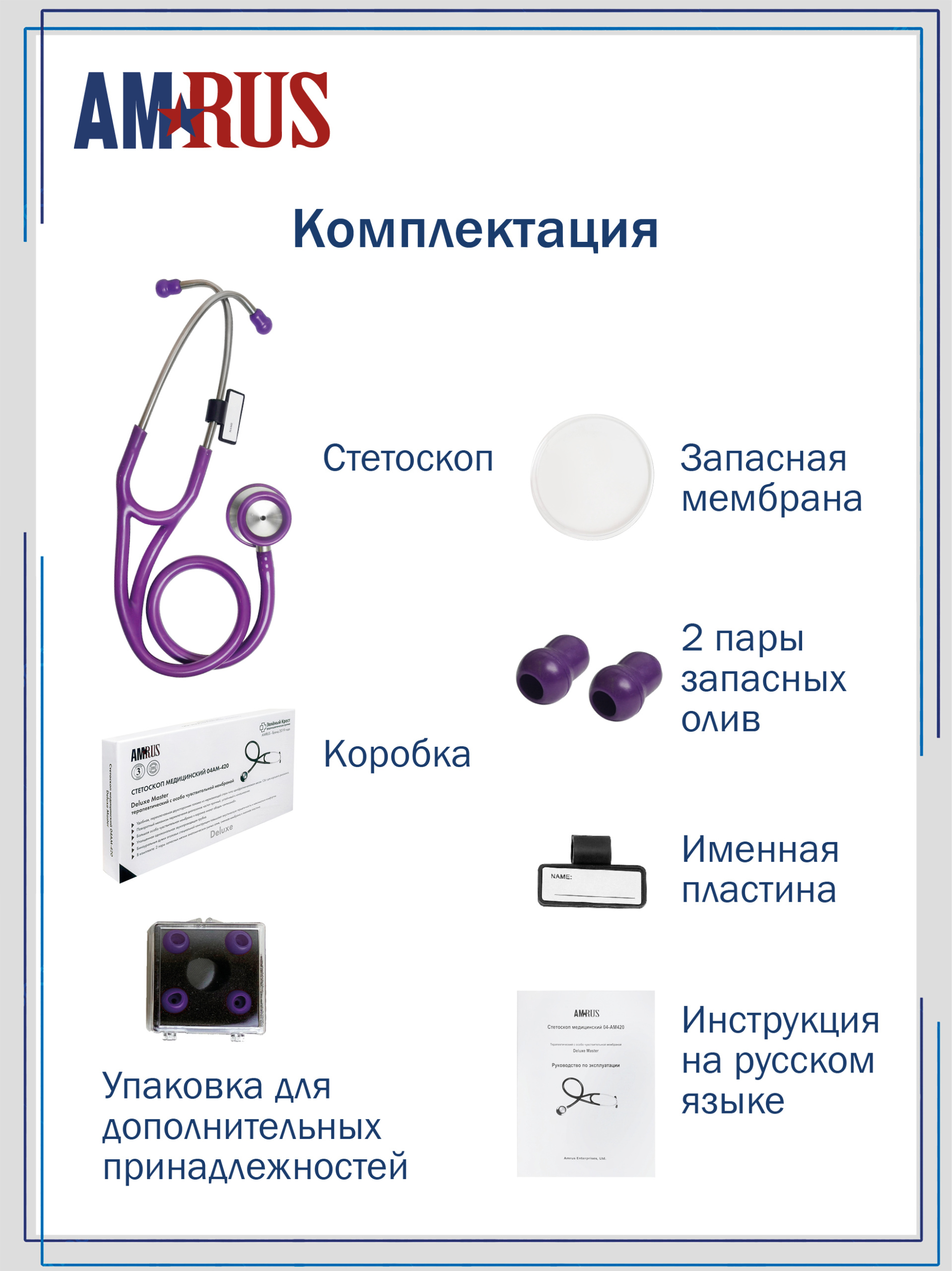 Усовершенствованный прибор категории «Люкс» предназначен для прослушивания сердца, легких и других внутренних органов у взрослых пациентов. Удобная переключаемая двусторонняя головка из нержавеющей стали типа «диафрагма-колокол» весом 126г. обеспечивает отличный резонанс. Поворотный механизм переключения диапазонов частот прочный, устойчив к изнашиванию. Большая особо чувствительная мембрана из Fiberglass* и воронка имеют ободок «антиозноб». Утолщенная одноканальная звукопроводящая трубка обеспечивает звукоизоляцию от внешних шумов. Бинауральные дужки оголовья специальной конструкции повышают акустическую герметичность и максимально комфортны. В комплекте 2 пары запасных мягких анатомических ушных олив и сменная мембрана. Мягкие ушные оливы закругленной формы для комфортной изоляции внешнего слухового канала. Именная пластина в комплекте.