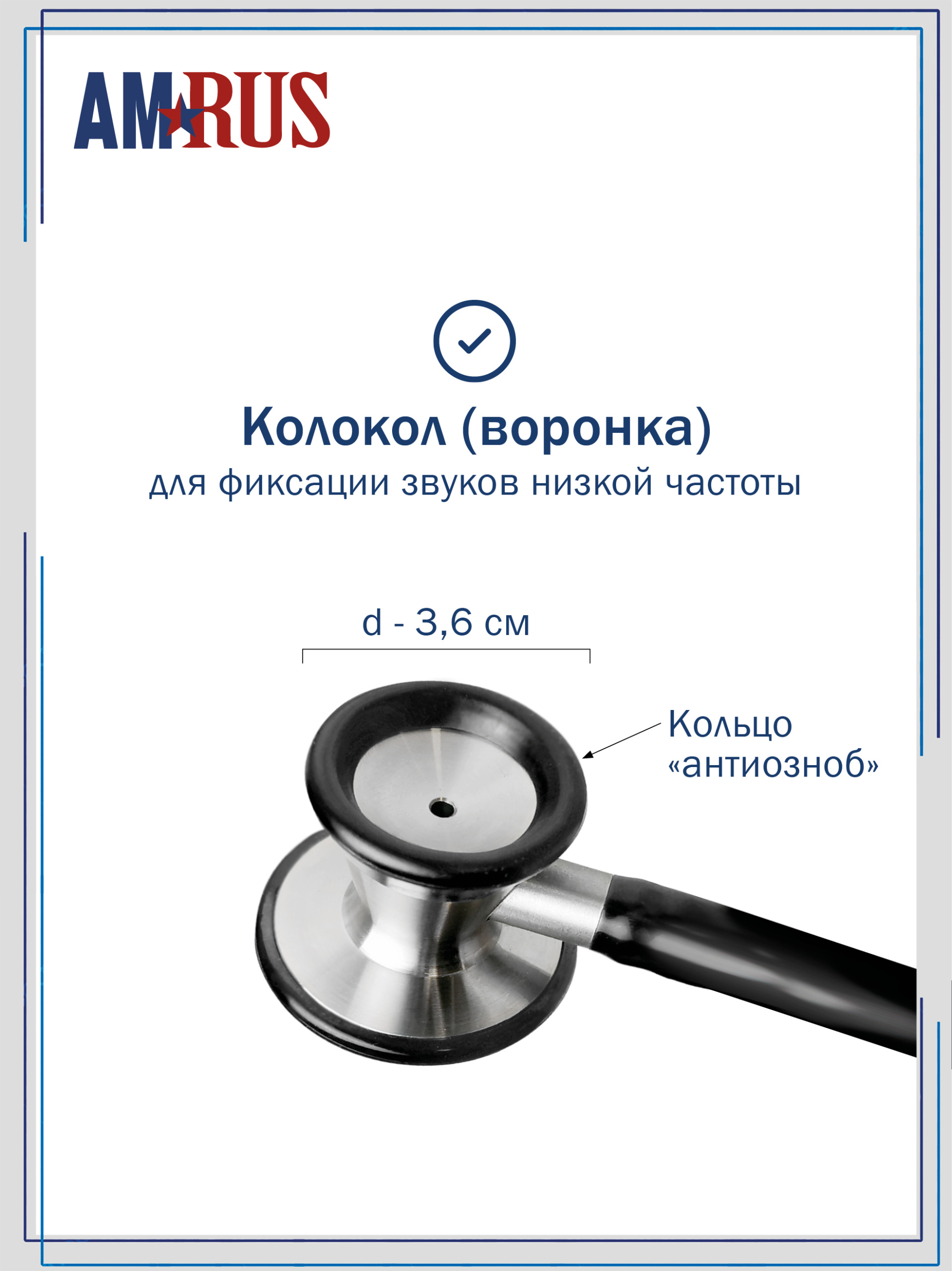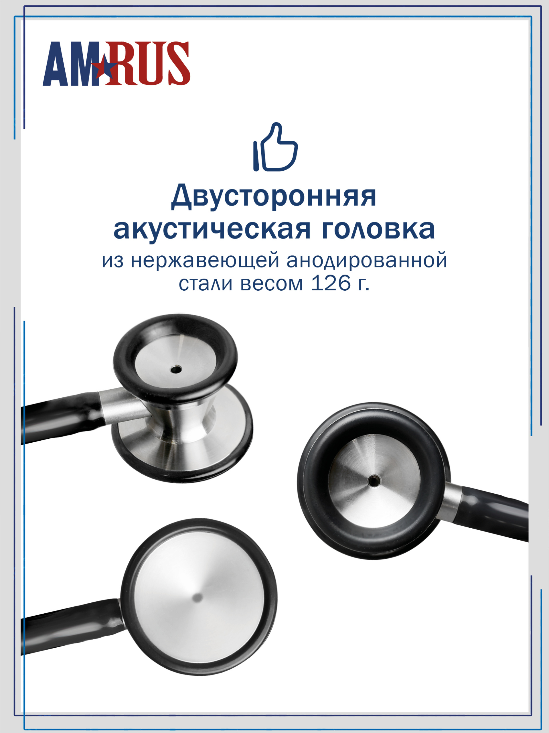 04AM-420 Deluxe Master_ BK AMRUS Стетоскоп медицинский терапевтический двухсторонний с особо чувствительной мембраной