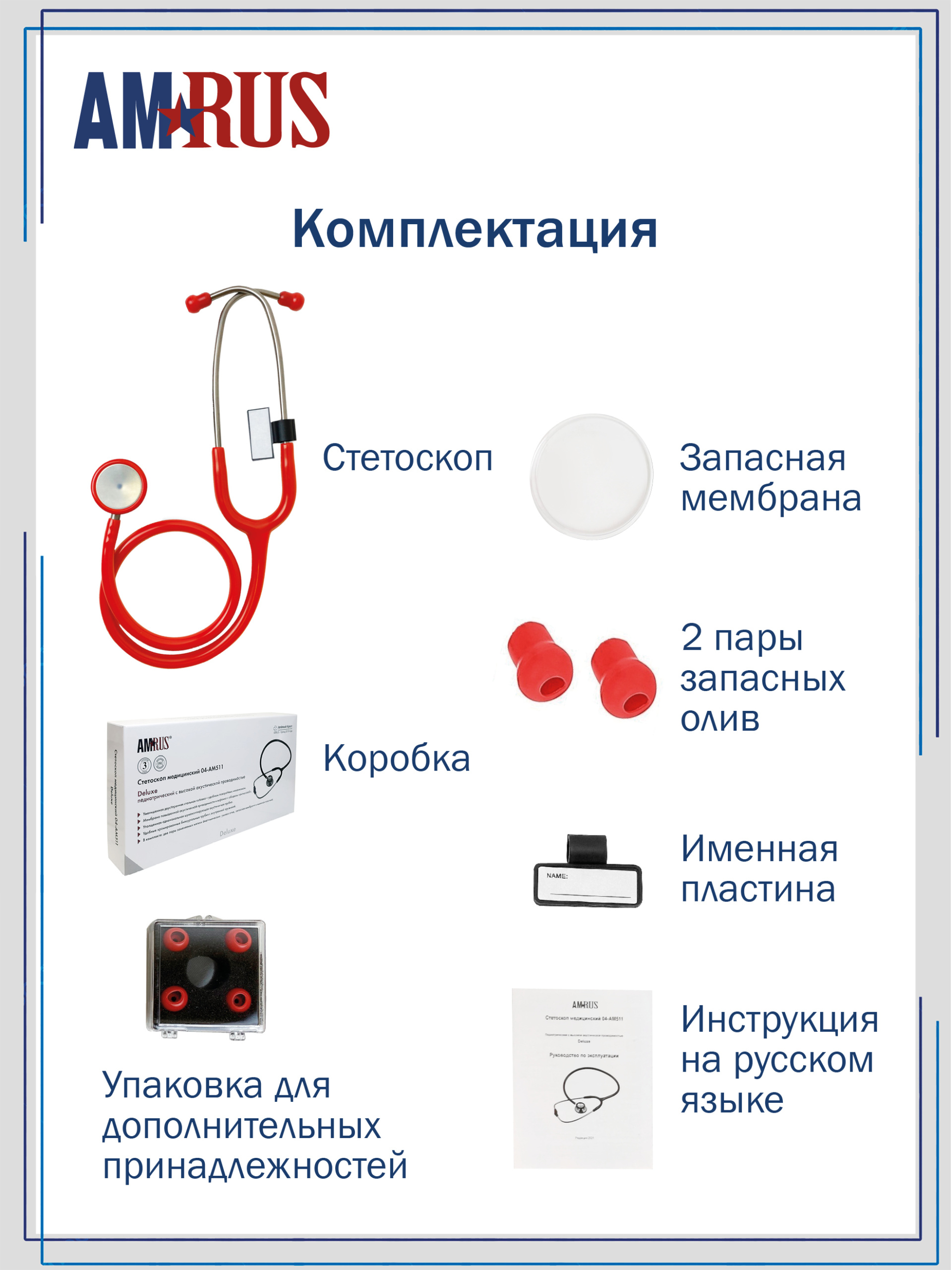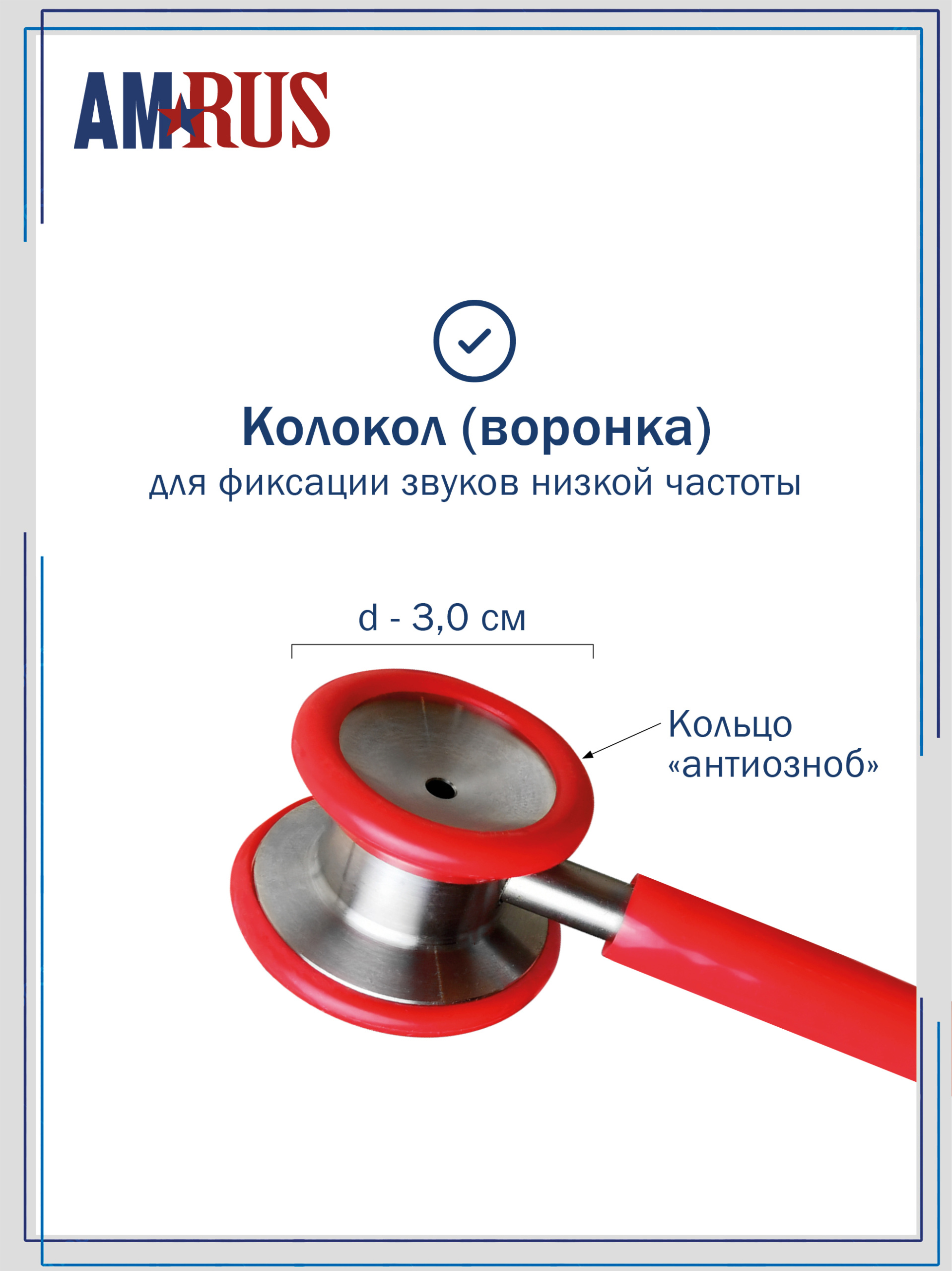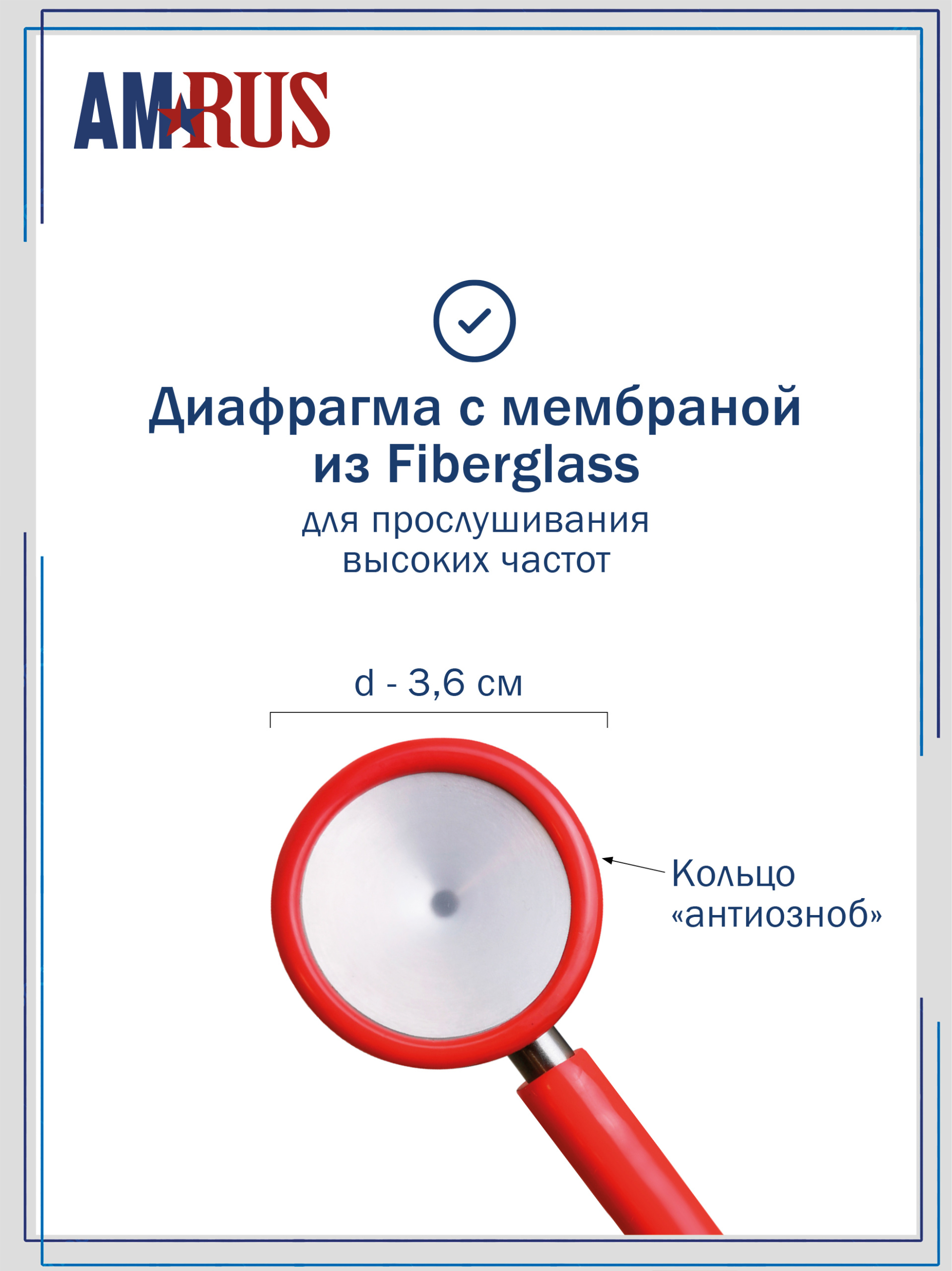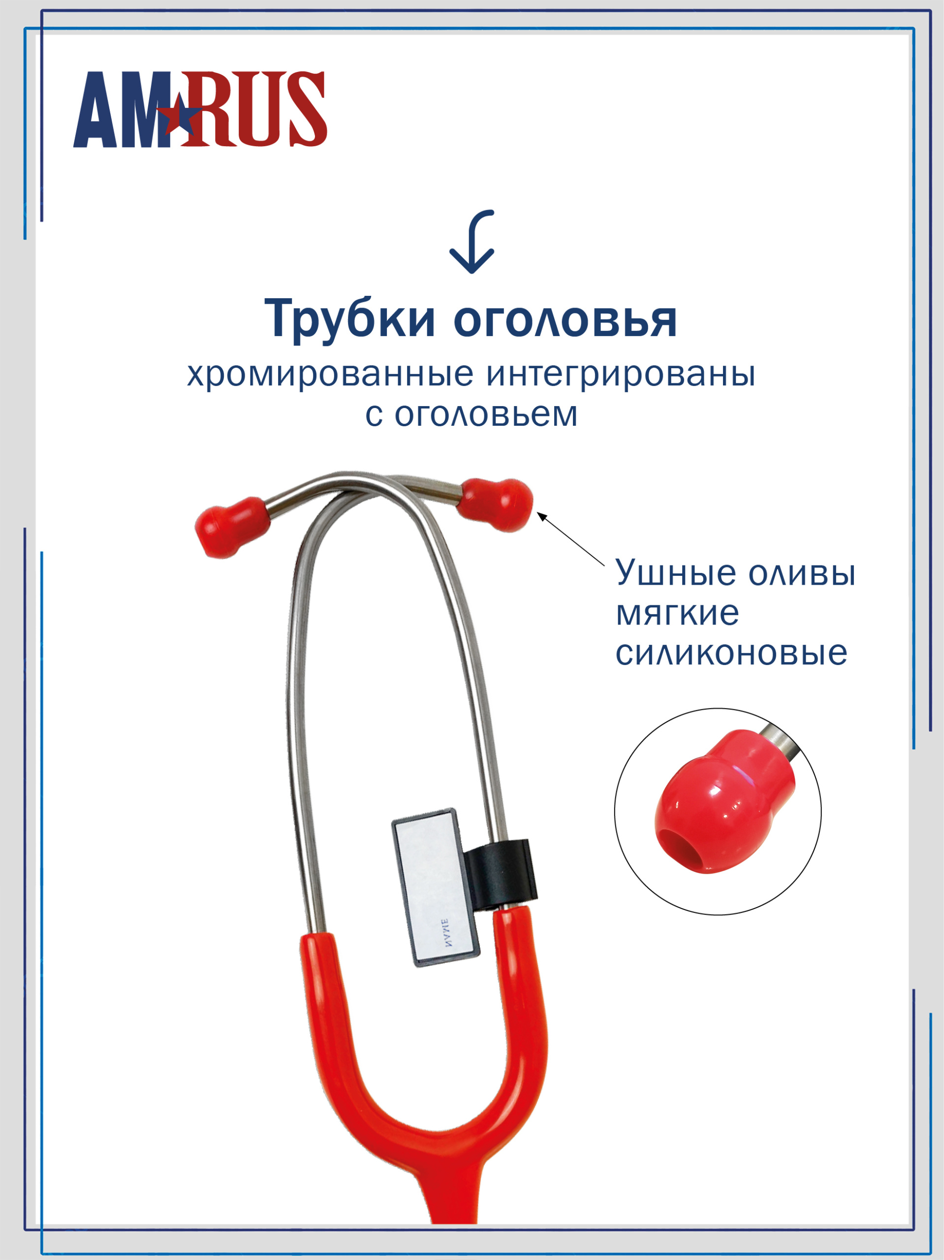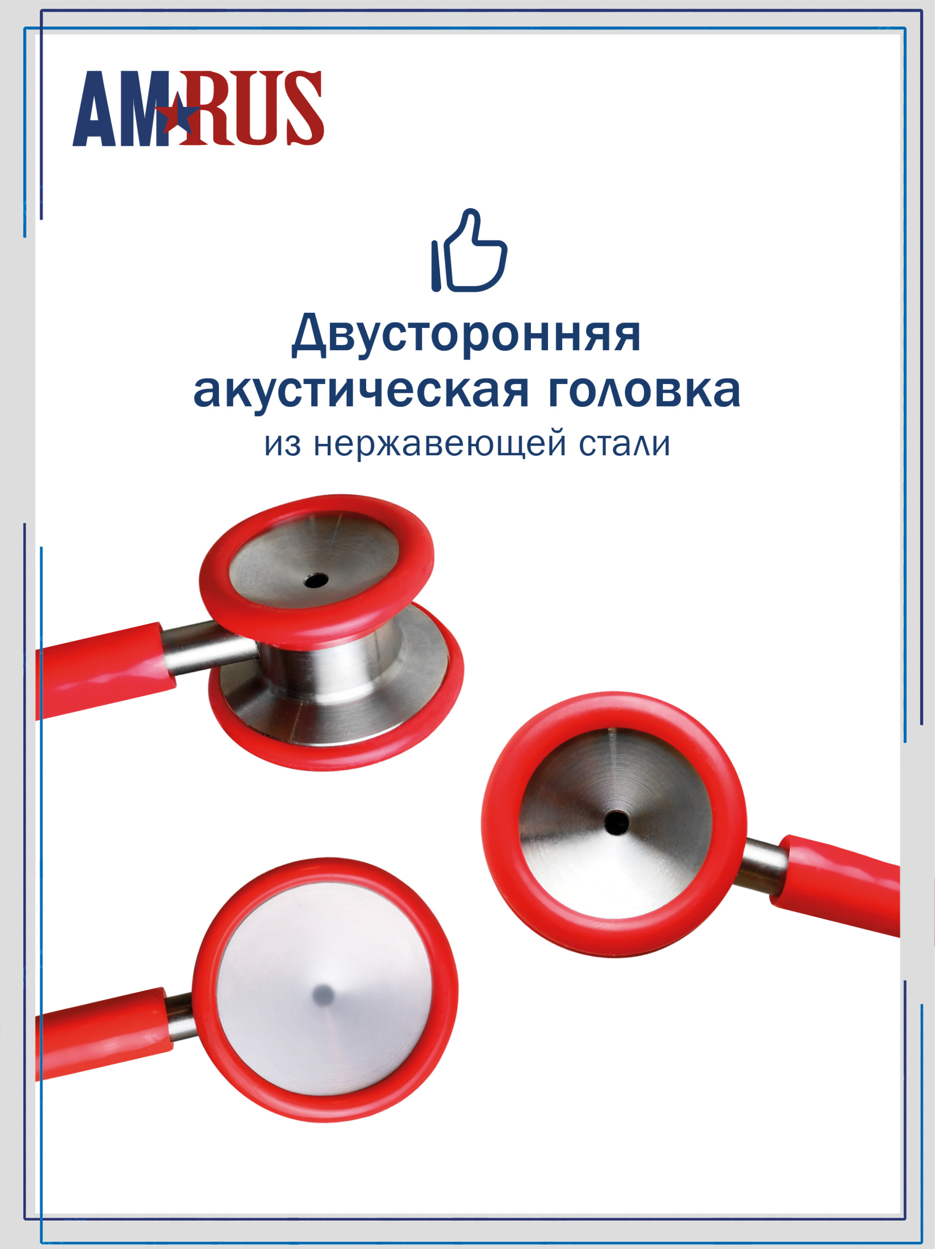 Не вызывающее озноба кольцо расположено с обеих сторон головки. Удобный поворотный механизм переключения между рабочими поверхностями воронки и мембраны. Утолщенные звукопроводящие трубки обеспечивают наилучшую изоляцию от посторонних шумов. Внутренняя пружина улучшает акустические свойства стетоскопа. Мягкие ушные оливы закругленной формы — для комфортной изоляции внешнего слухового канала. Две пары заменяемых ушных олив и заменяемая мембрана, а также именная пластина в комплекте.