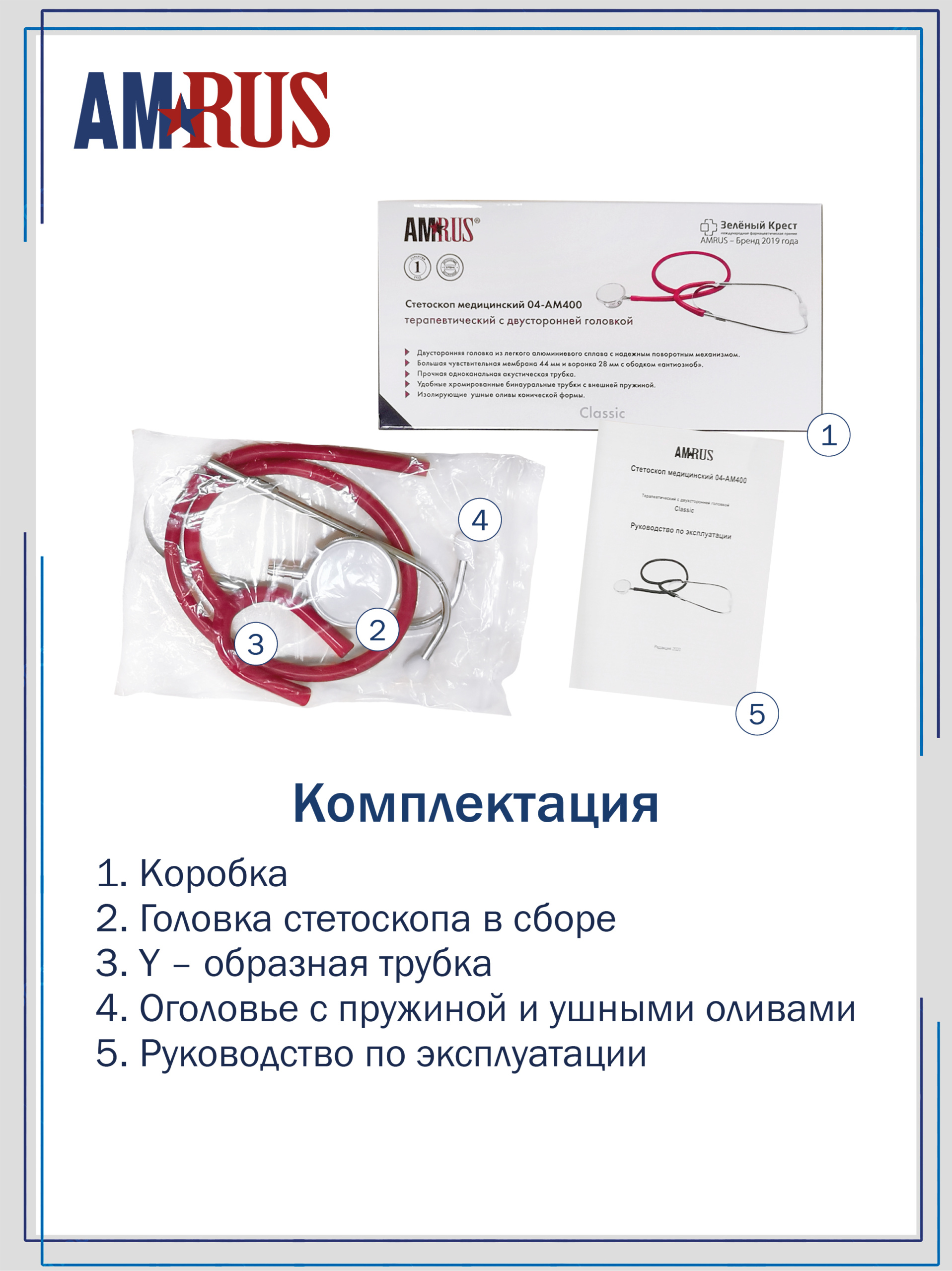 04AM-400_RD AMRUS Стетоскоп медицинский терапевтический двусторонний