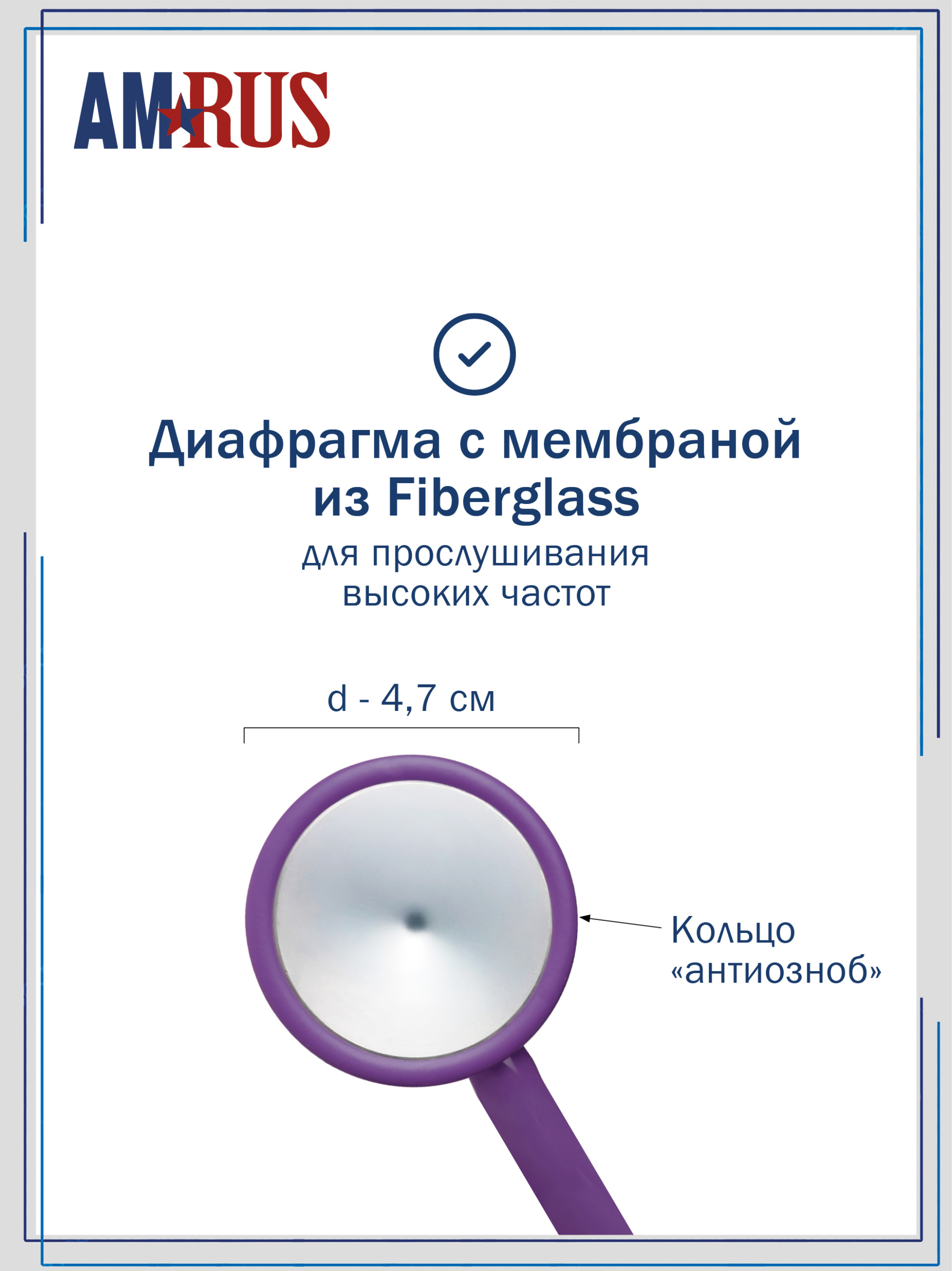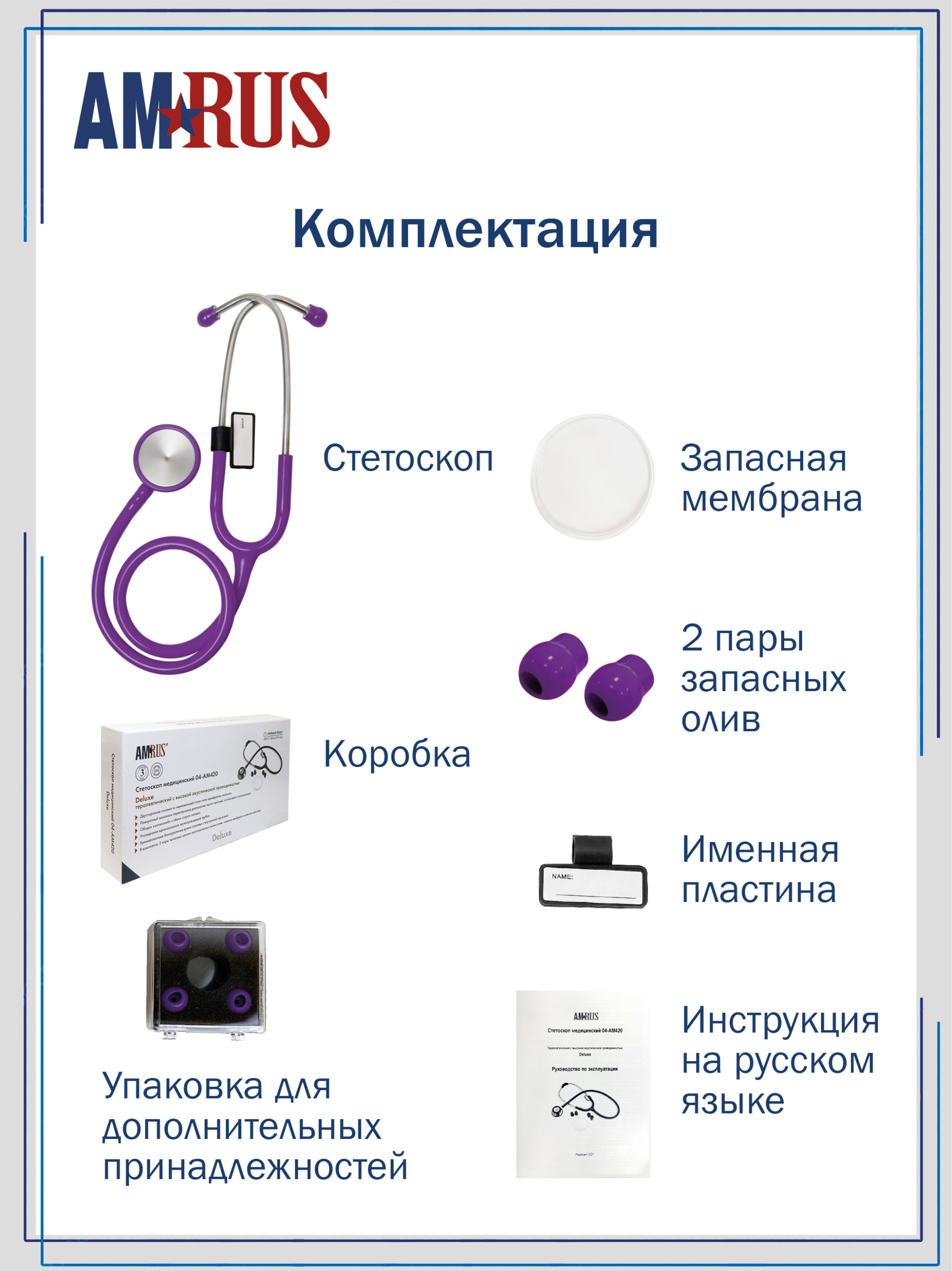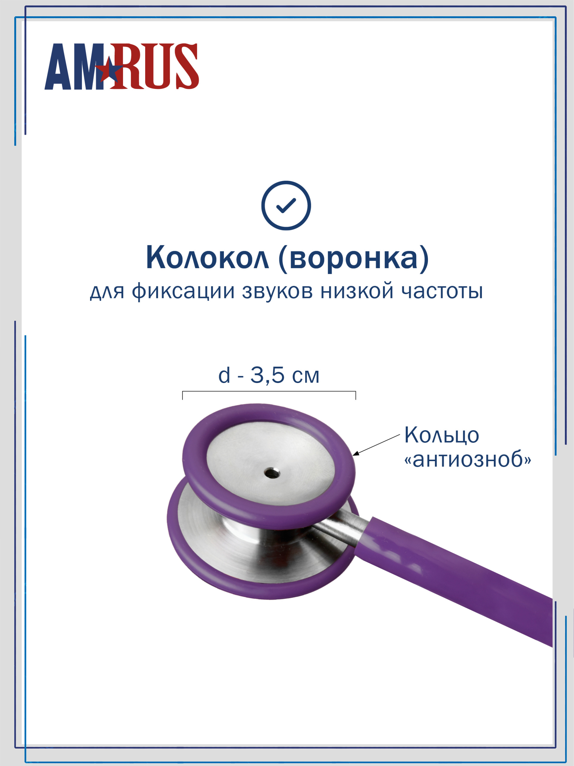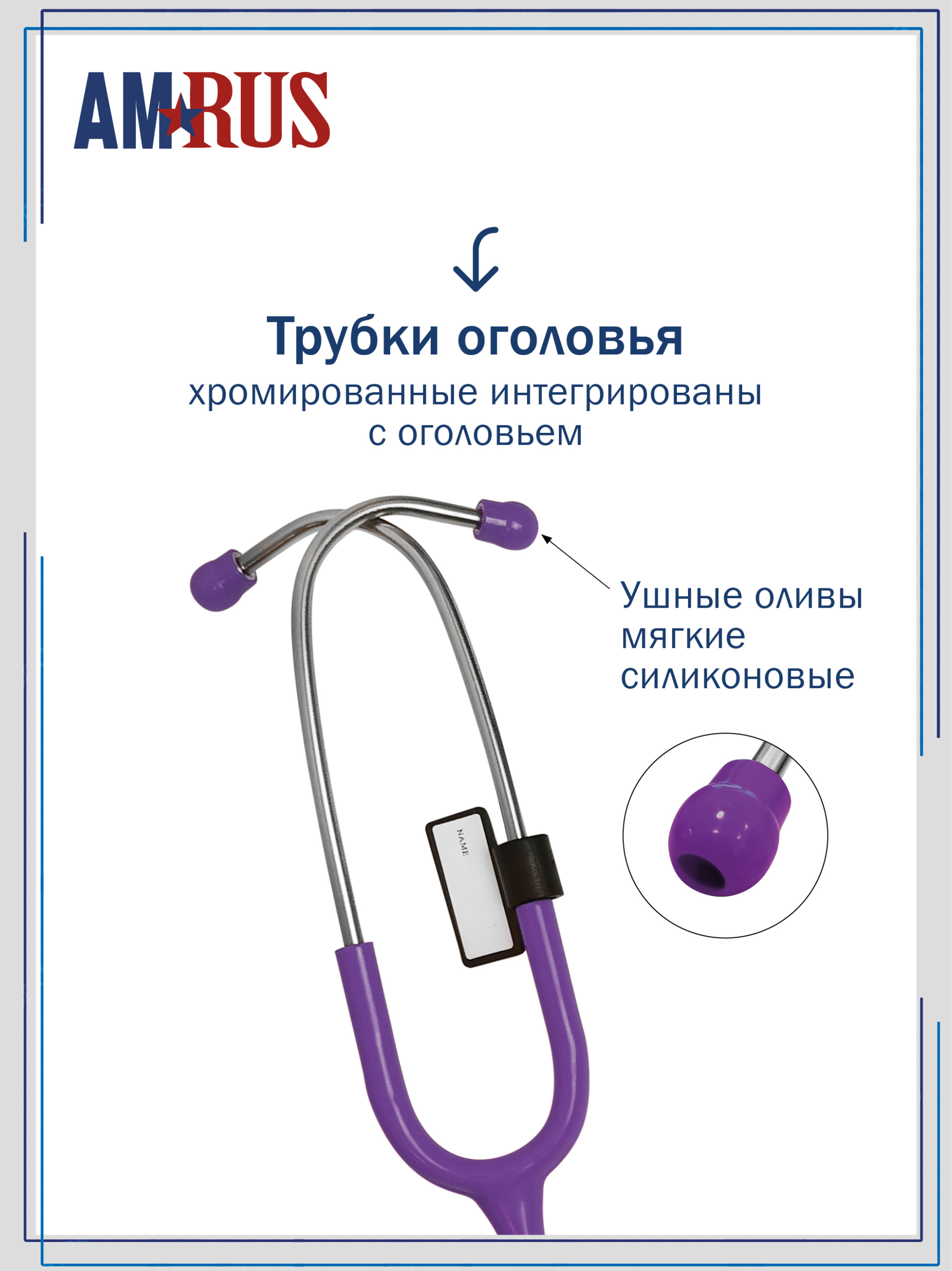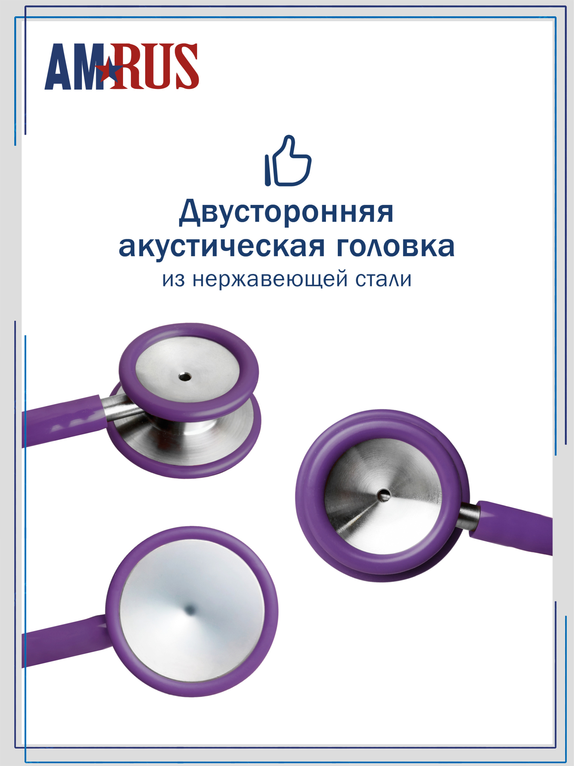 АМ420_фиолетовый Deluxe AMRUS Стетоскоп медицинский терапевтический двухсторонний с высокой акустической проводимостью