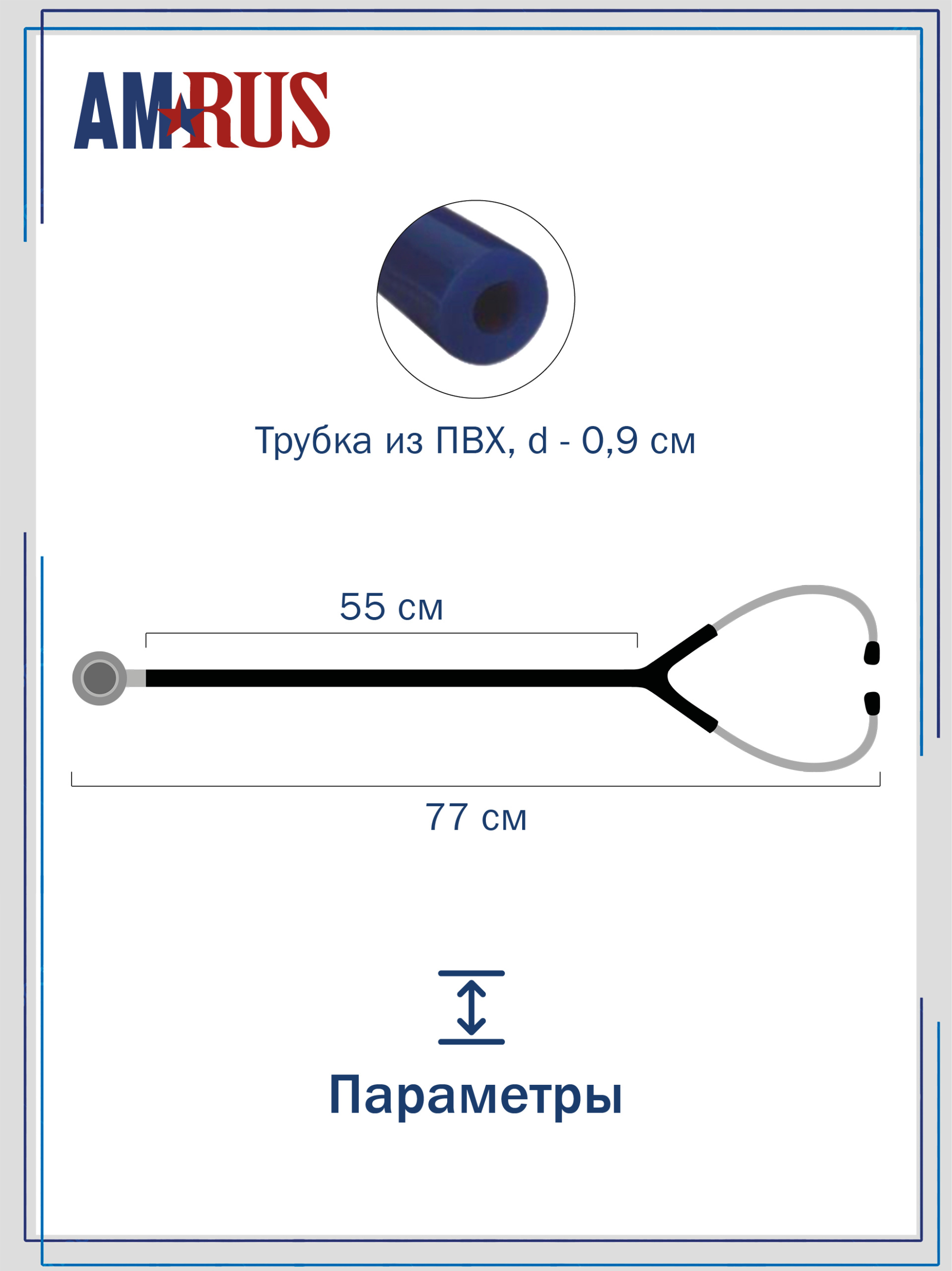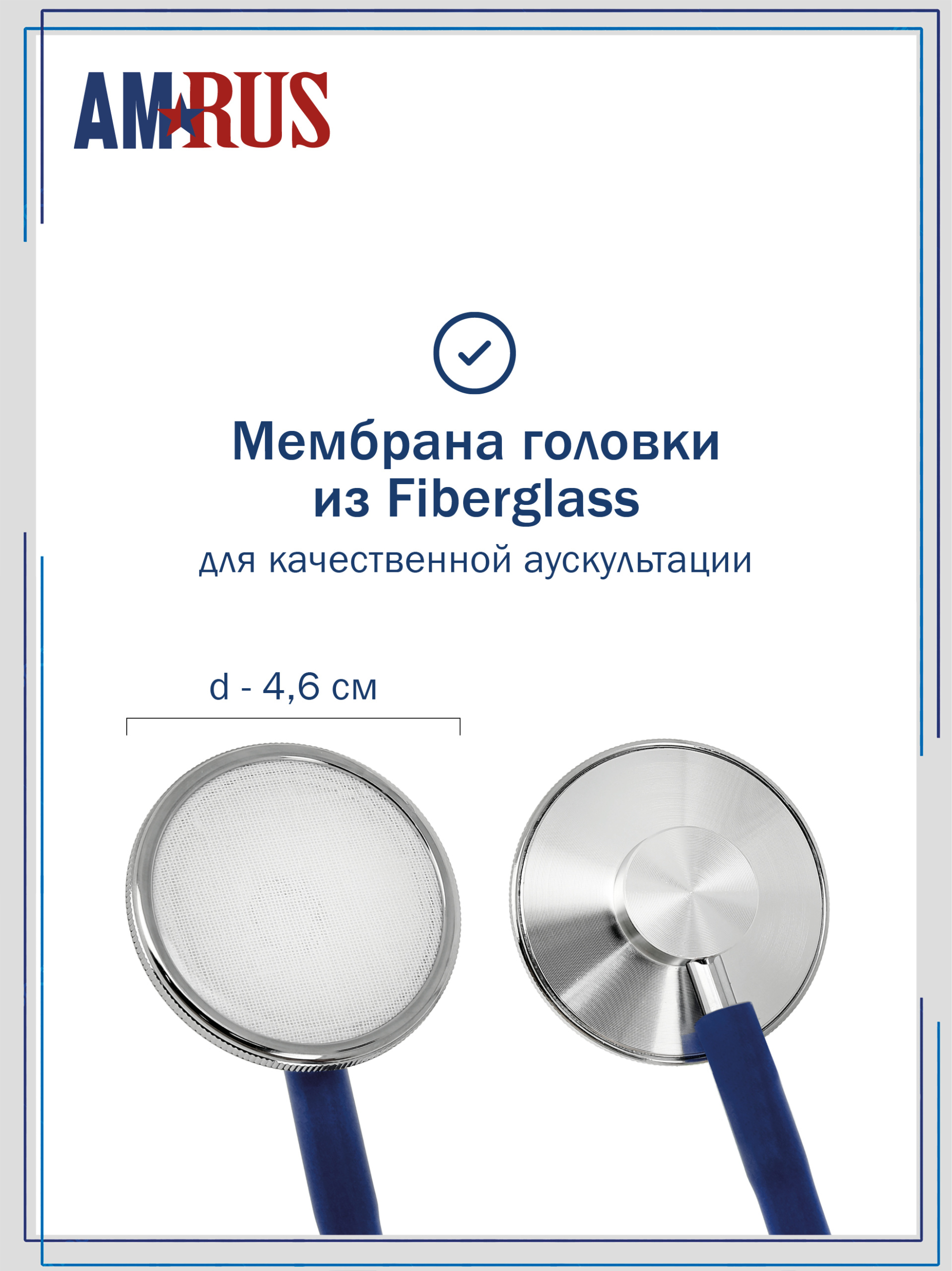Стетоскоп предназначен для аускультации тонов сердца при измерении артериального давления и первичном осмотре пациента. Облегченная односторонняя плоская головка имеет чувствительную мембрану диаметром 44 мм. Одноканальная трубка из литого ПВХ обеспечивает звукоизоляцию от внешних шумов. Виниловые ушные оливы конической формы белого цвета.