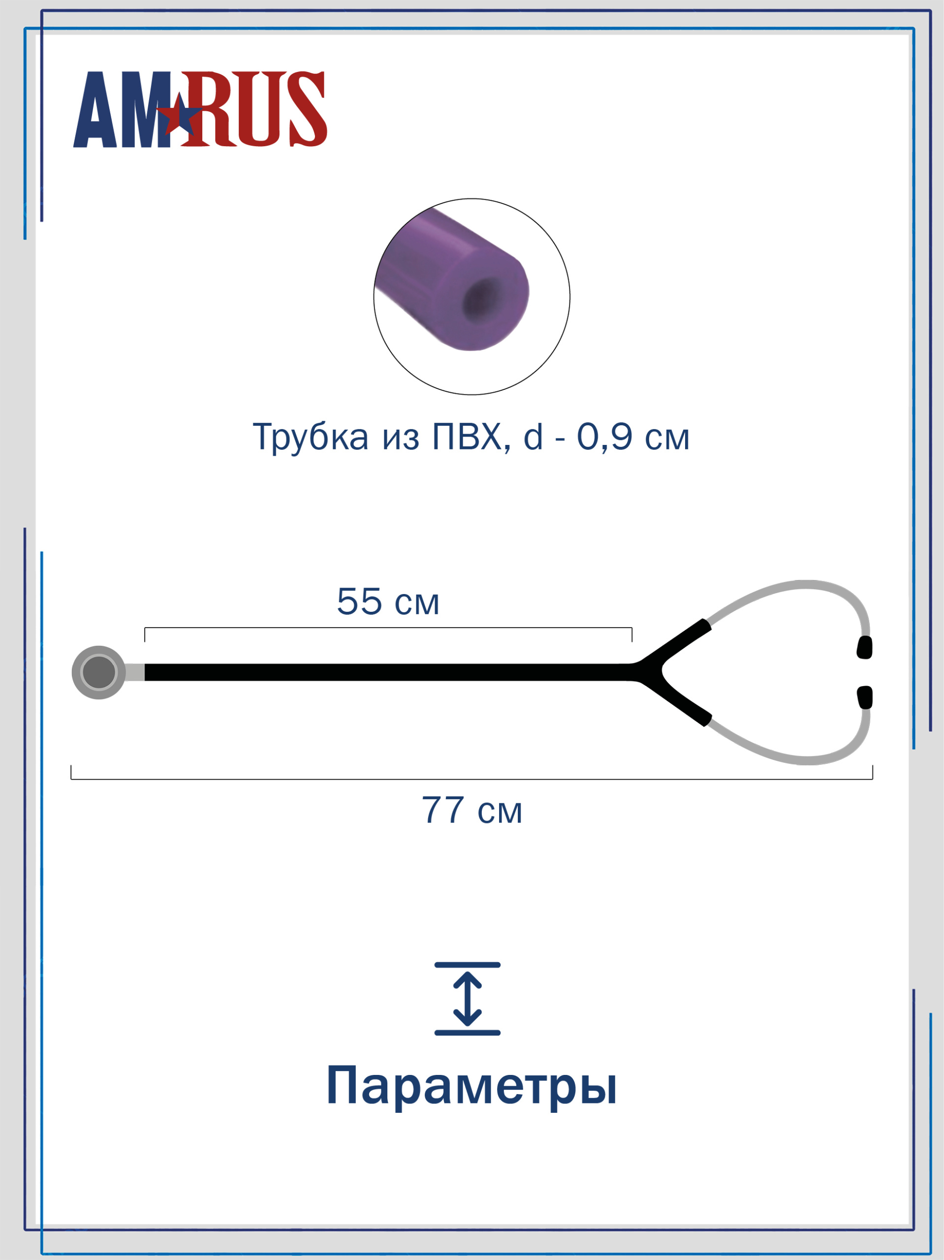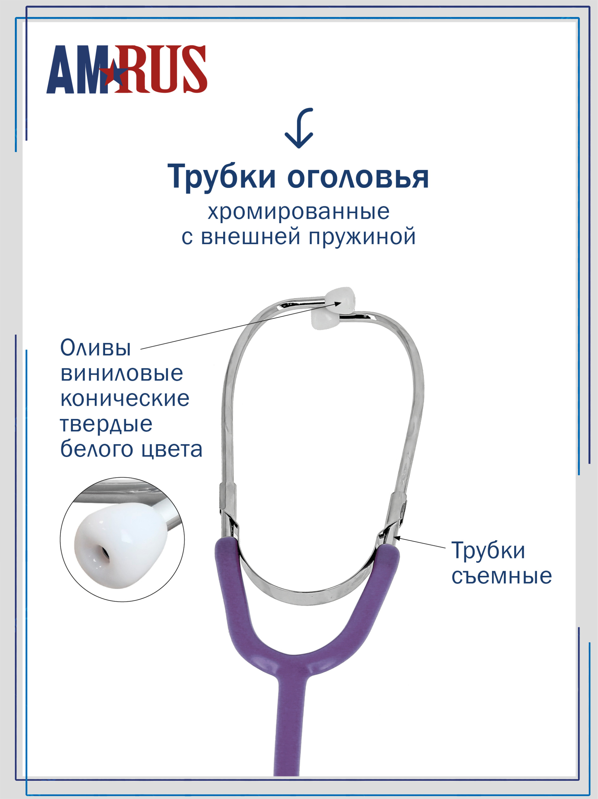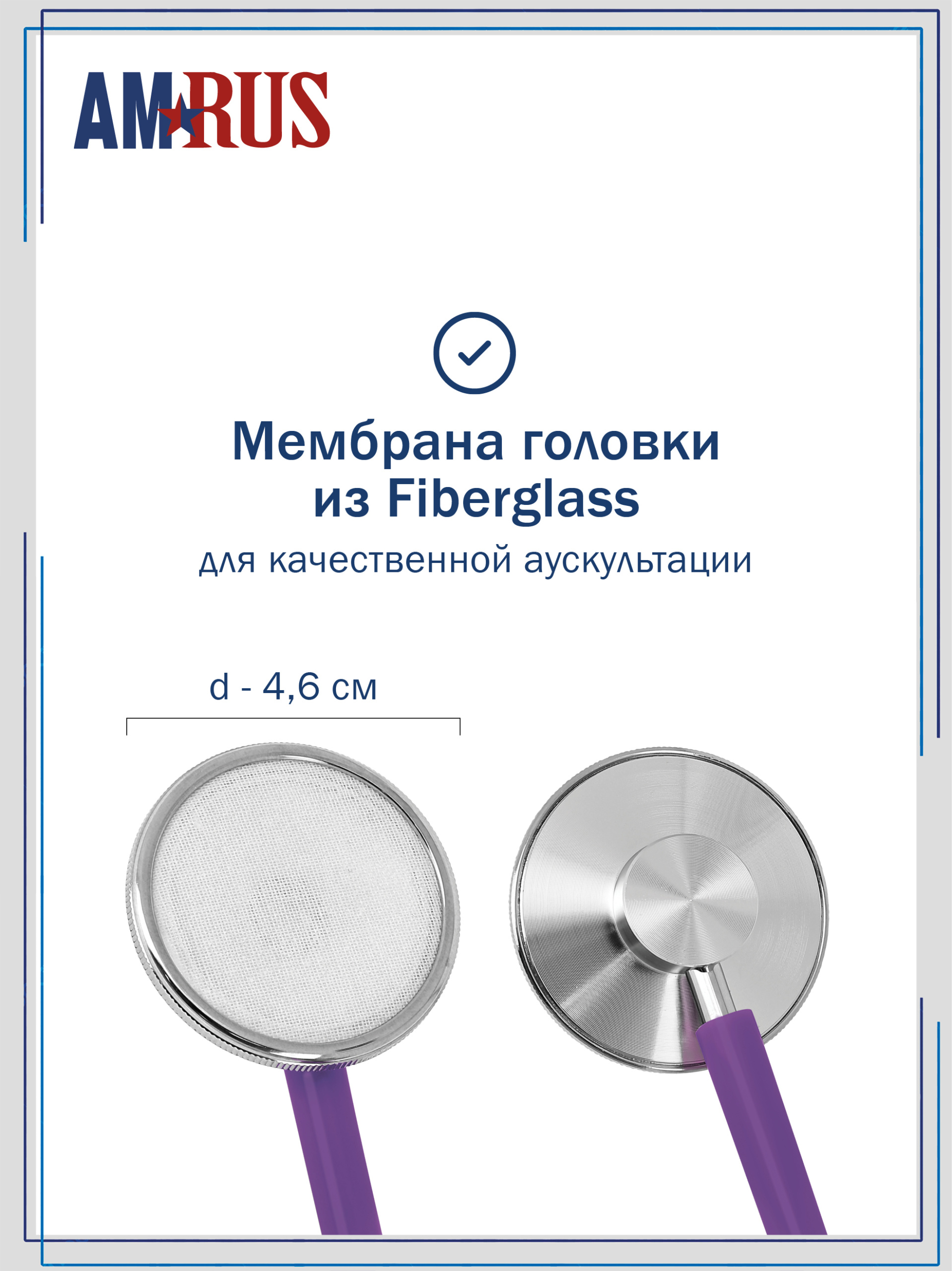 Стетоскоп предназначен для аускультации тонов сердца при измерении артериального давления и первичном осмотре пациента. Облегченная односторонняя плоская головка имеет чувствительную мембрану диаметром 44 мм. Одноканальная трубка из литого ПВХ обеспечивает звукоизоляцию от внешних шумов. Виниловые ушные оливы конической формы белого цвета.