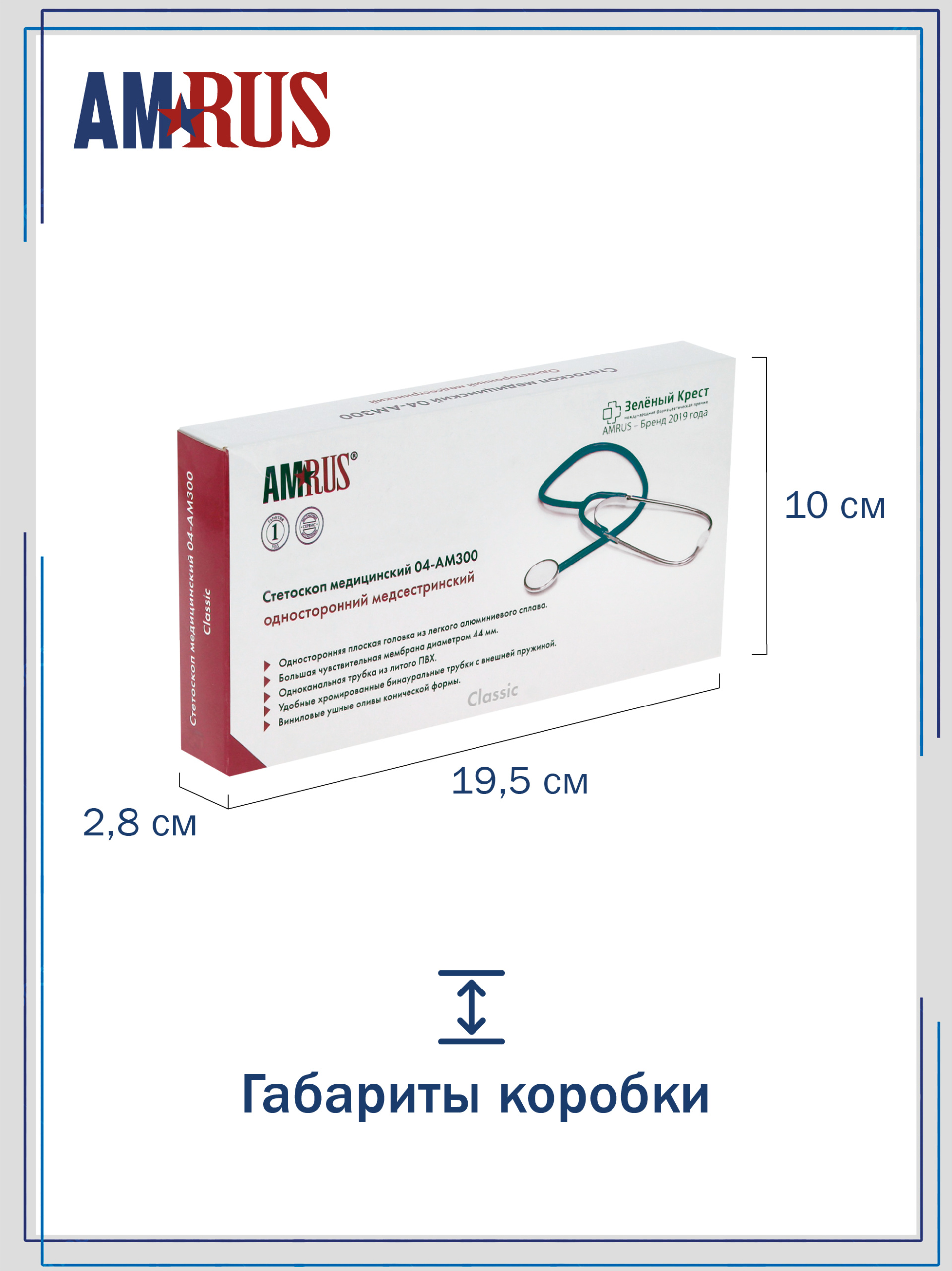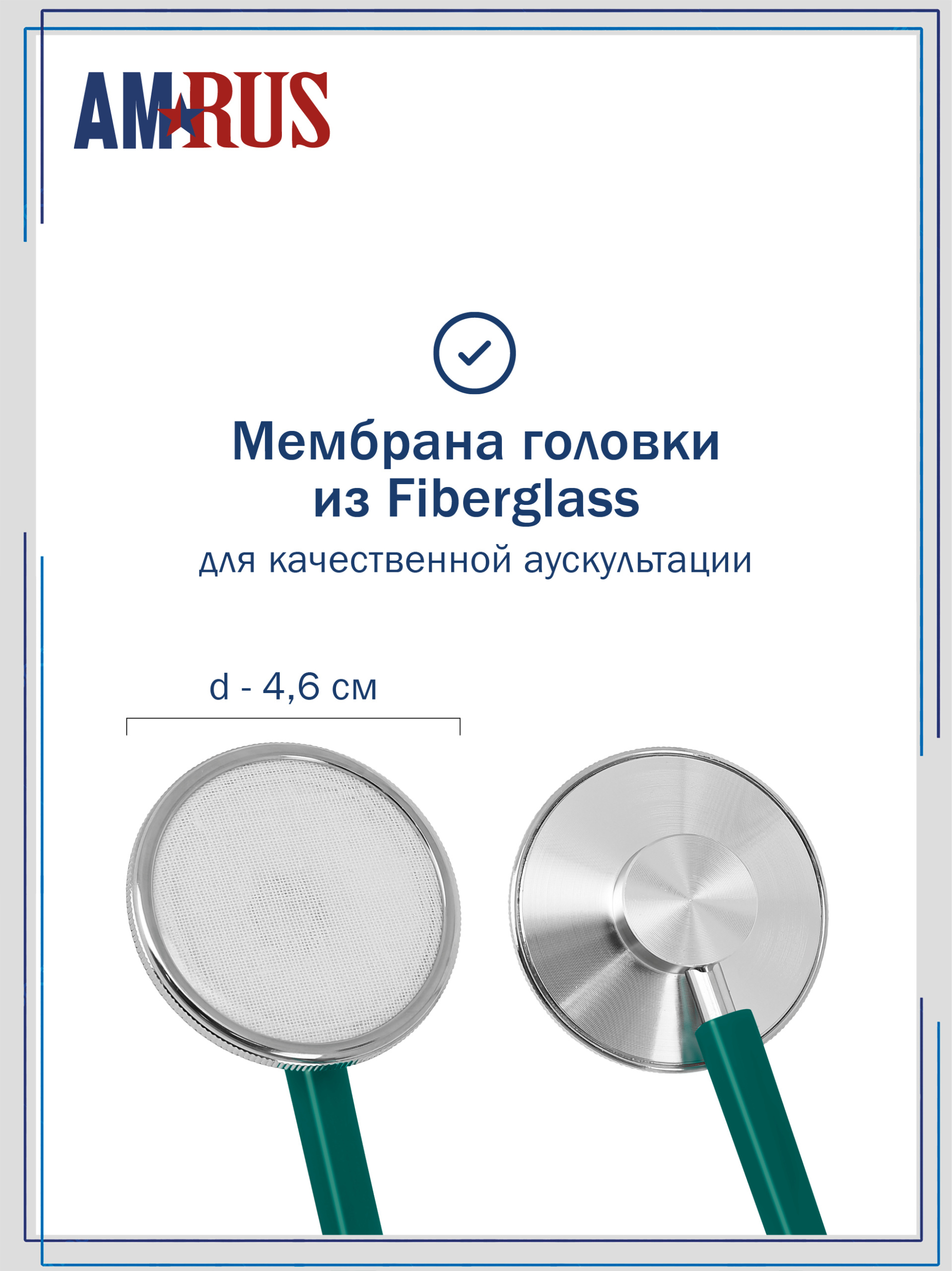 Стетоскоп предназначен для аускультации тонов сердца при измерении артериального давления и первичном осмотре пациента. Облегченная односторонняя плоская головка имеет чувствительную мембрану диаметром 44 мм. Одноканальная трубка из литого ПВХ обеспечивает звукоизоляцию от внешних шумов. Виниловые ушные оливы конической формы белого цвета.