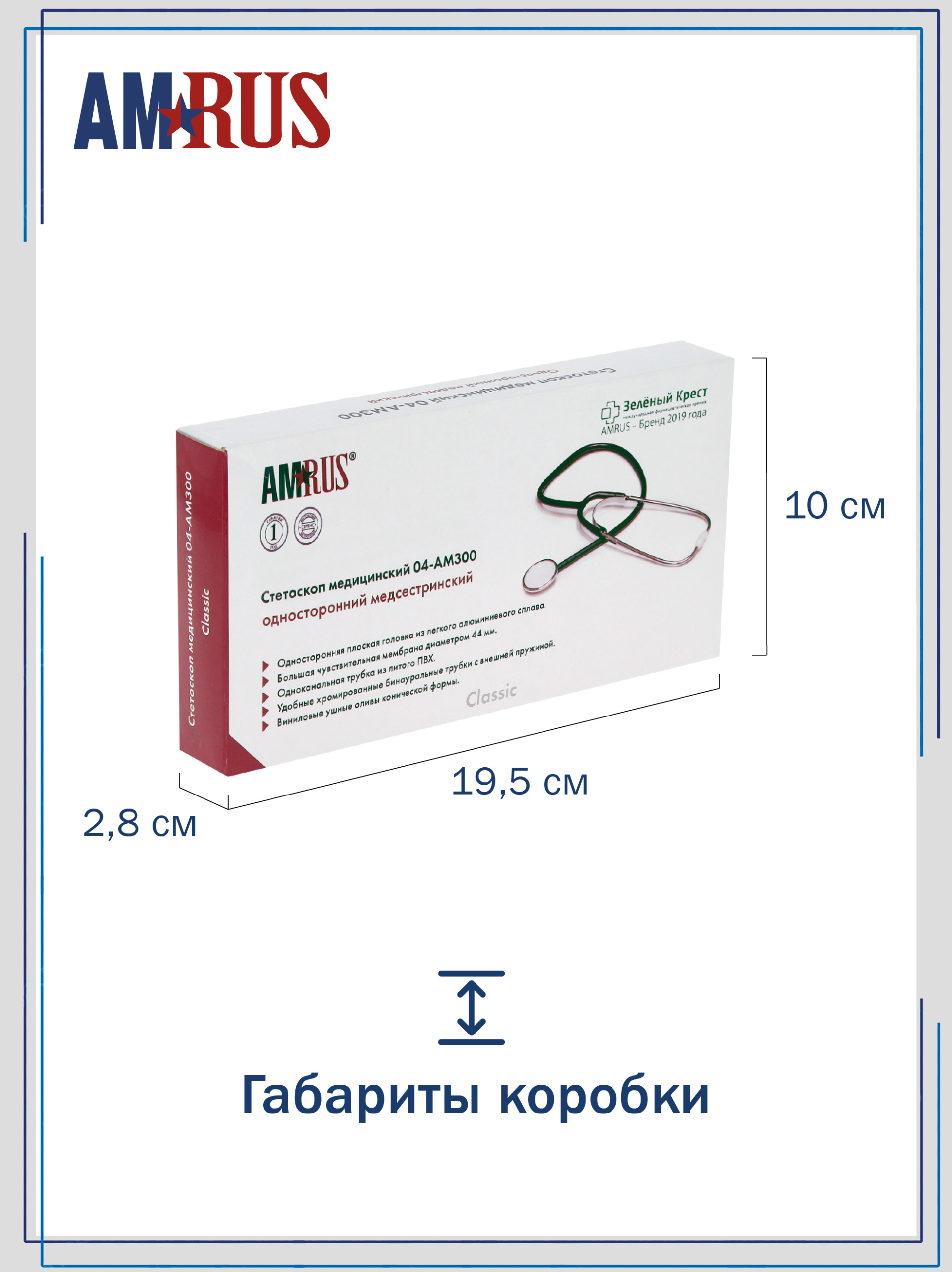 Стетоскоп предназначен для аускультации тонов сердца при измерении артериального давления и первичном осмотре пациента. Облегченная односторонняя плоская головка имеет чувствительную мембрану диаметром 44 мм. Одноканальная трубка из литого ПВХ обеспечивает звукоизоляцию от внешних шумов. Виниловые ушные оливы конической формы белого цвета.