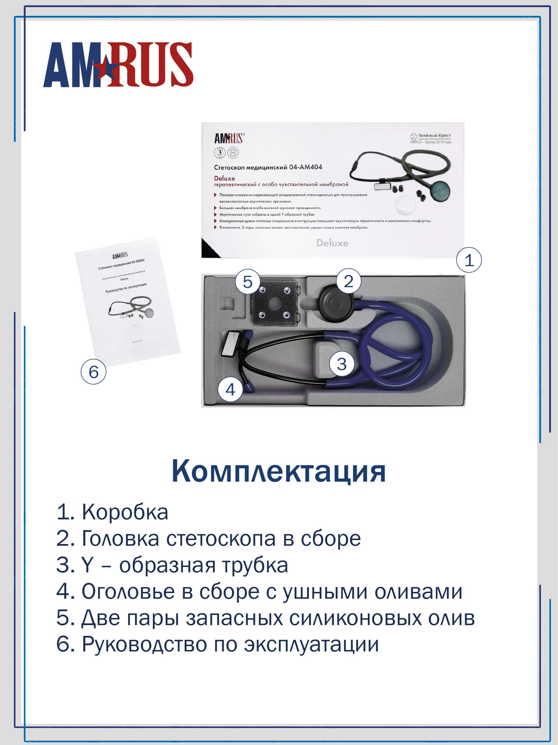 04АМ404_синий Deluxe AMRUS Стетоскоп медицинский терапевтический с особо чувствительной мембраной