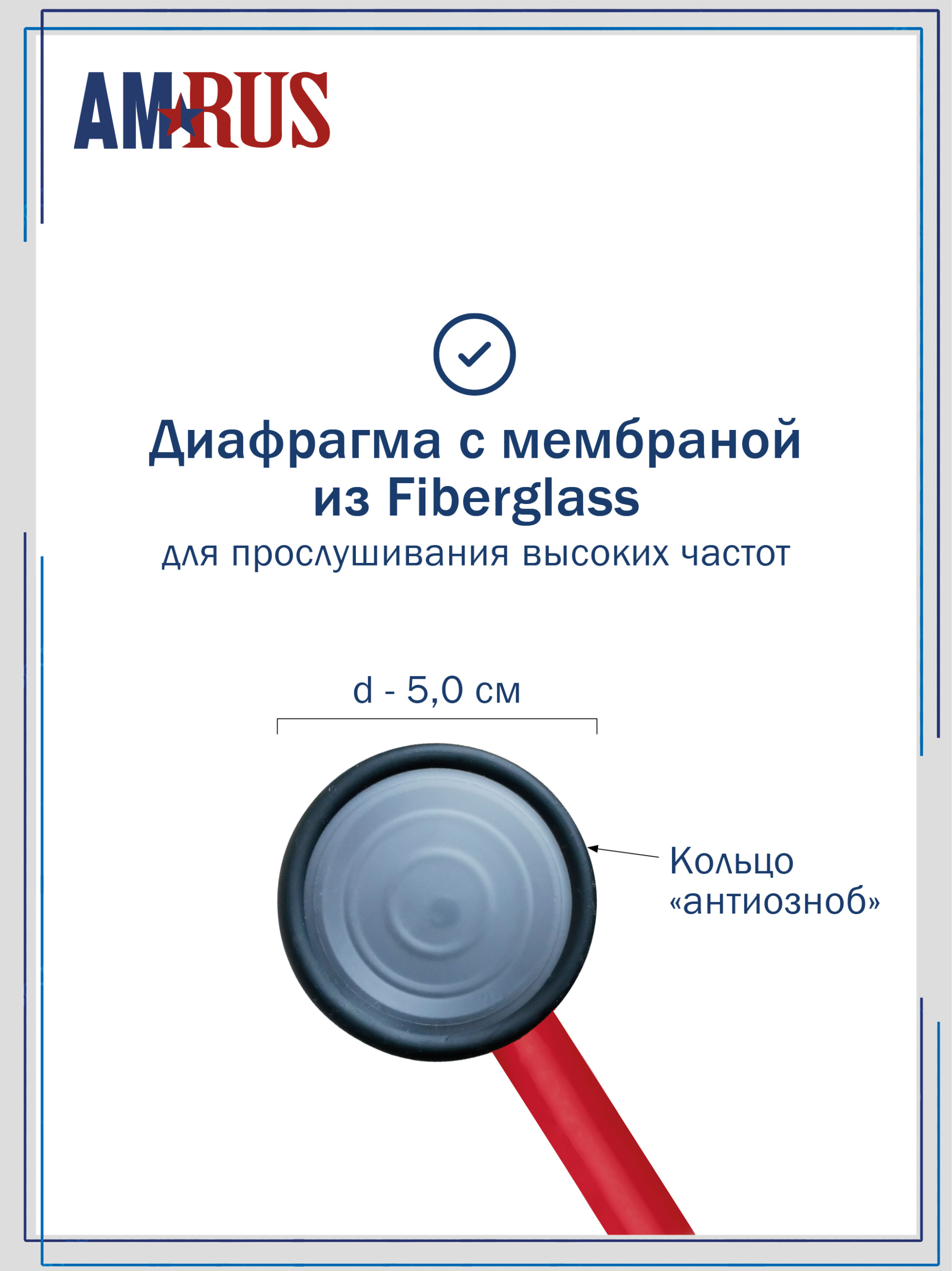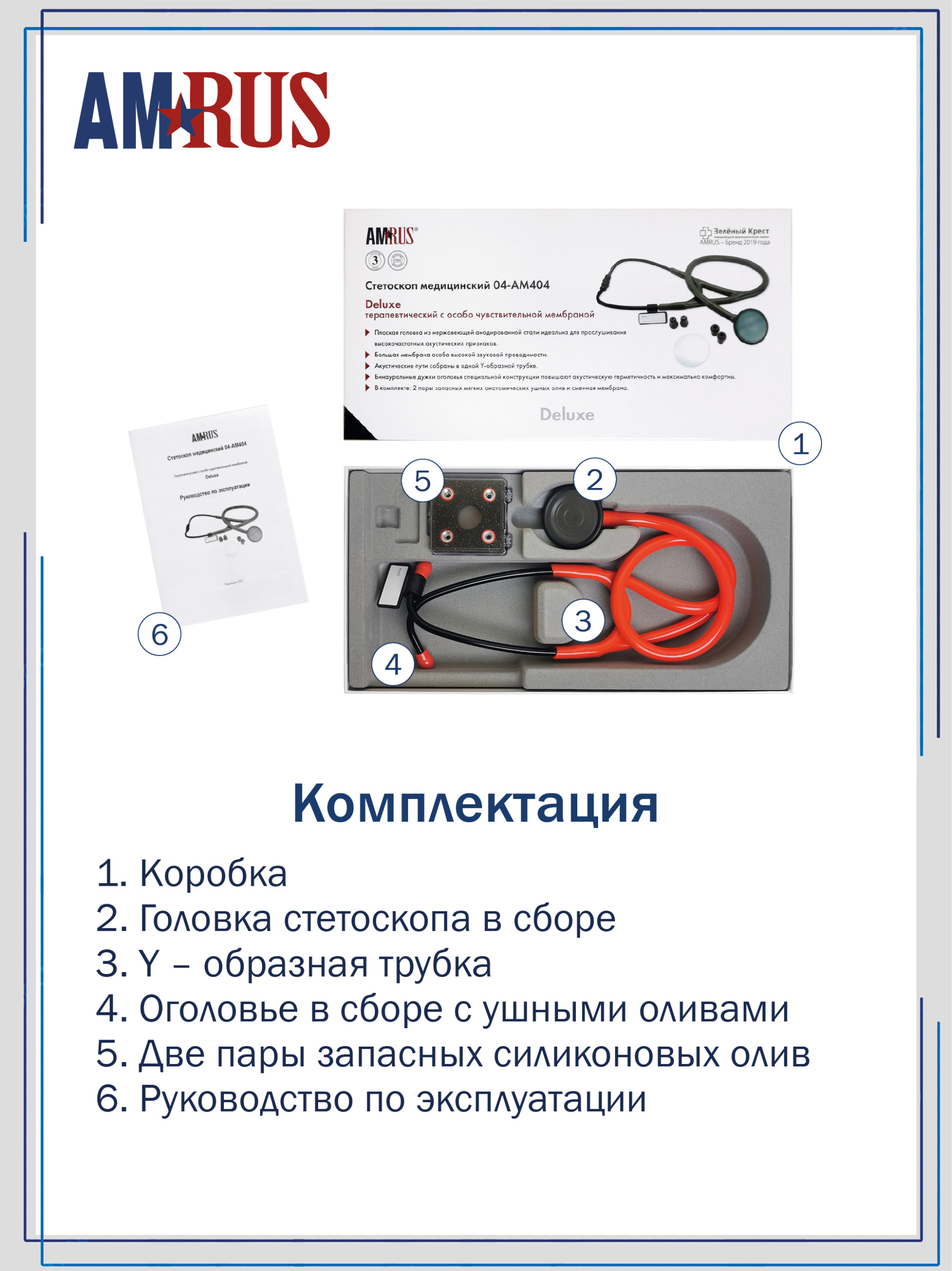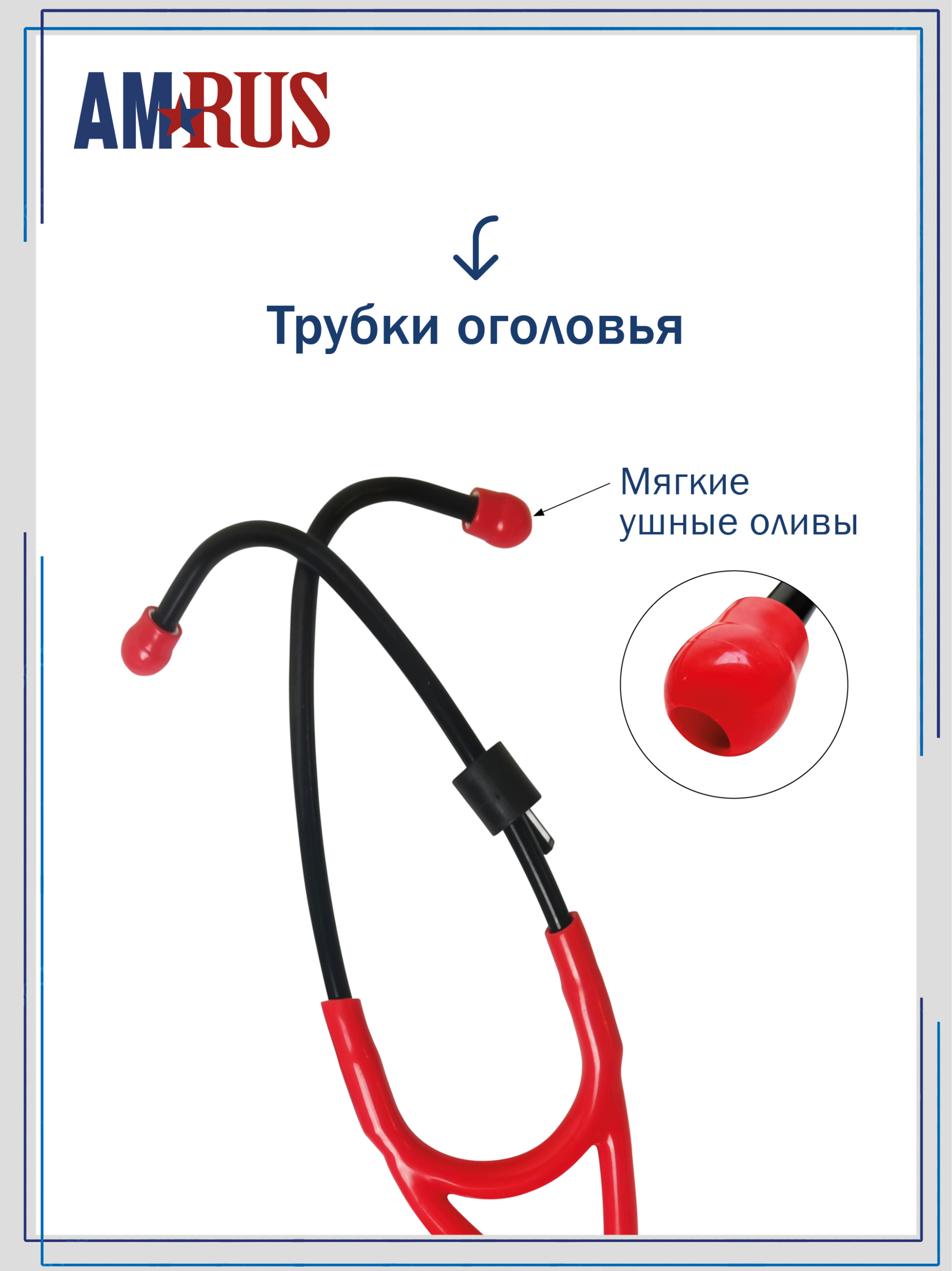 04АМ404_красный Deluxe AMRUS Стетоскоп медицинский терапевтический с особо чувствительной мембраной
