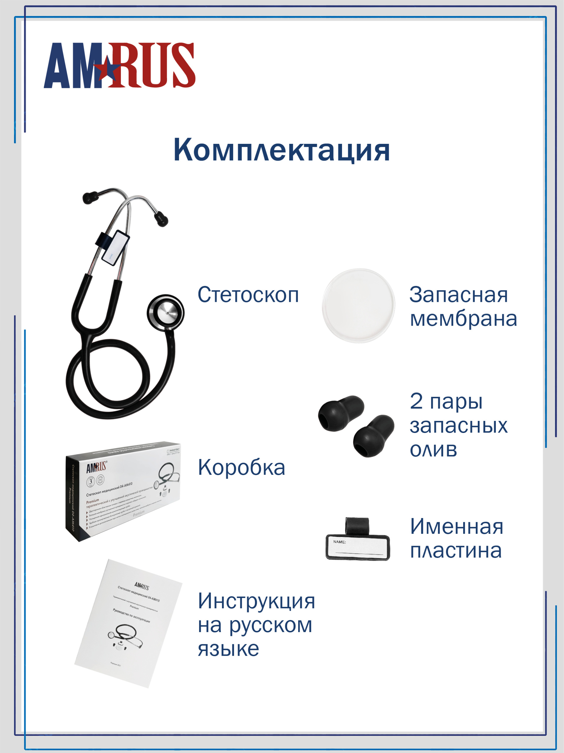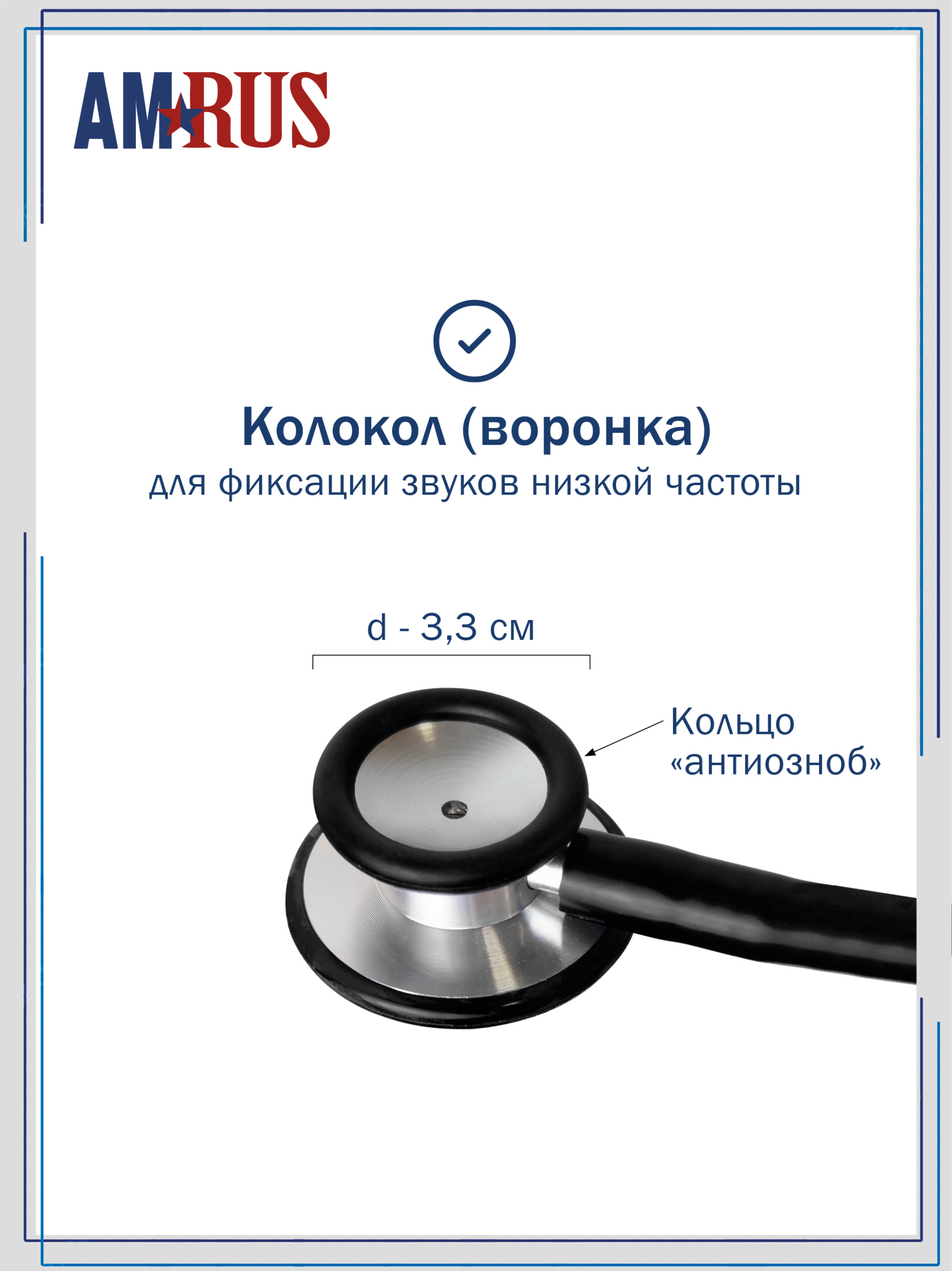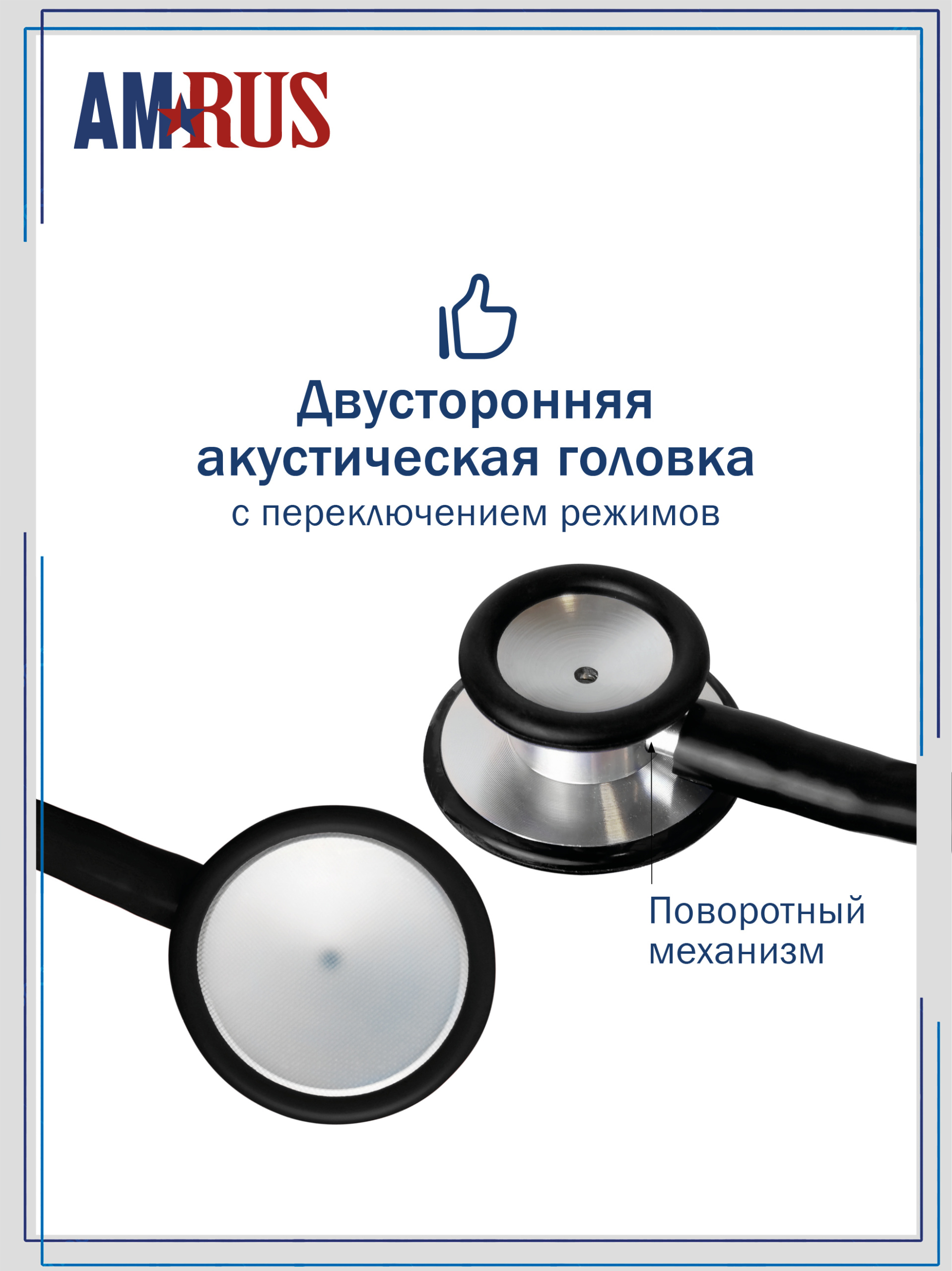 04АМ-410_BK AMRUS Стетоскоп медицинский терапевтический двухсторонний с улучшенной акустической проводимостью
