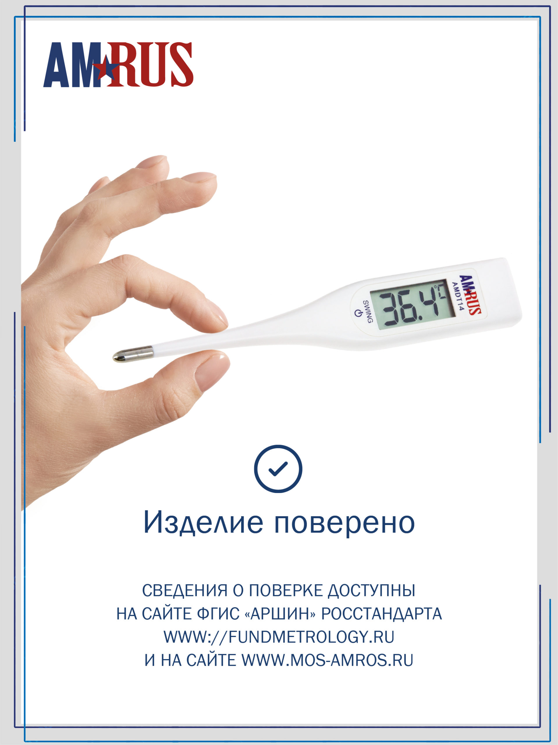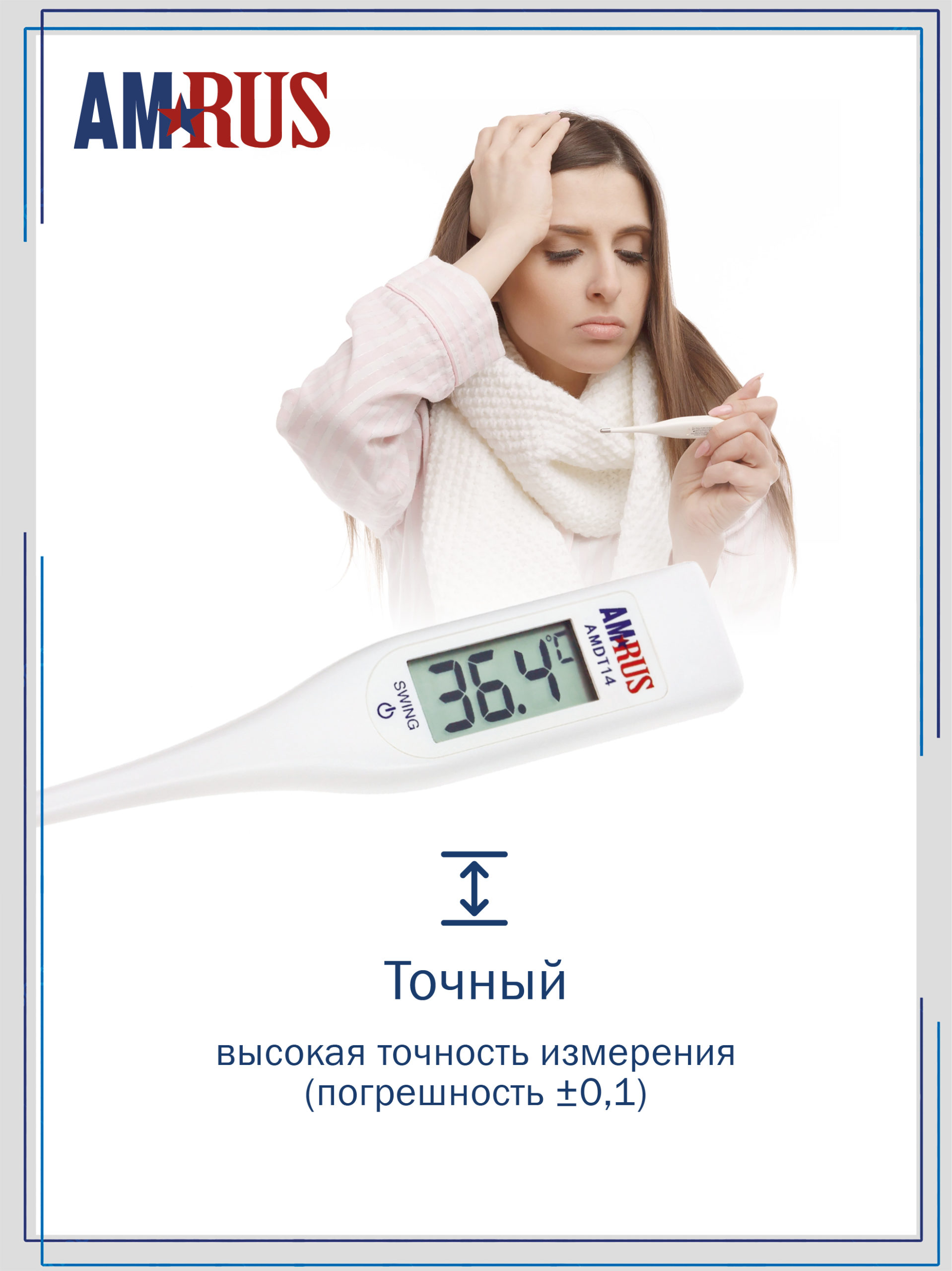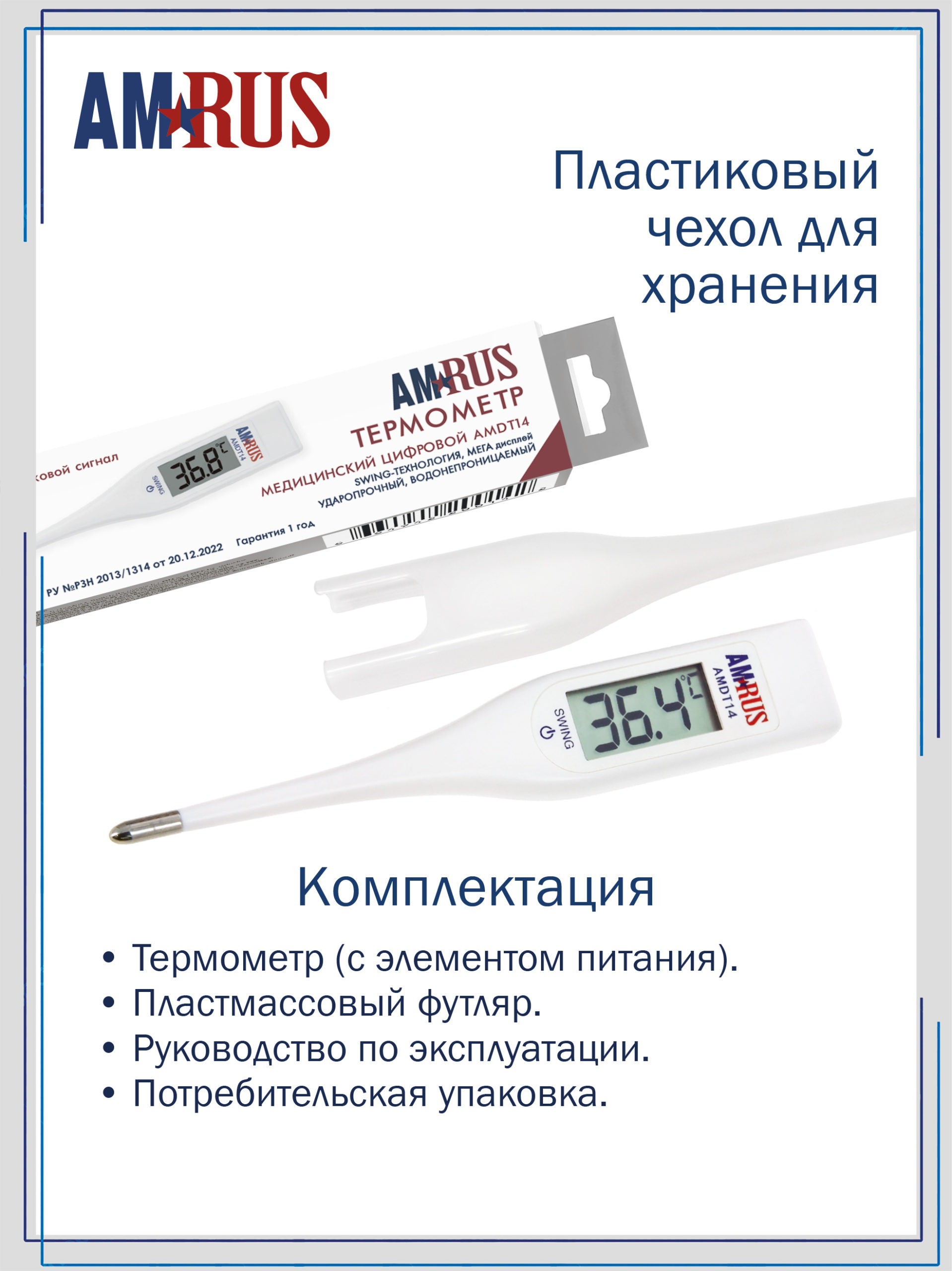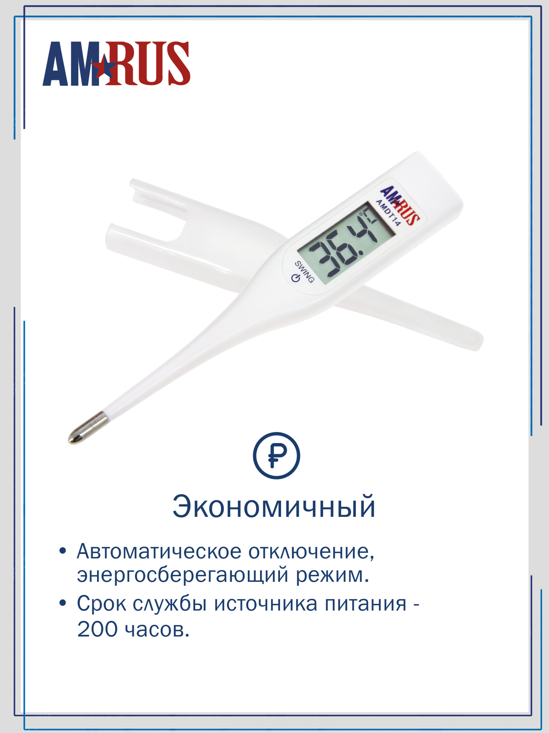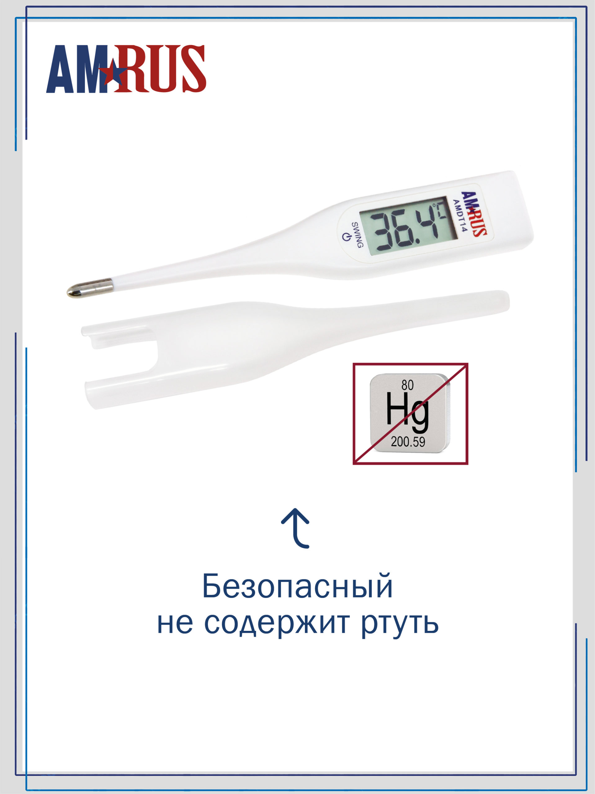 Термометр медицинский цифровой AMDT14 оснащен большим дисплеем с крупными легко читаемыми символами и стеклом специальной формы для удобства считывания показаний.