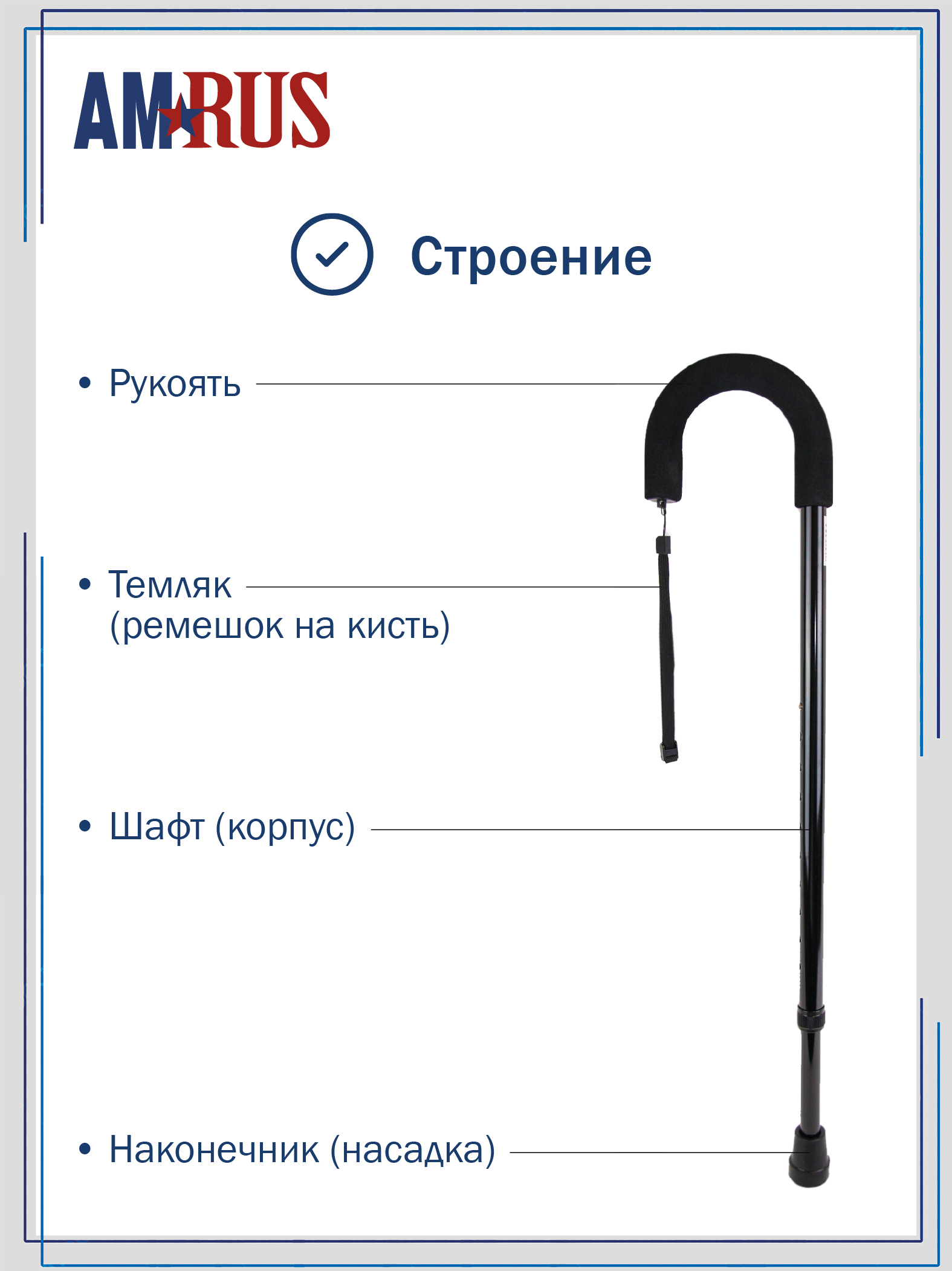добавляет устойчивости при передвижении. Трость снабжена темляком (ремешок на кисть), который имеет