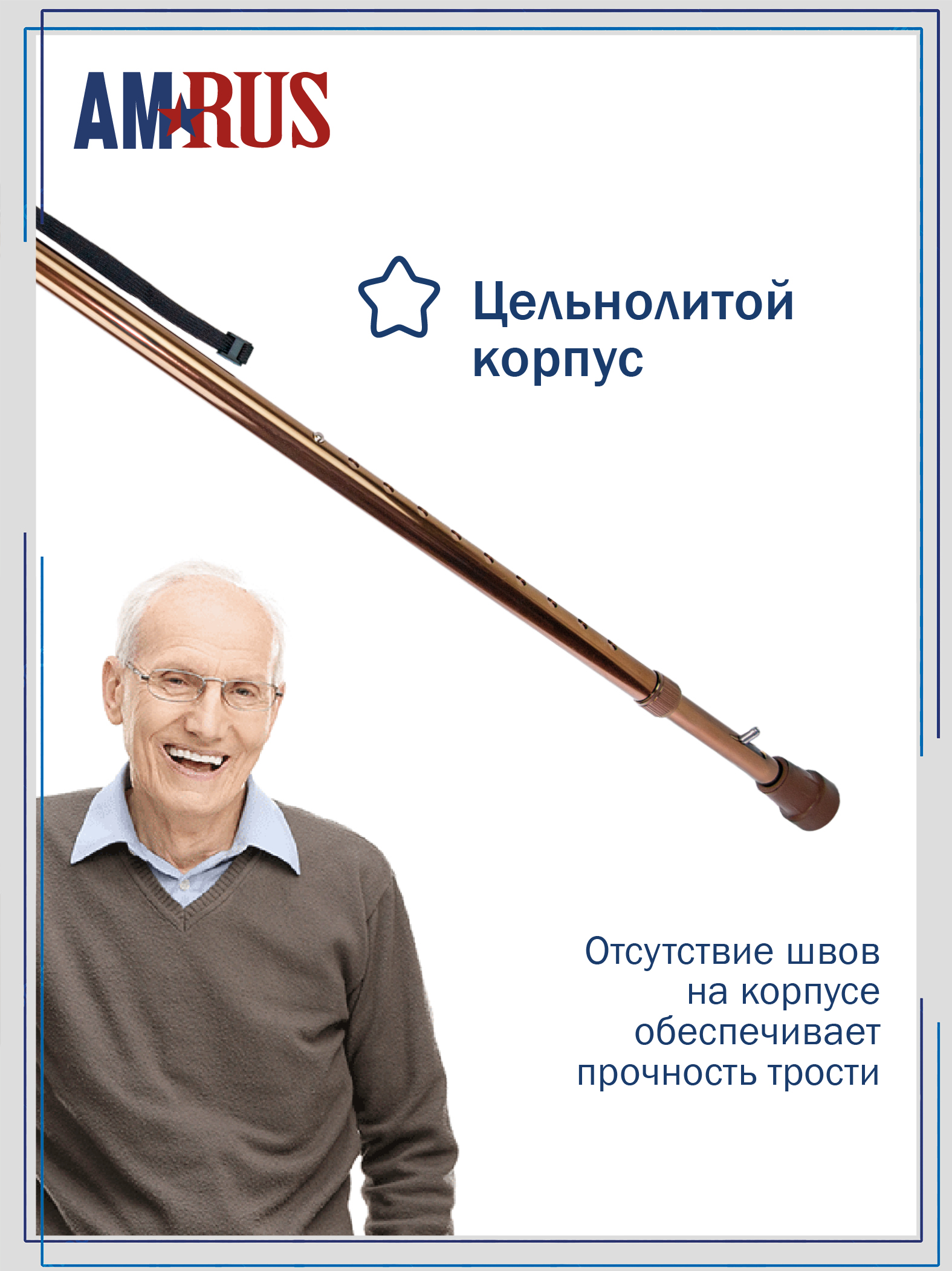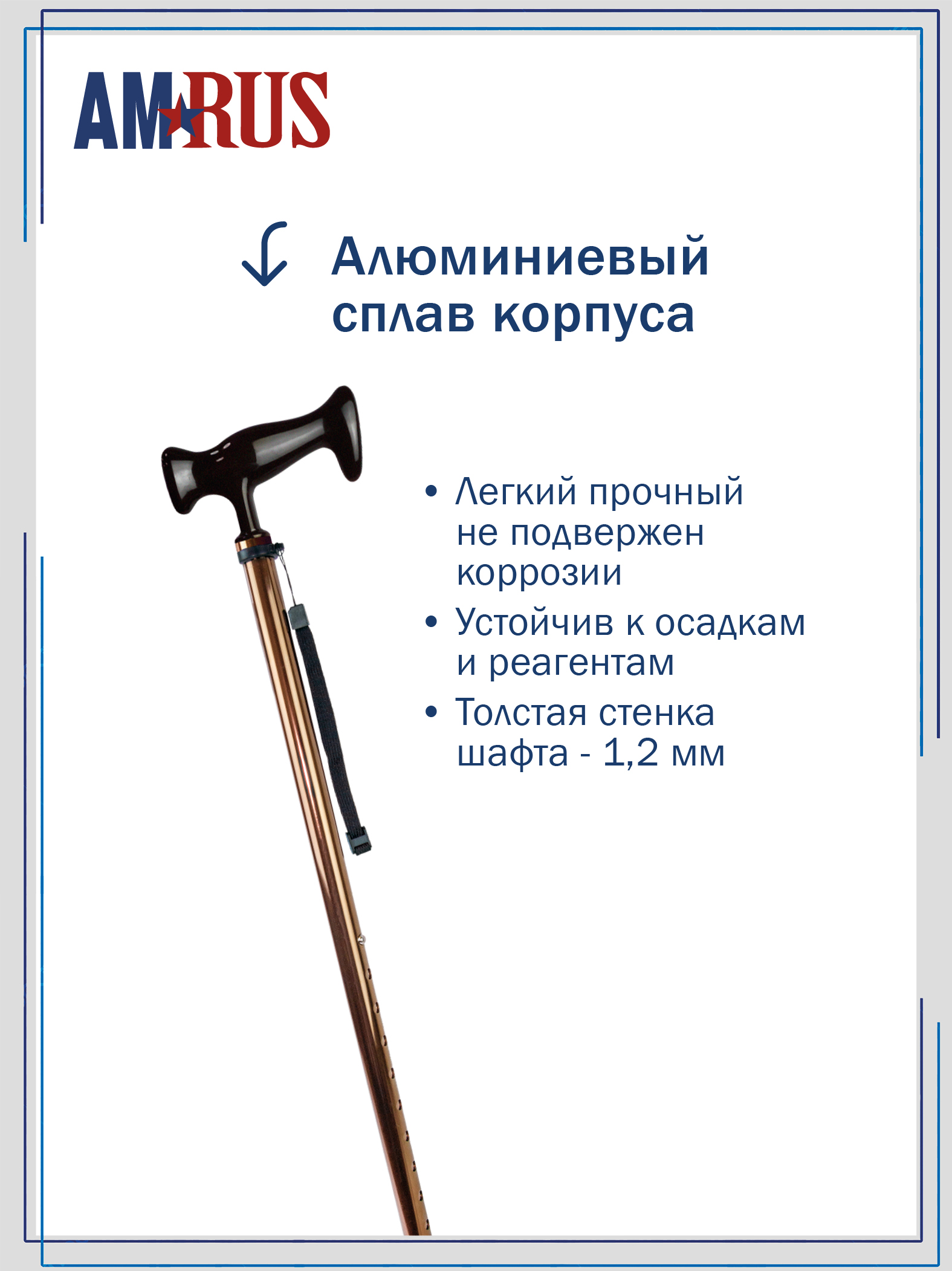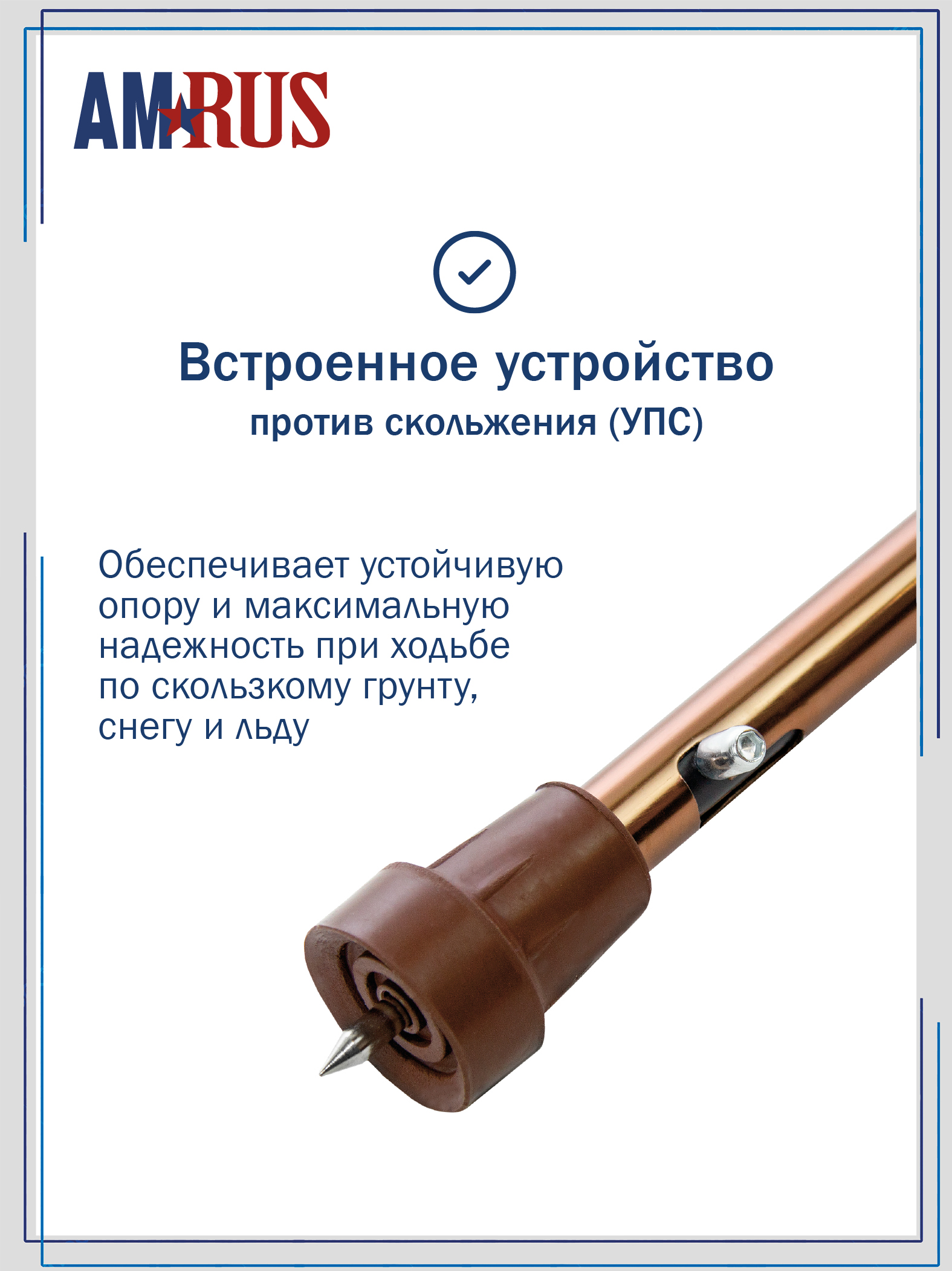 Трость телескопическая с ортопедической рукояткой и устройством против скольжения AMCT23 с УПС_BR