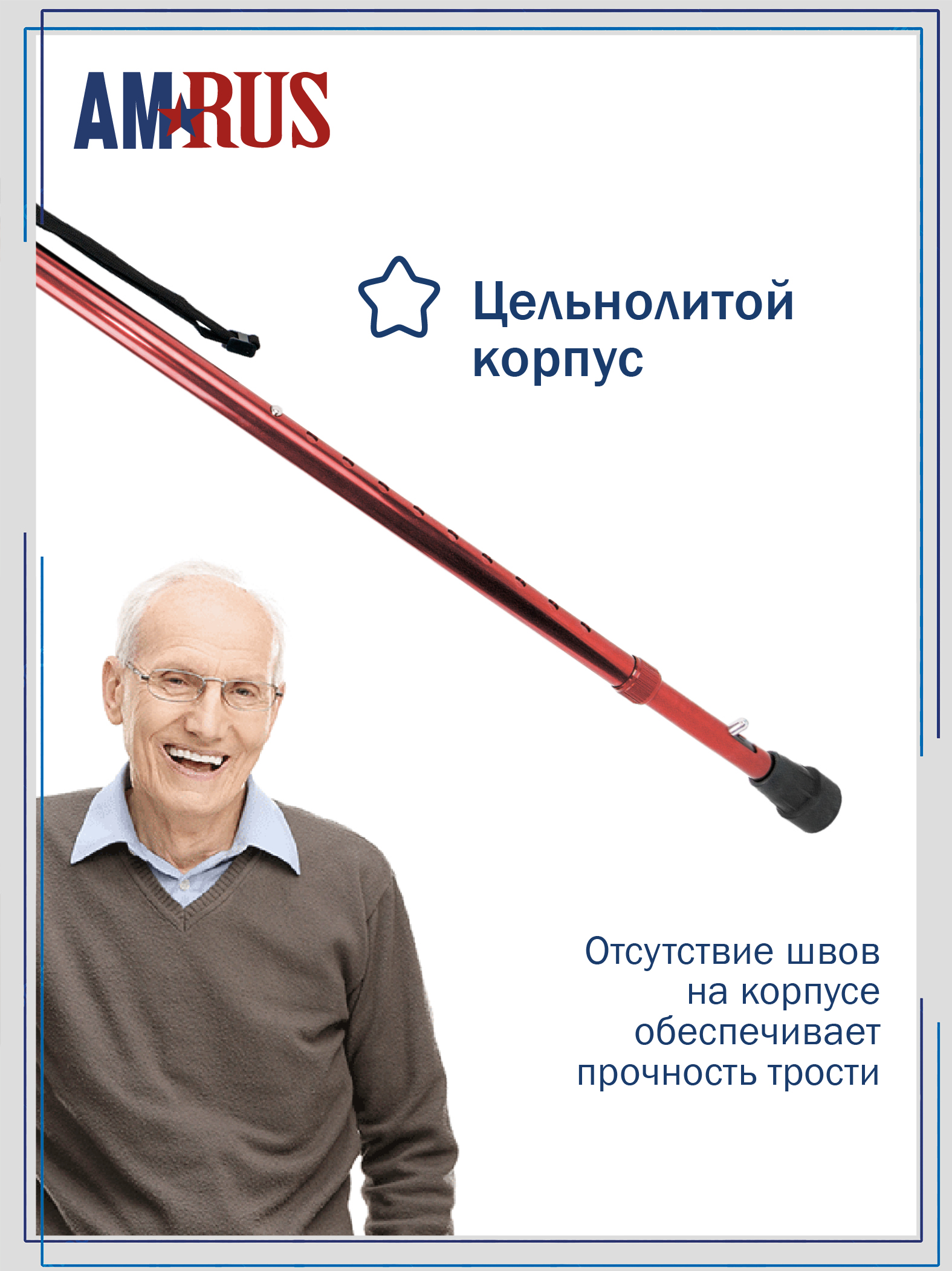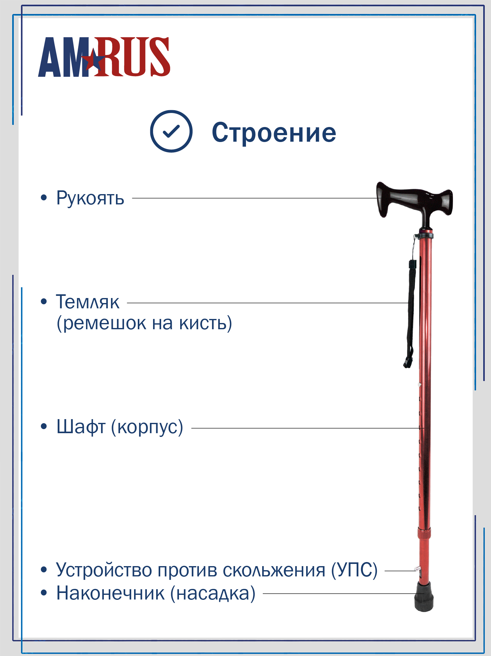 Трость телескопическая с ортопедической рукояткой и устройством против скольжения AMCT23 c УПС _RD