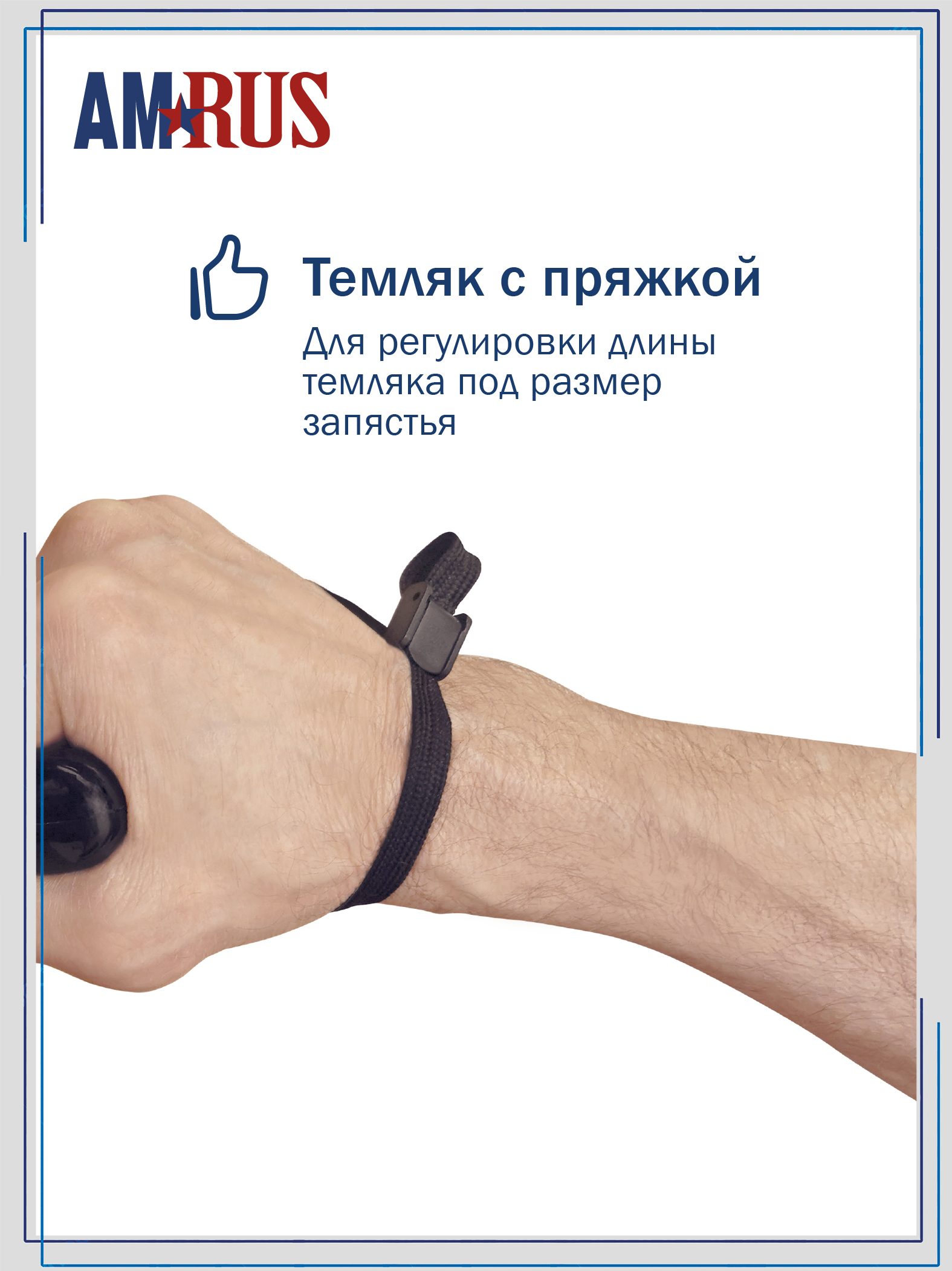имеет пряжку для регулировки длины под размер запястья. Утолщение в центральной части рукояти облегчает
