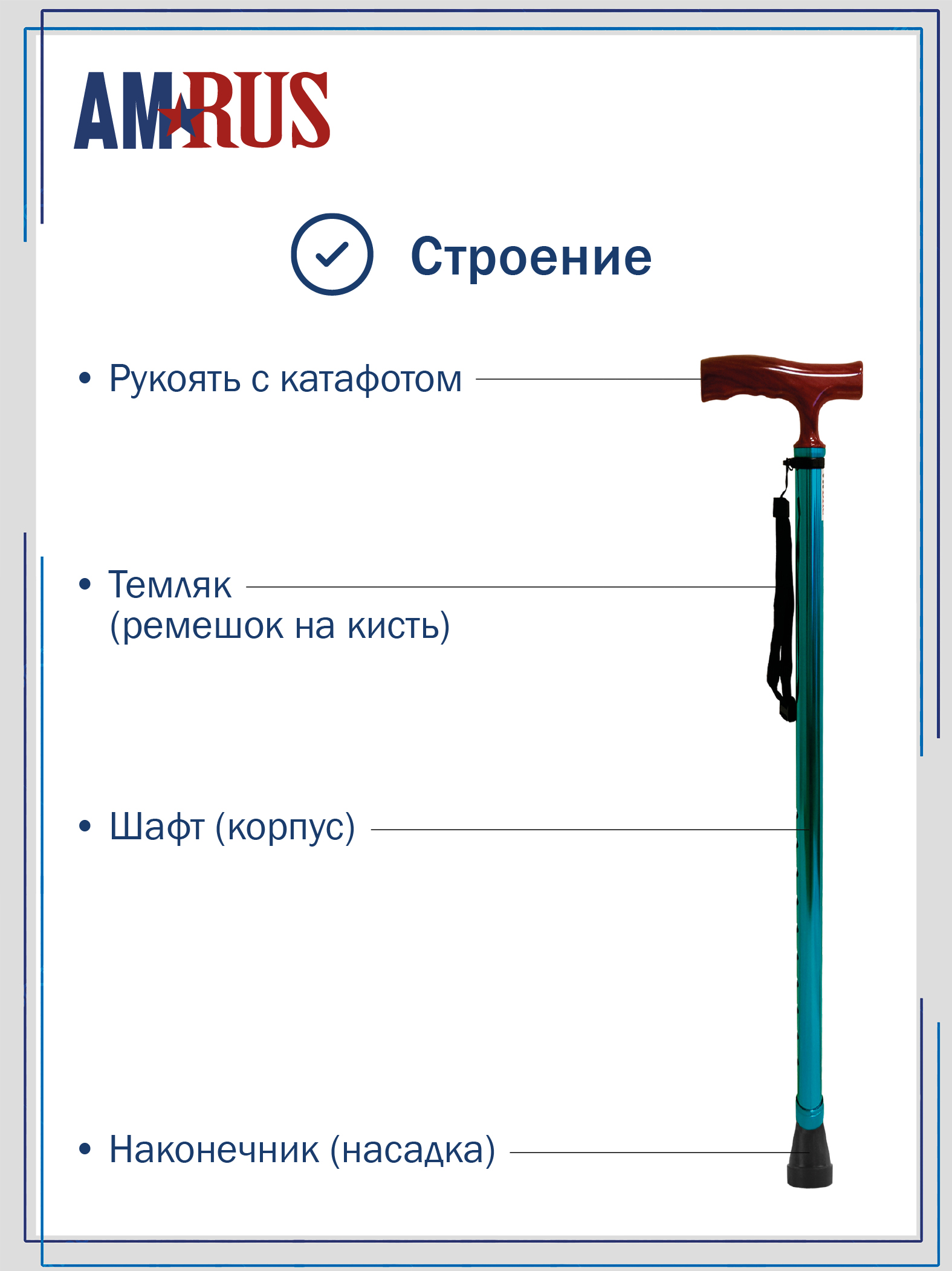 Трость предназначена для облегчения самостоятельного передвижения, обеспечивает дополнительную